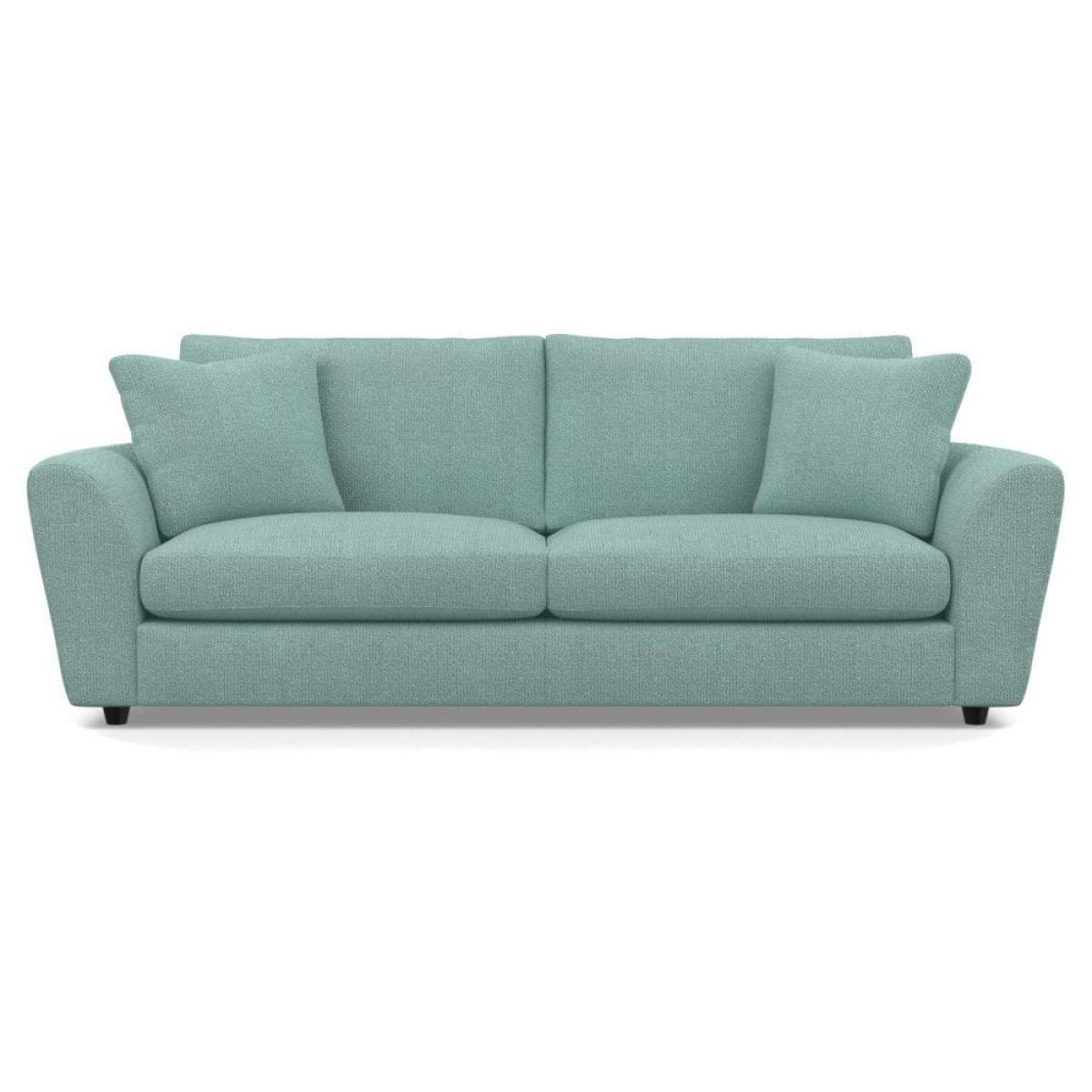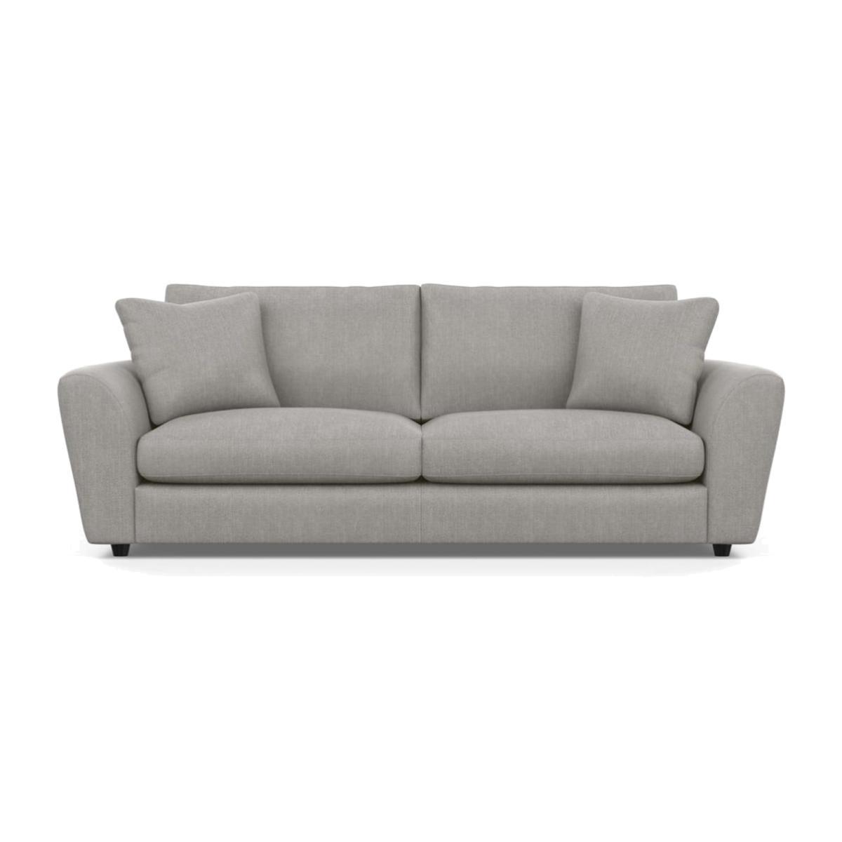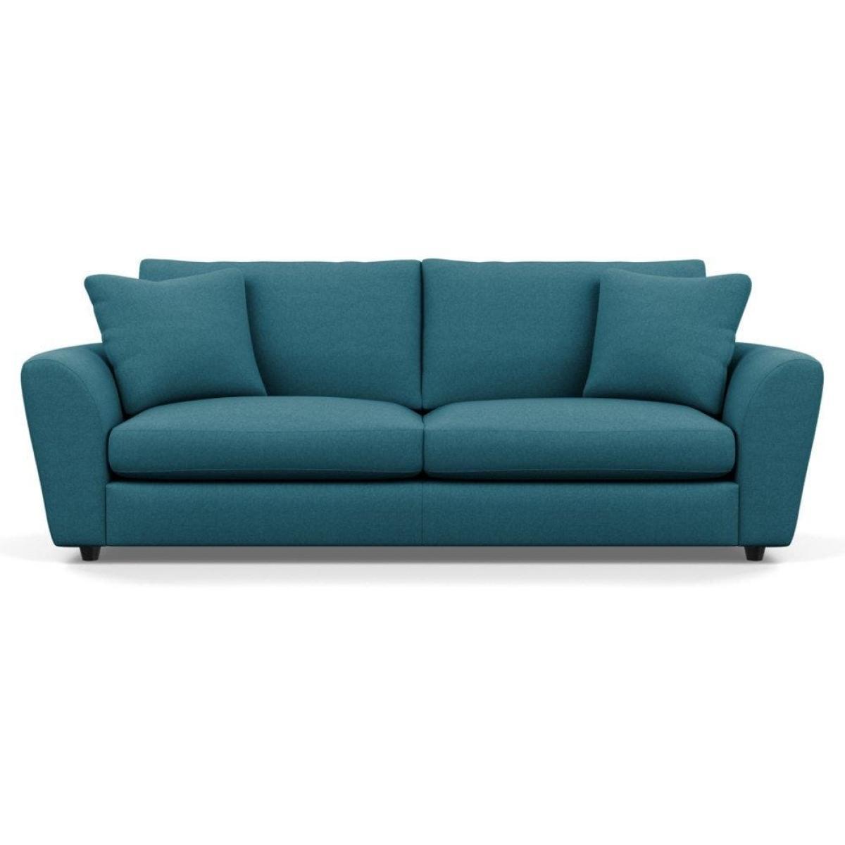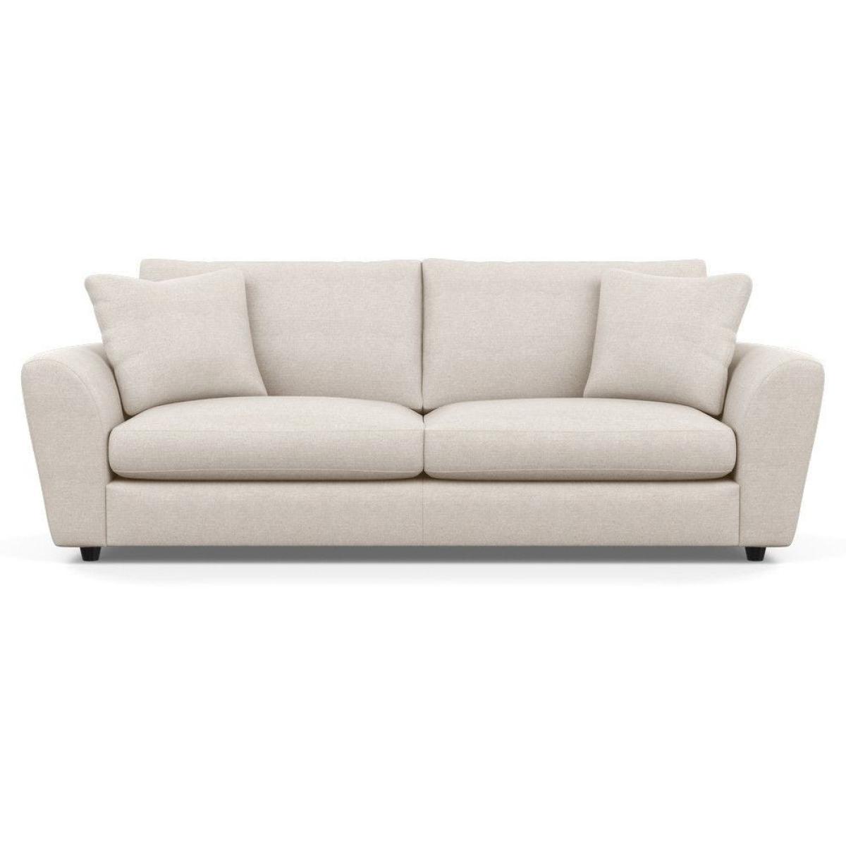 This sofa works really well in contemporary or minimalist interiors where clean lines and neutral tones are key. I love its versatile velvet fabric, which adds a touch of luxe without feeling precious, making it suitable for both family living rooms and more formal spaces. The black feet give it a modern edge, helping it sit comfortably within various colour schemes, from soft pastels to darker hues. To style around it, consider adding textured cushions or a throw in richer colours or subtle patterns for visual interest. Its substantial size makes it perfect for creating a cosy, inviting seating area, while its discreet footprint ensures it won’t overwhelm a more compact room.