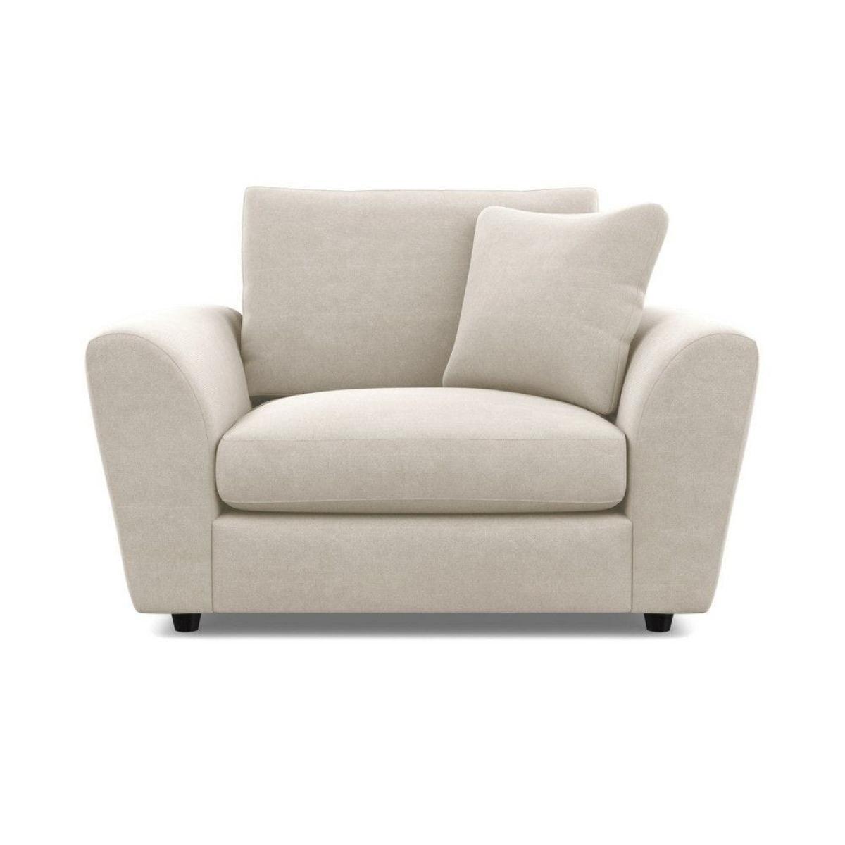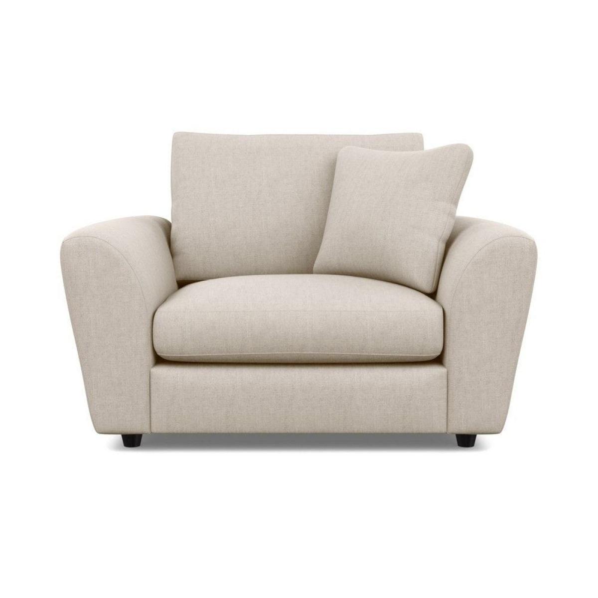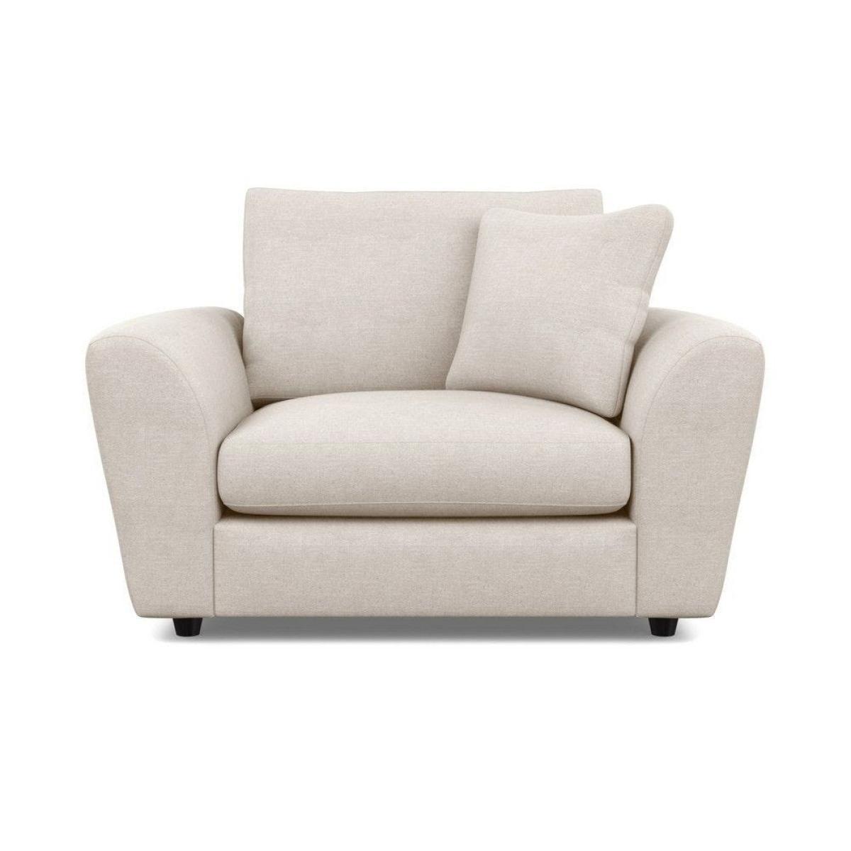 I love this little loveseat for its versatile, understated style and practical size, making it ideal for smaller living rooms or cosy corners. The pale grey textured fabric gives it a modern yet neutral look, allowing it to blend effortlessly into a variety of interiors-from Scandi minimalism to contemporary schemes. The black feet add a subtle contrast that grounds the piece visually and provide a sleek modern touch. To style it effectively, try pairing with layered cushions in soft textiles and a throw to add texture and comfort. It's also worth considering positioning it alongside both statement and understated pieces, as it works well in both patterned and plain surroundings, maintaining a relaxed but refined vibe.
