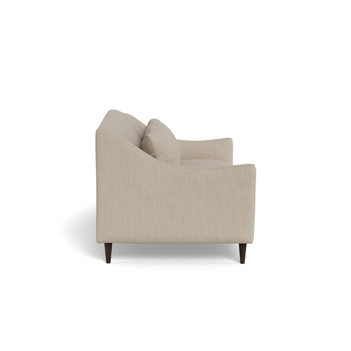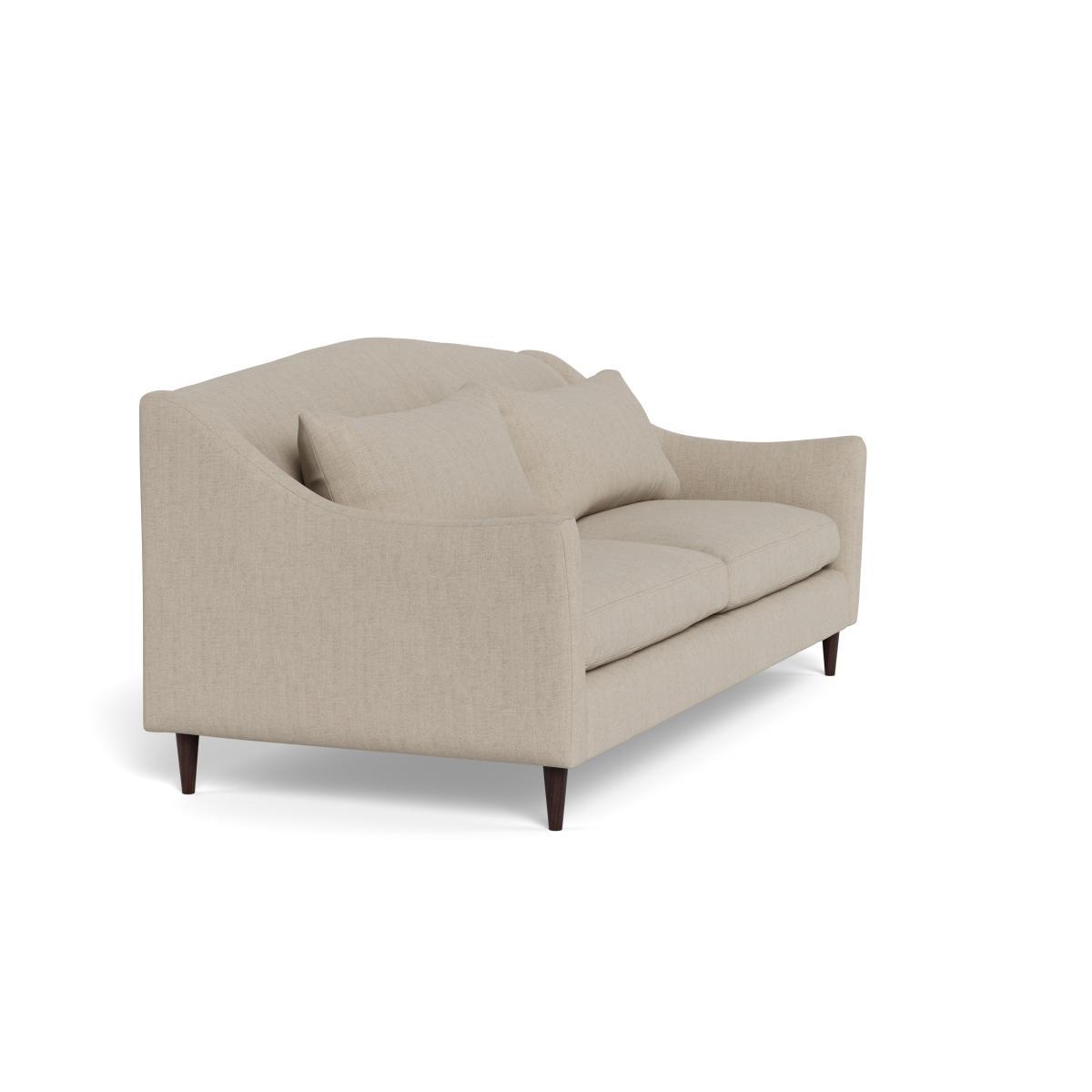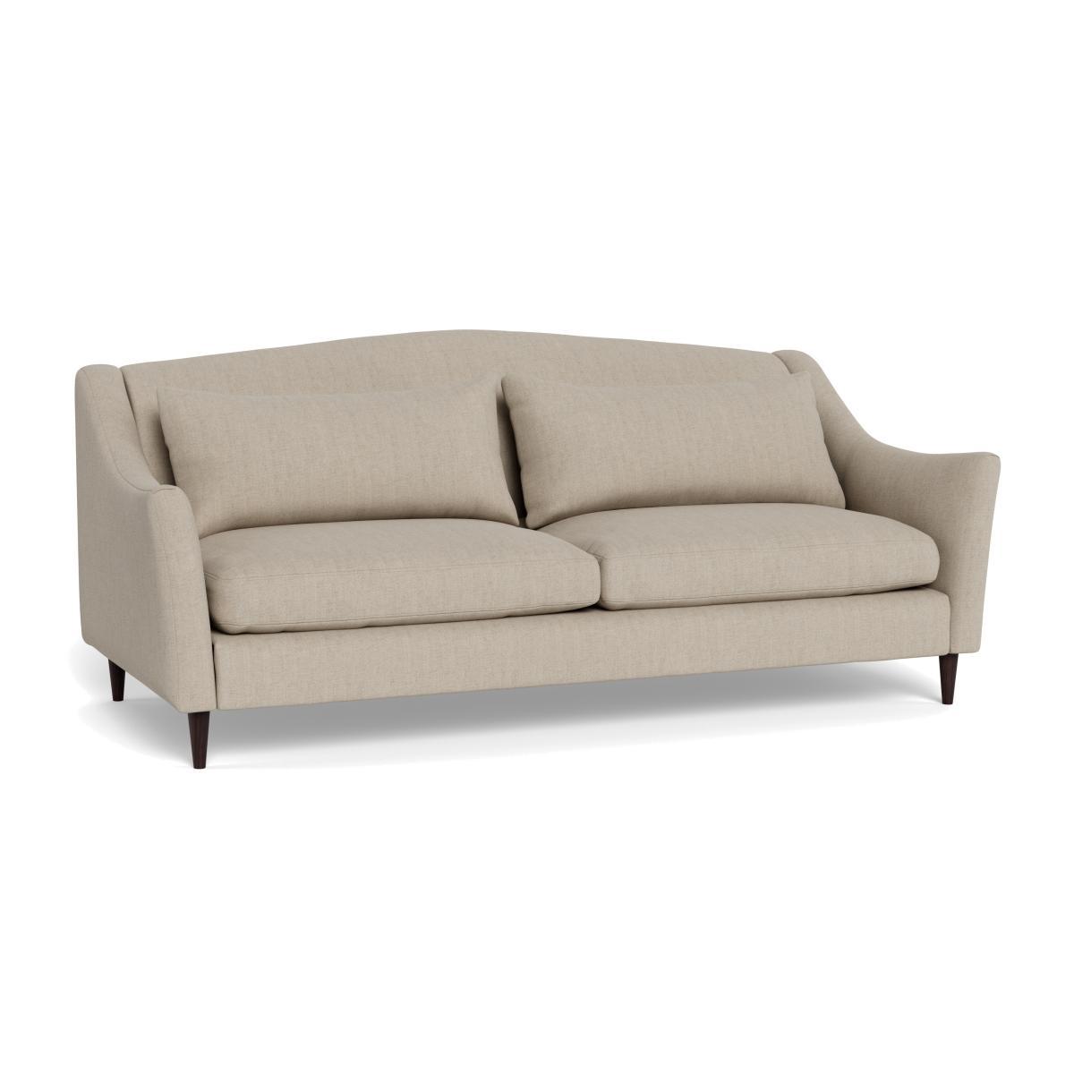 I love this sofa for its timeless yet contemporary appeal, making it versatile across a range of interior styles from classic to modern. The broad weave fabric in putty is not only aesthetically appealing but also practical, as it offers a muted, neutral tone that adapts well to both colourful and minimalist schemes. It works particularly well in understated, relaxed interiors-think soft textiles, natural wood accents, and subtle colour pops. Practical styling tips include pairing with textured cushions or throws in muted or earthy shades to add warmth, and elevating the look with sleek, minimal accessories to maintain its sophisticated vibe. Its generous proportions make it perfect for family living rooms or open-plan spaces where comfort is key, while the dark stain legs give it a refined touch that grounds the look.