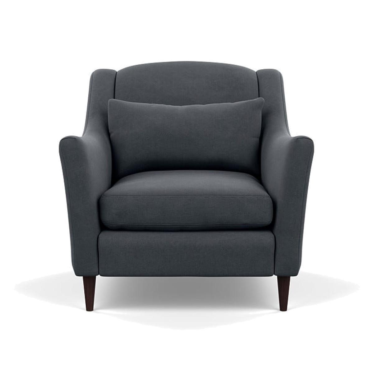 An original Heal's design, the Somerset armchair is made using traditional construction methods. The seat and back rest are made using traditional springs and layers of hessian, rubberised horsehair and wool wadding, all covered in a wool-felt interlining. The 100% European Duck feather-filled cushions provide a soft and sumptuous seat. Characterised by elegant curved lines and solid wood stem feet, the Somerset armchair also has slim arms that leave plenty of room to sink into the seat. The Somerset is available in a wide selection of Heal's fabrics.