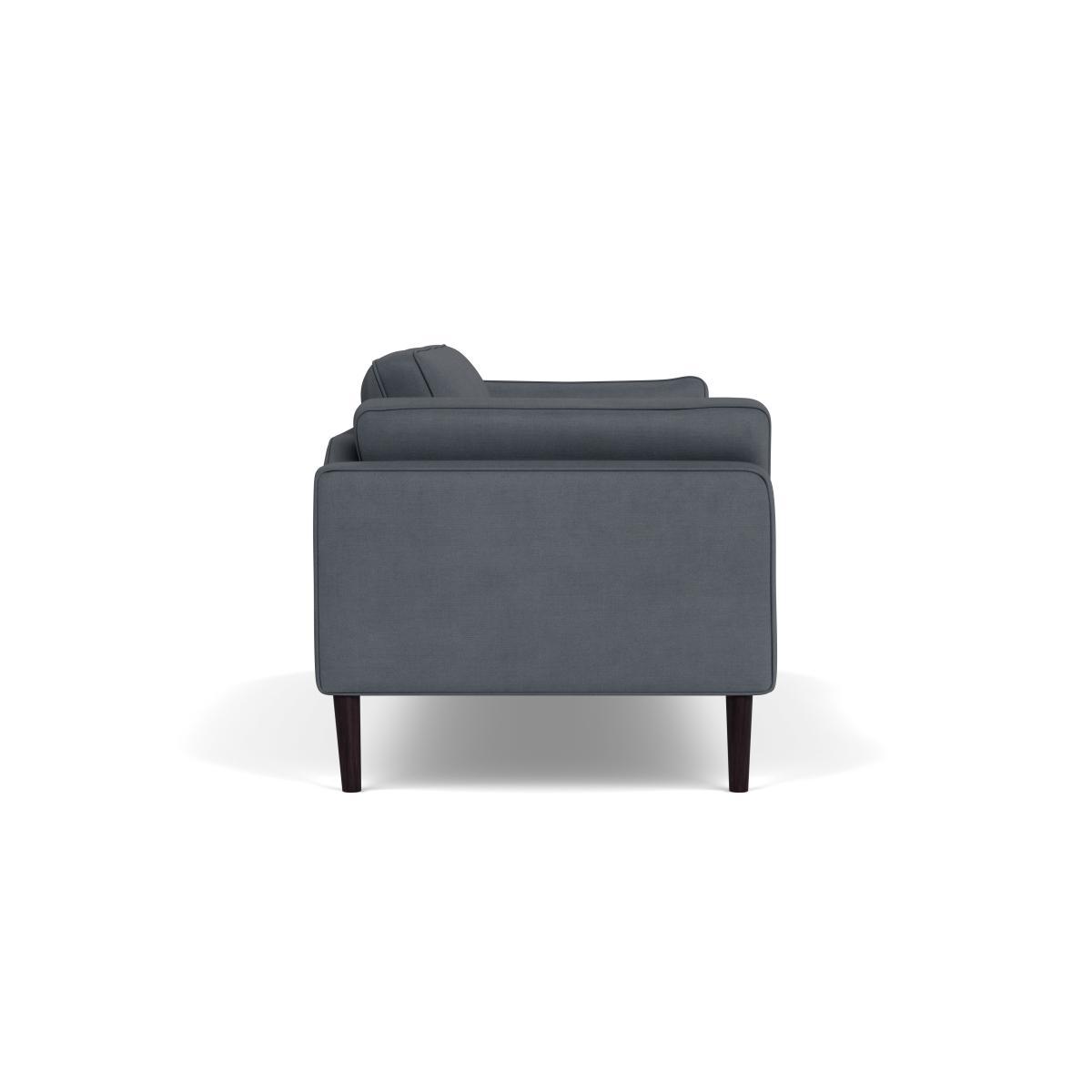 I love this sofa because of its versatile colour and clean lines, making it a great anchor piece in a variety of interiors. The shale grey upholstery lends itself well to both modern and transitional schemes, blending seamlessly with neutral tones or adding contrast to richer colours. Its walnut feet add warmth and a touch of sophistication. For styling tips, consider pairing it with textured cushions and contemporary tables to create a relaxed yet refined look. It works particularly well in open-plan living rooms or minimalist spaces, where its understated elegance can truly shine. Practicality-wise, the cotton fabric is comfortable, making it suitable for everyday use, while its shape remains sleek over time with proper care.