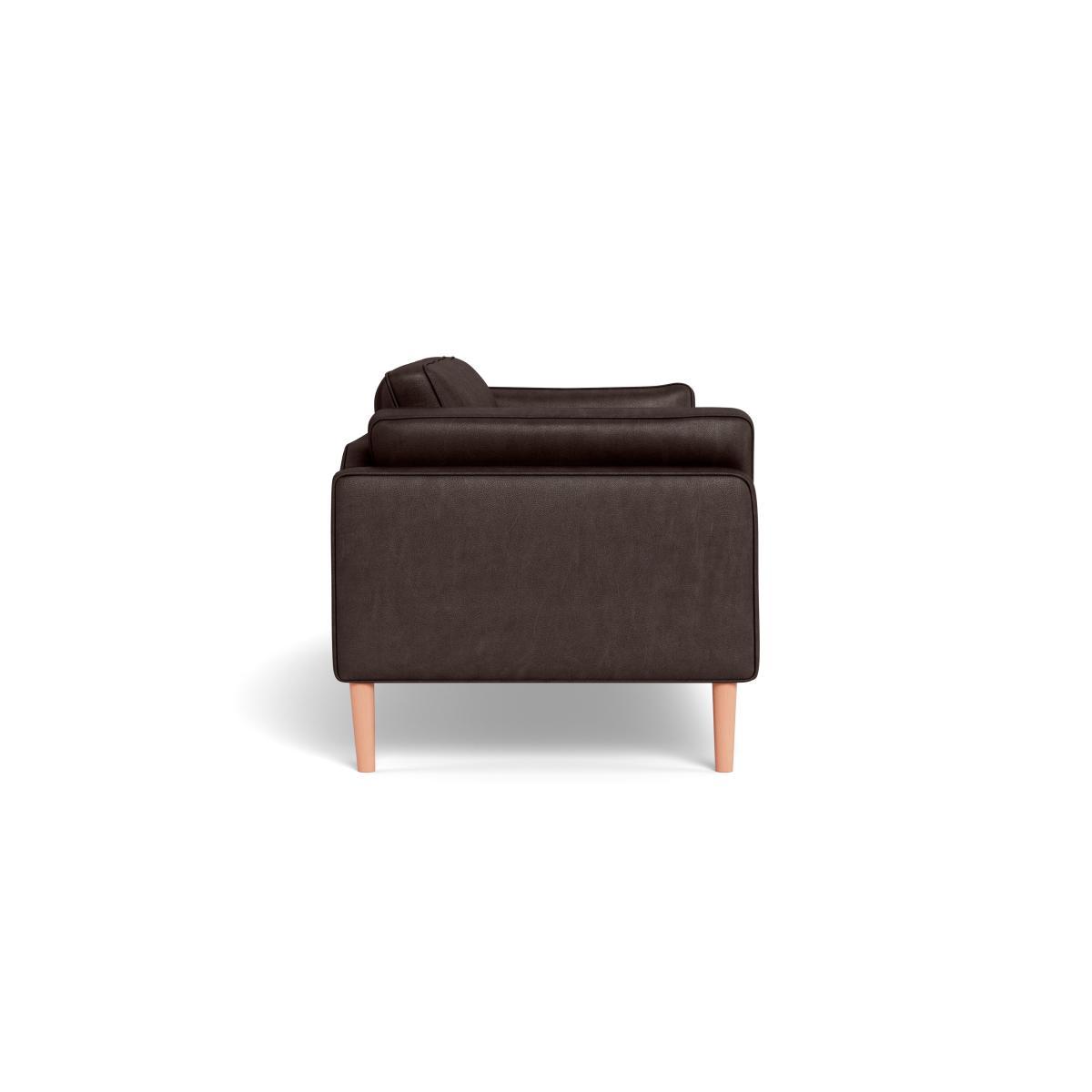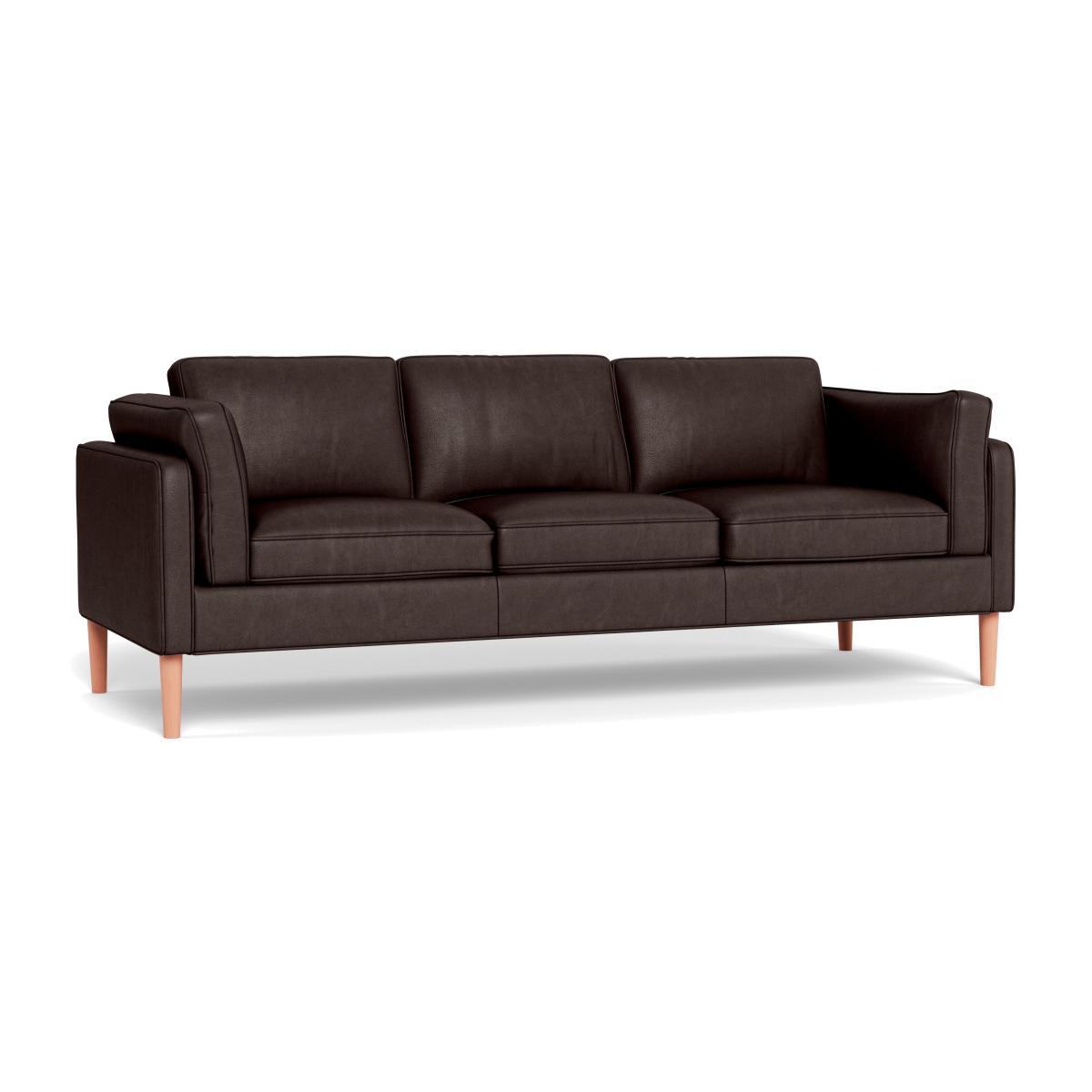 I love this sofa for its versatility and timeless appeal. The chocolate leather grain finish lends a sophisticated, durable look that works well in both contemporary and classic interiors. It’s an excellent choice for a family living room or a space where comfort and practicality are priorities, thanks to the robust leather and generous seating. For styling, consider pairing it with neutral or warm-tone cushions to soften the look, or add textured throws to create a cosy vibe. Its natural feet add a subtle contrast that allows it to be easily integrated into interiors with wooden accents or mid-century influences. Overall, it’s a dependable statement piece that balances style with everyday functionality.