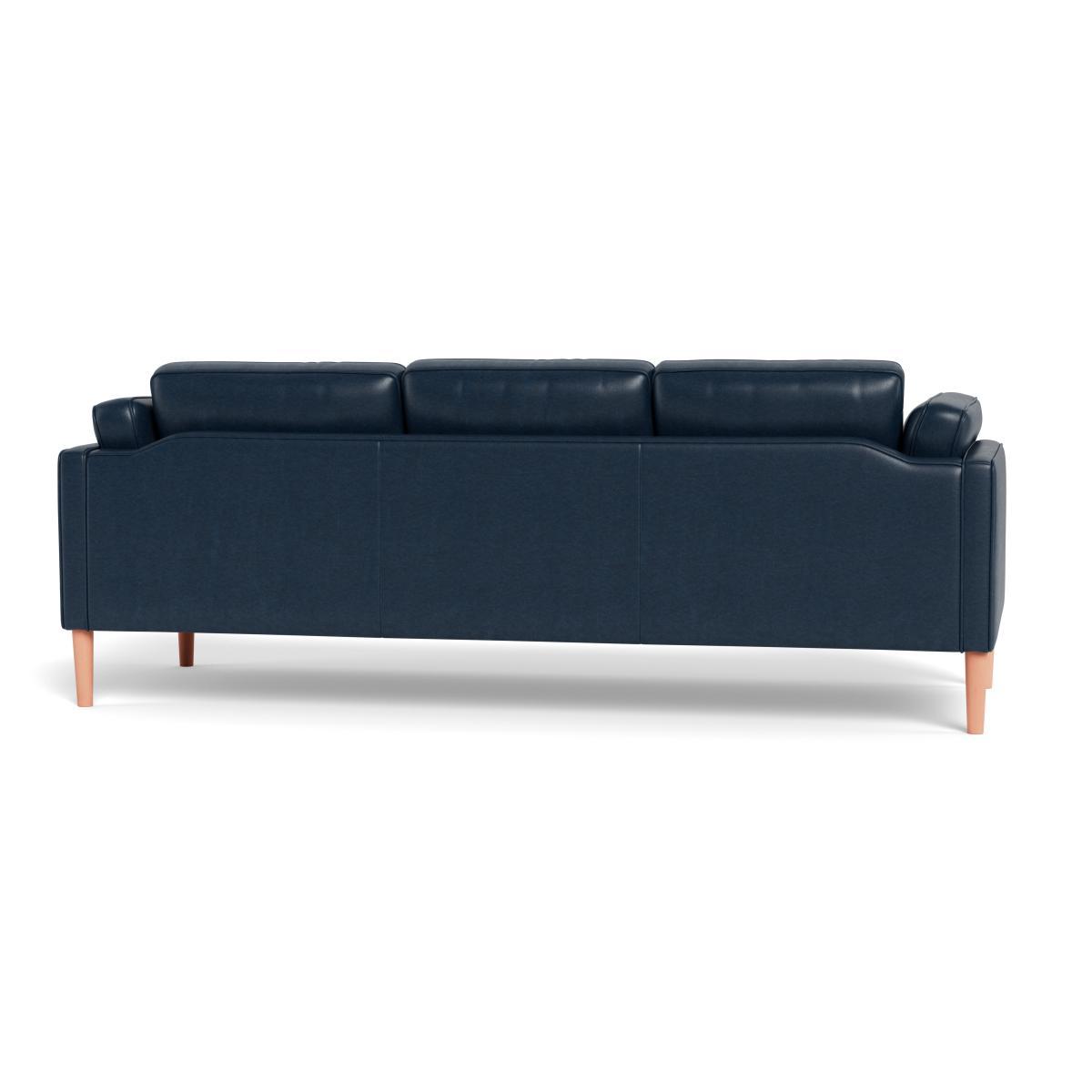 I love this sofa’s classic yet contemporary look, thanks to its sleek leather in a versatile navy blue that works well in both modern and traditional interiors. The stonewash finish adds a subtle texture, giving it a relaxed, lived-in appeal. It’s ideal for a family room or a lounge with neutral tones, as it can be paired effortlessly with soft greys, warm woods, or even patterned textiles for added visual interest. Practical styling tips include adding cosy throws and cushions in contrasting textures or colours to create a layered, inviting aesthetic. Its walnut feet bring a warm touch that complements natural materials and creates a grounded, sophisticated feel. Overall, it's a durable piece that will elevate the comfort and style of most contemporary or transitional settings.