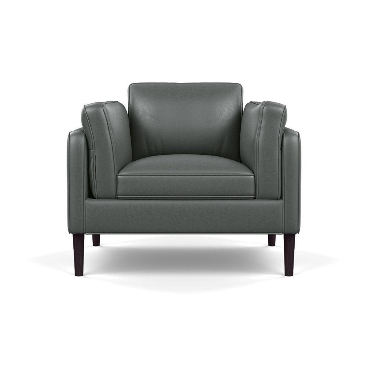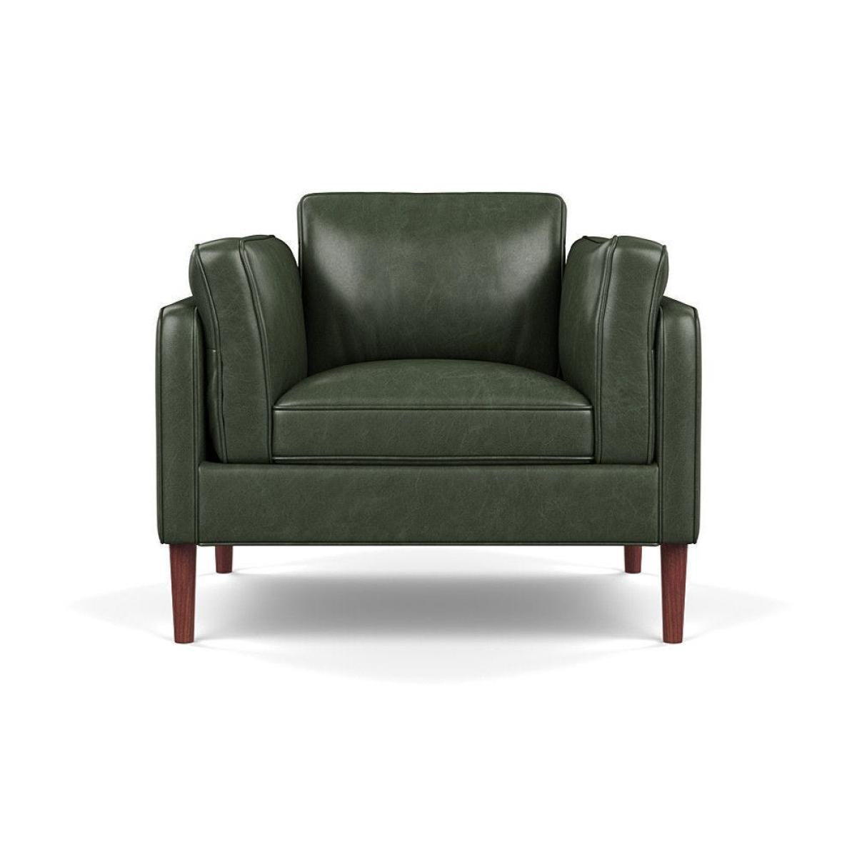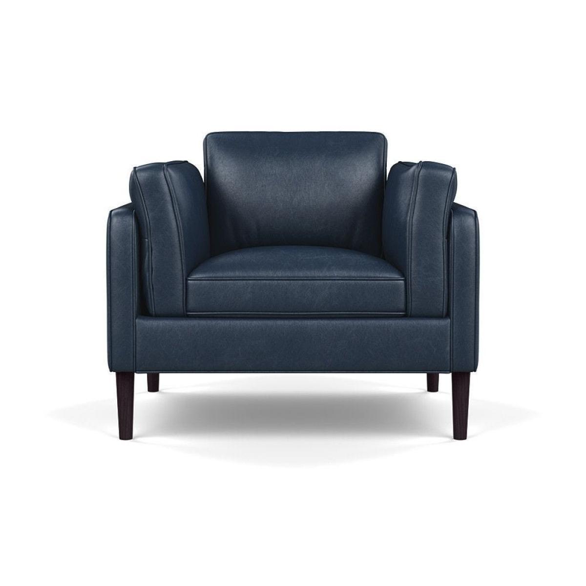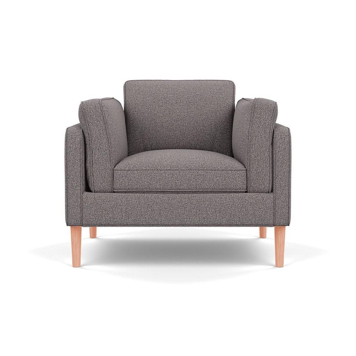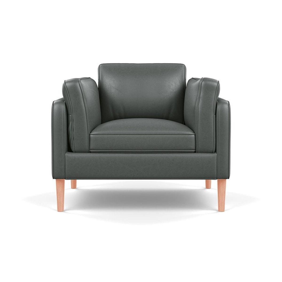I’d call it the Sonno armchair - its lightly textured brown leather and dark-wood legs give it a clean, modern-mid-century look that works in everything from a pared-back Scandi living room to an urban loft. Practical and hardwearing, it’s easy to wipe down yet still feels warm, so it’s ideal by a reading lamp or as an occasional chair in a home office. To style, add a single woollen throw in slate grey or olive, place it beside a slimline metal-framed coffee table, and top with a low, woven cushion for a touch of contrast.