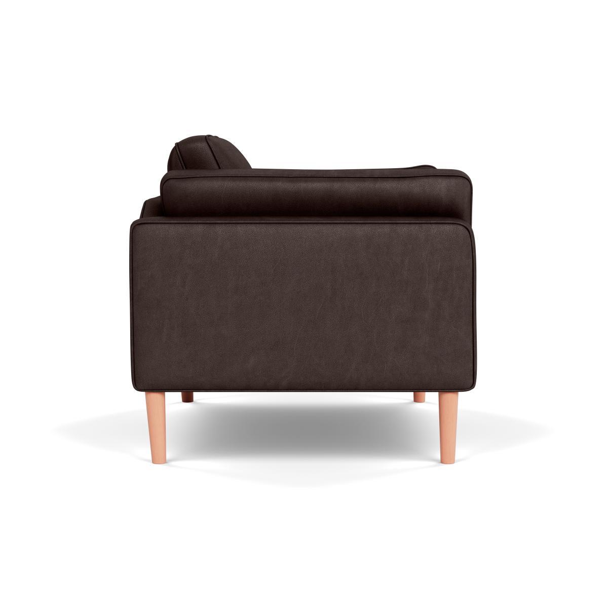 I love the Sonno armchair for its clean lines and rich chocolate leather-grain upholstery - it immediately adds a touch of warmth to any room. The walnut-toned legs lift the design, making it equally at home in a modern Scandi living space or paired with industrial accents like a black metal side table and exposed‐brick wall. For styling, balance the deep hue with a light-coloured wool throw or a linen cushion in muted ochre or soft grey. Position it next to a low‐profile floor lamp and a slender plant stand to keep the area feeling open, and layer in textured rugs to anchor the seat visually.