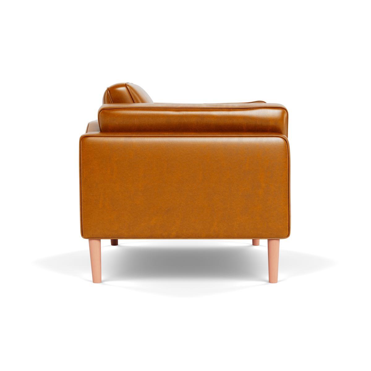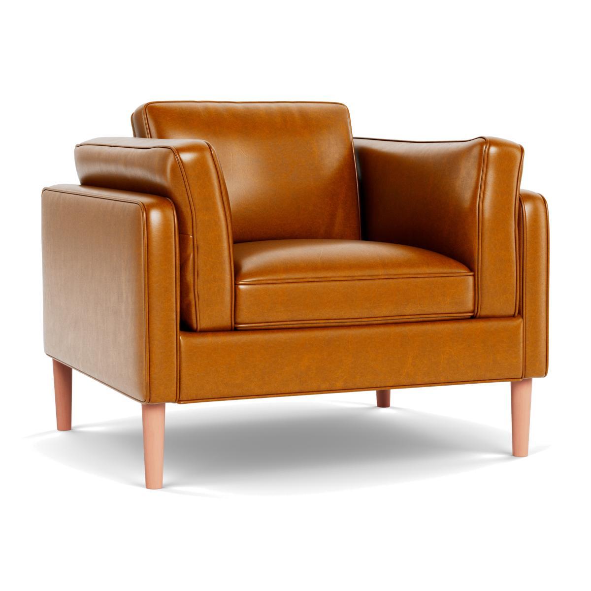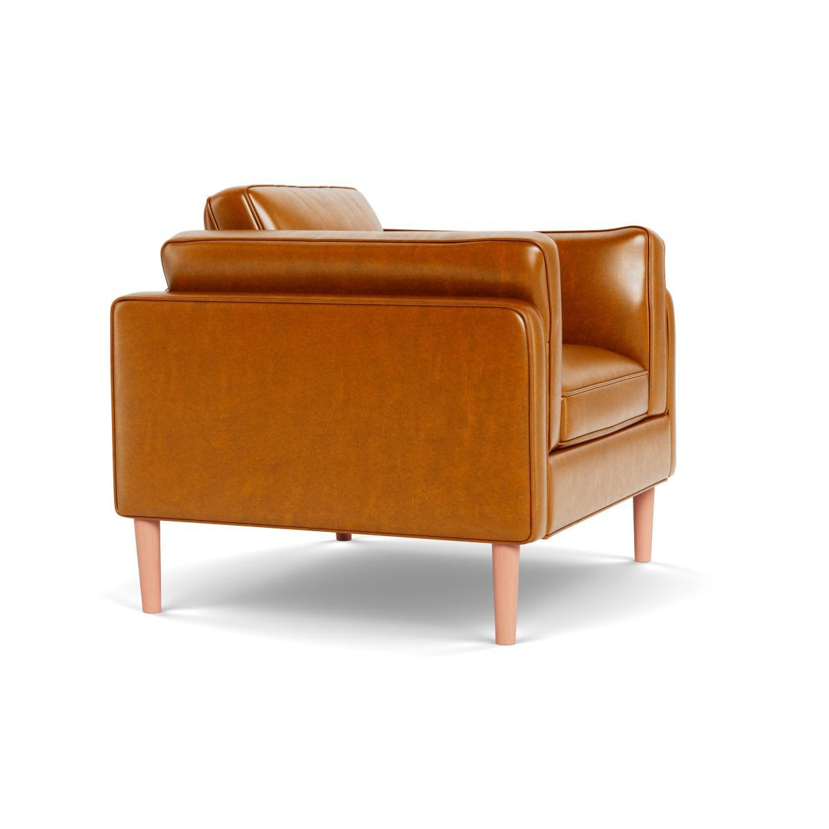 I’m a big fan of this toffee-leather Sonno chair for its clean lines and rich, lived-in finish. The stone-wash leather adds warmth without feeling fussy, and the natural-wood legs keep the look light - perfect for both modern Scandi schemes and loft-style living rooms. Pair it with a chunky wool throw or a contrasting linen cushion to soften the boxy shape. It sits well beside a slim metal side table or a mid-century coffee table, so you can easily layer in textured rugs and brass accents. To maintain the leather, wipe spills immediately and treat it with a neutral pH cleaner every few months.