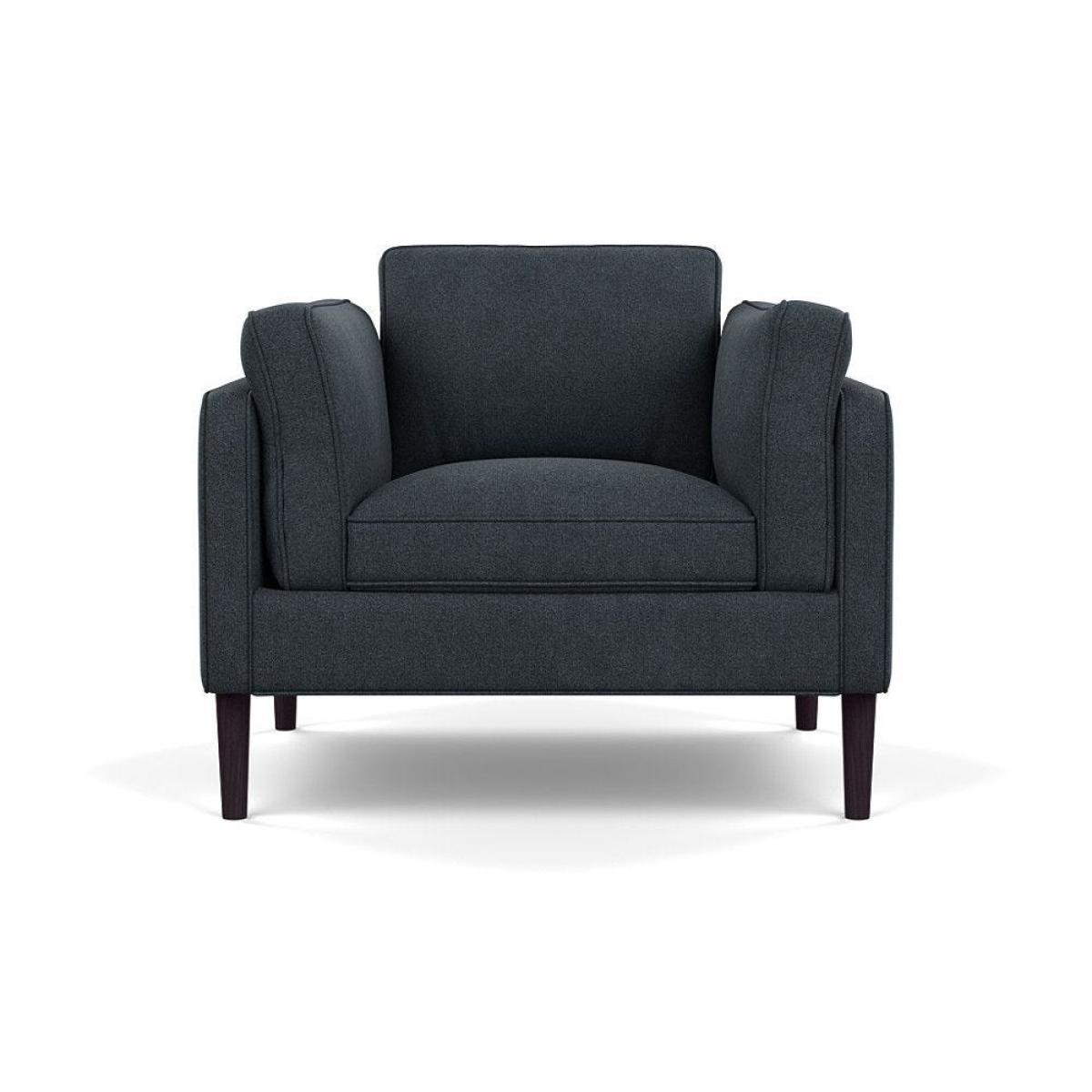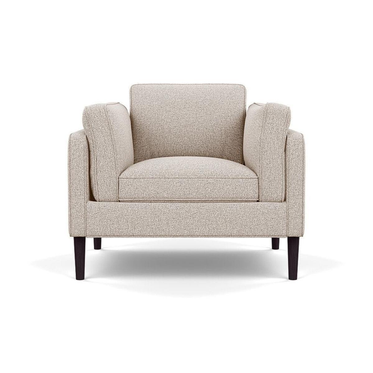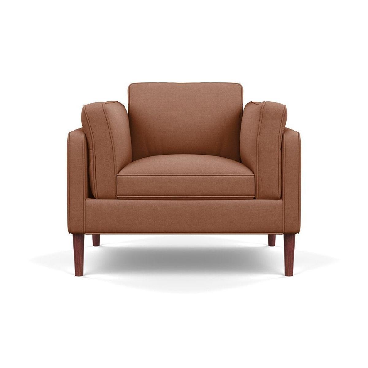 Reviving an iconic mid-century shape, this armchair by designer Sonno combines expert upholstery with elegant design. Crafted by experts in Italy, the Sonno armchair has all the characteristics of contemporary Italian furniture: clean lines, an angular form, and gentle, curved edges. The deep cushioning and generously sized arm bolsters bring ultimate comfort in a sophisticated style. Available in a range of Heal’s fabrics, match your interior design with this armchair’s upholstery – a perfect pairing with any of the Sonno sofas.