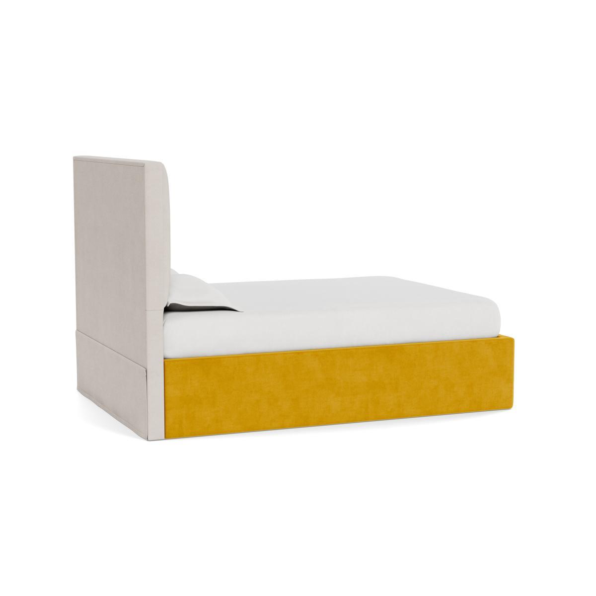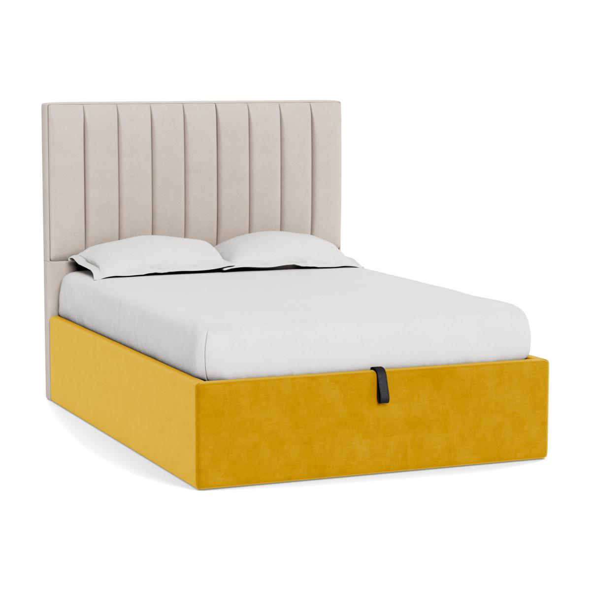 I love this bed base for its bold combination of the luxe velvet in mustard yellow and the elegant canary shade, which adds a pop of colour and personality to any bedroom. It's particularly versatile in contemporary or eclectic interiors, combining comfort with a touch of sophistication. Practical styling tips include pairing it with neutral or patterned bedding to let the colour stand out, and adding textured cushions or throws in complementary colours for added depth. Its streamlined design suits both minimalist spaces and more playful, colour-inspired schemes. The tall, upholstered headboard offers a comfortable backdrop for cosy nights in, and the concealed storage makes it a functional choice for rooms where space optimisation is key.