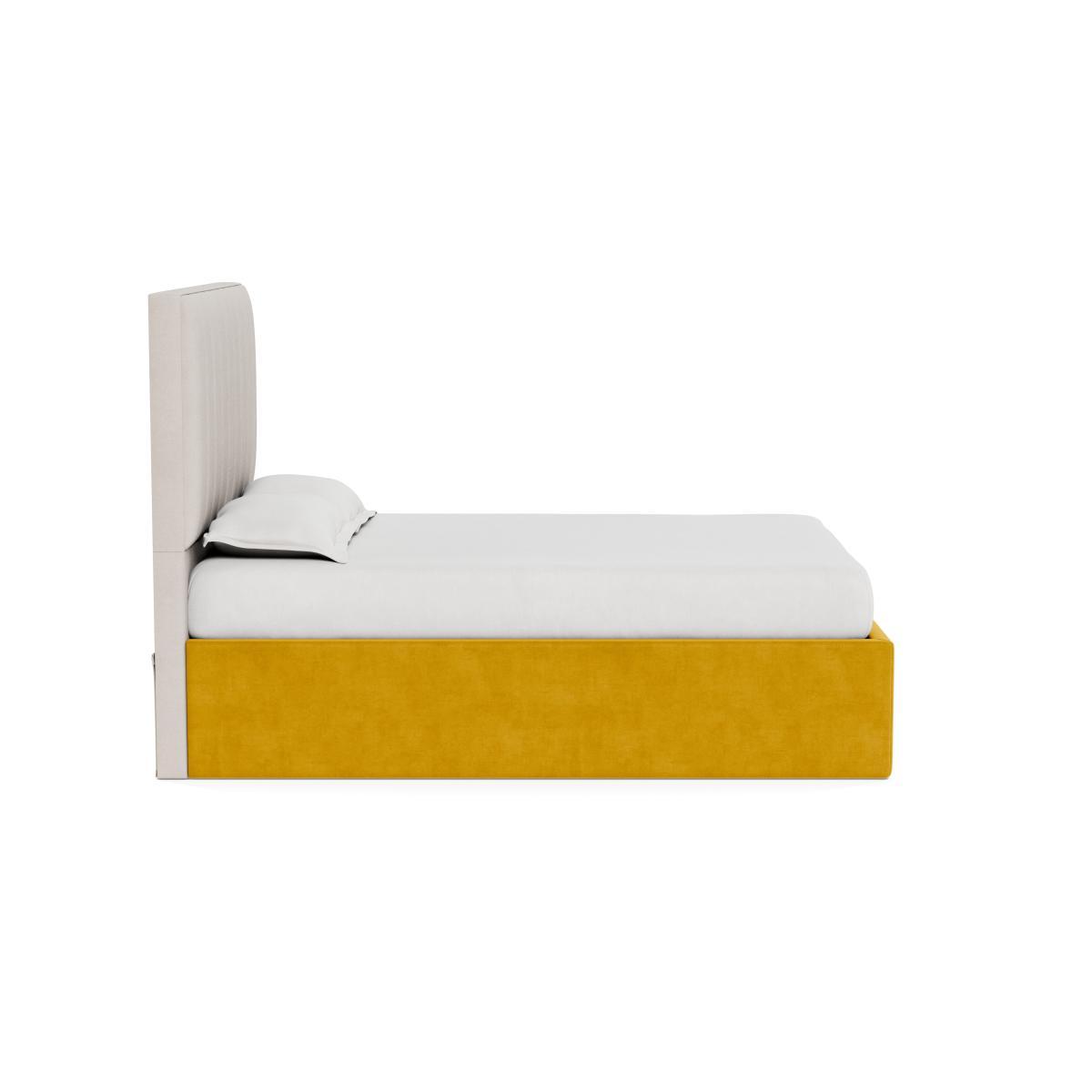 I love this divan base for its bold colour contrast and luxe velvet finish, which makes it a statement piece even in more restrained interiors. The canary yellow adds a vibrant touch, making it ideal for contemporary spaces that want a splash of personality, while the velvet provides a tactile richness suited to both modern and eclectic bedrooms. Practical styling tips include pairing it with muted or neutral bedding to allow the colour pop to shine, and accessorising with metallic or black accents to create a cohesive look. Its versatile shape and plush texture make it an adaptable choice across various styles, from minimalistic to more layered, personalised schemes.