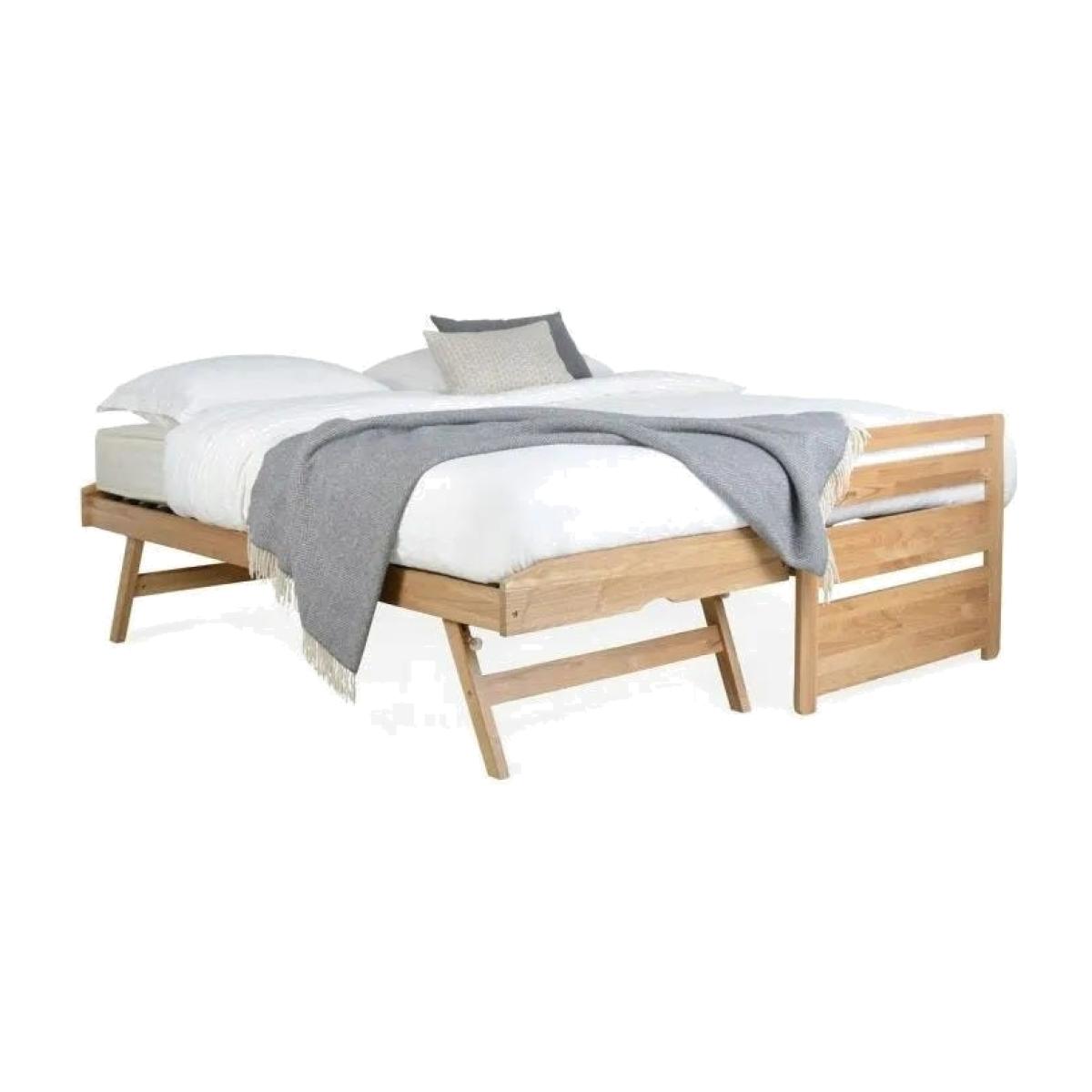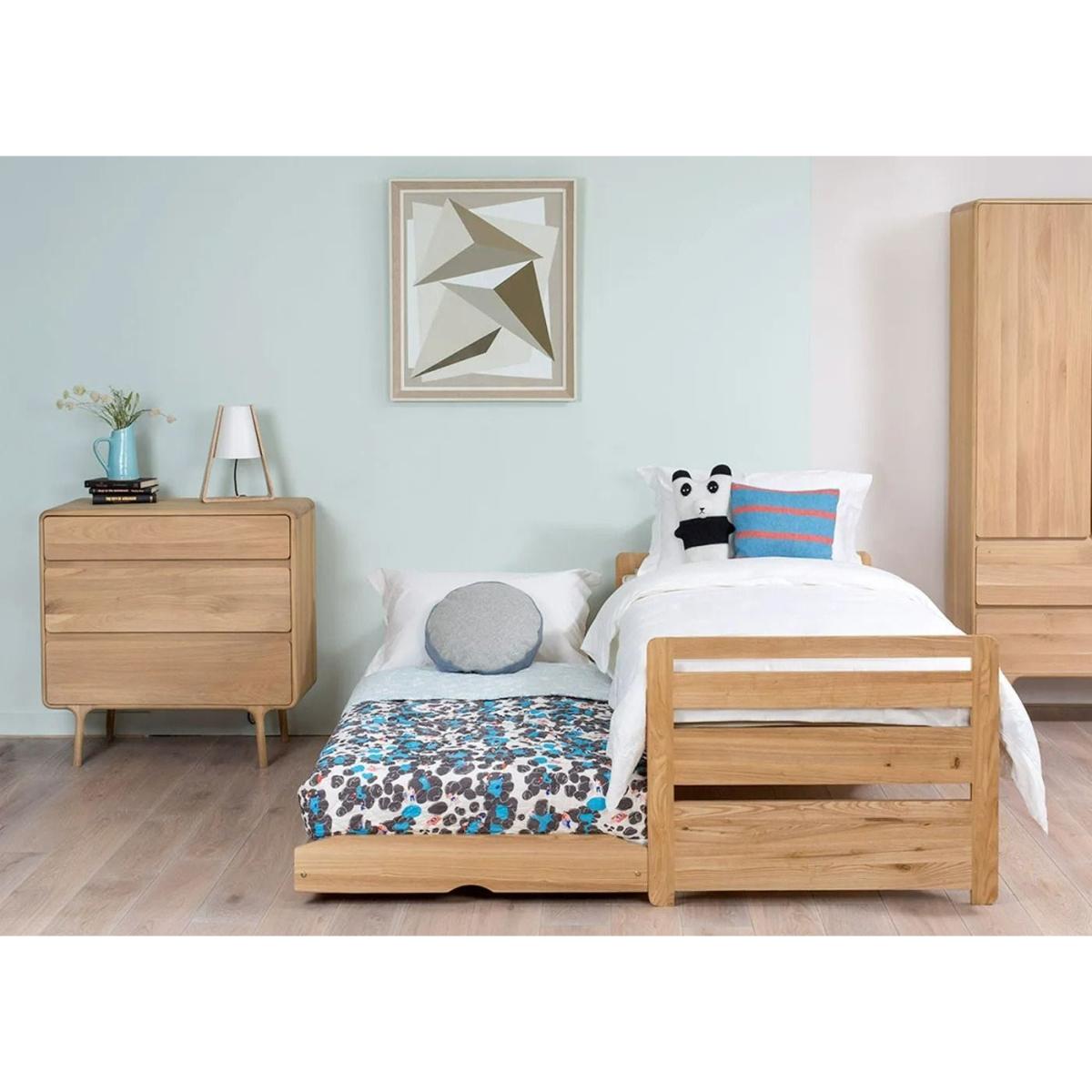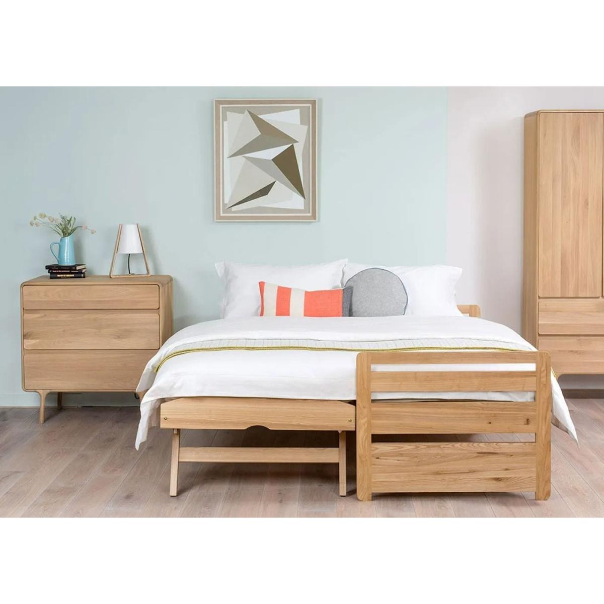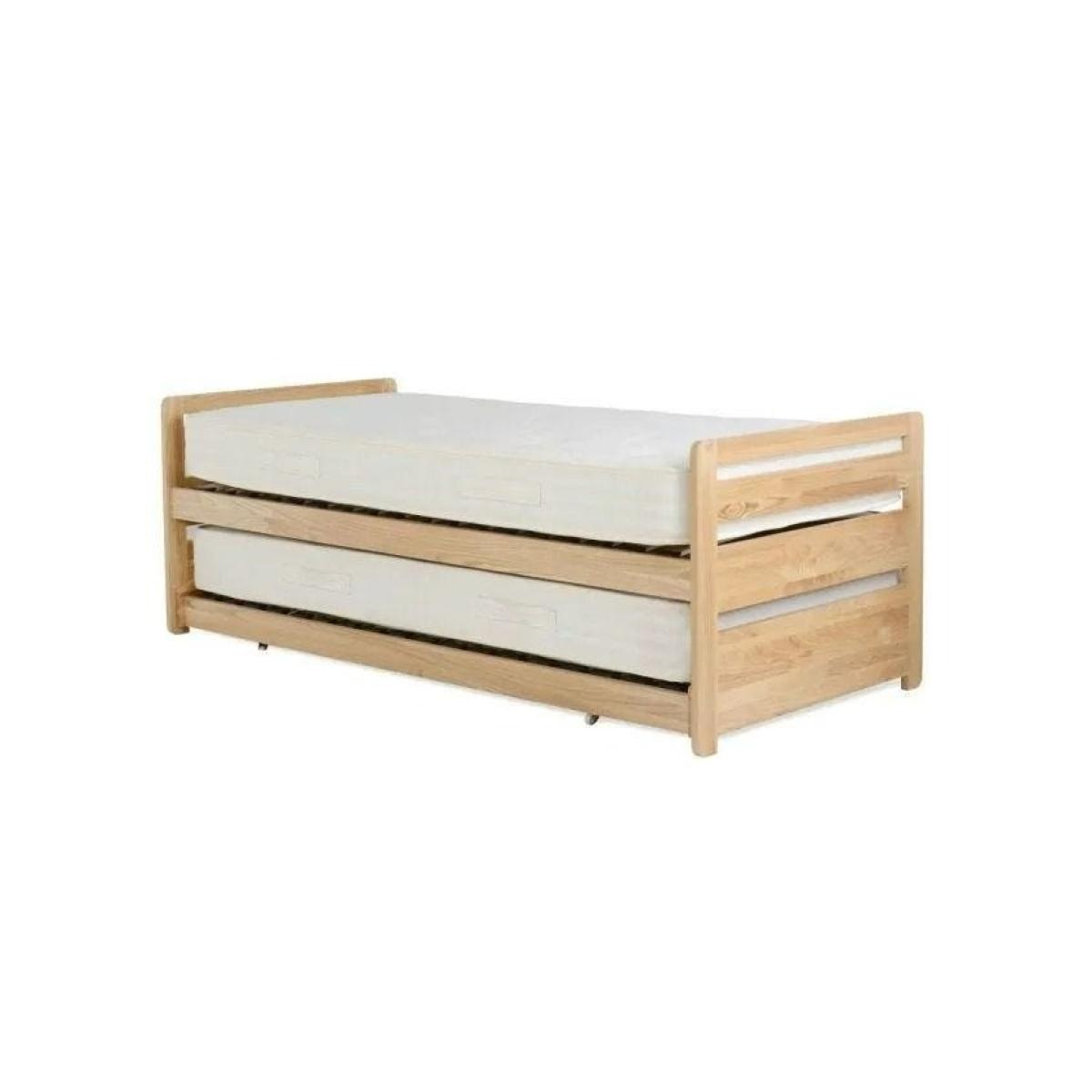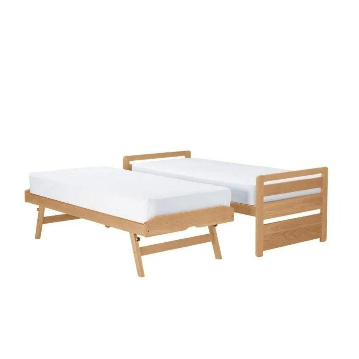 Easy to operate, solidly structured and minimally styled, the ingenious foldaway design of the Storabed is the answer to all your space-saving needs. The simple form of the sturdy bed frame pairs well with every type of décor, the cutaway detail on the side panels connecting to supportive bars. Neatly stowed away, the similarly styled frame of the under-bed glides on castors to easily move into position, with sprung-loaded legs unfolding to a full-height sleeping position in no time, perfect for when relatives come to stay or last-minute guests. Complete with two hand tufted, fully turnable, double sided Pocket Sprung Mattresses, this dynamic design is the answer for urban homes looking to maximise their space without compromising the amenities of modern living.