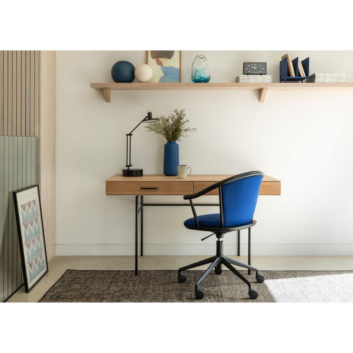 I love the combo of black ash and grey velvet on this office chair - it’s a sophisticated mix that adds a touch of luxe without being overly formal. It works especially well in contemporary or modern schemes, where clean lines and muted tones are key. For styling tips, try pairing it with a minimalist desk and a neutral colour palette, allowing the chair's rich velvet to serve as a subtle statement piece. It's practical too - the adjustable height and caster wheels make it functional for daily use, while the plush velvet adds comfort during long hours. This chair effortlessly bridges a professional look with stylish comfort, making it versatile enough for both home offices and more upscale workspaces.