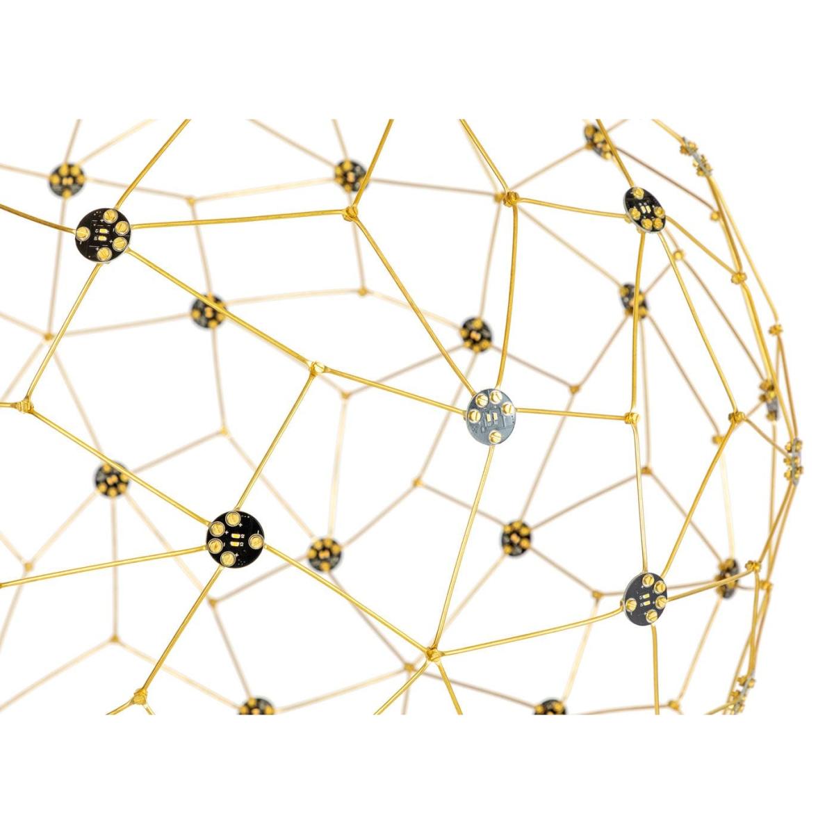 Inspired by the majesty and beauty of bursting stars, this lamp is a centrepiece that captures attention effortlessly while invoking a sense of awe. The Supernova LED Round Pendant is composed of a network of LED lights that when switched on truly resemble an explosion of starlight. The constellation-mimicking polished brass or black chrome metal connects individual LED lights to each other, creating a large, sphere structure to hang in any living space.