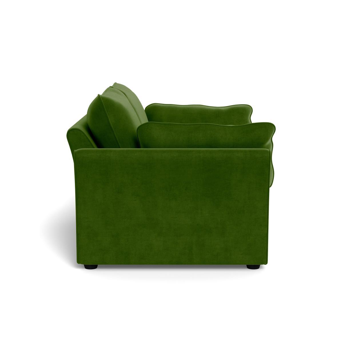 I love this sofa for its vibrant grass green velvet, which instantly adds energy to a room. The Smart Luxe velvet gives it a rich, sophisticated texture that works well in both contemporary and classic interiors. It’s versatile enough to pair with neutral tones for a subtle contrast or with bold colours and patterns for a statement look. Practical styling tips include keeping accessories minimal to let the colour shine, or accessorising with soft throws and cushions in complementary shades like mustard or blush. Its size and design make it suitable for small living rooms or open-plan spaces where it can double as a cosy sofa and a guest bed when needed. The beech feet add a natural touch, grounding the look and providing a warm, organic finish.