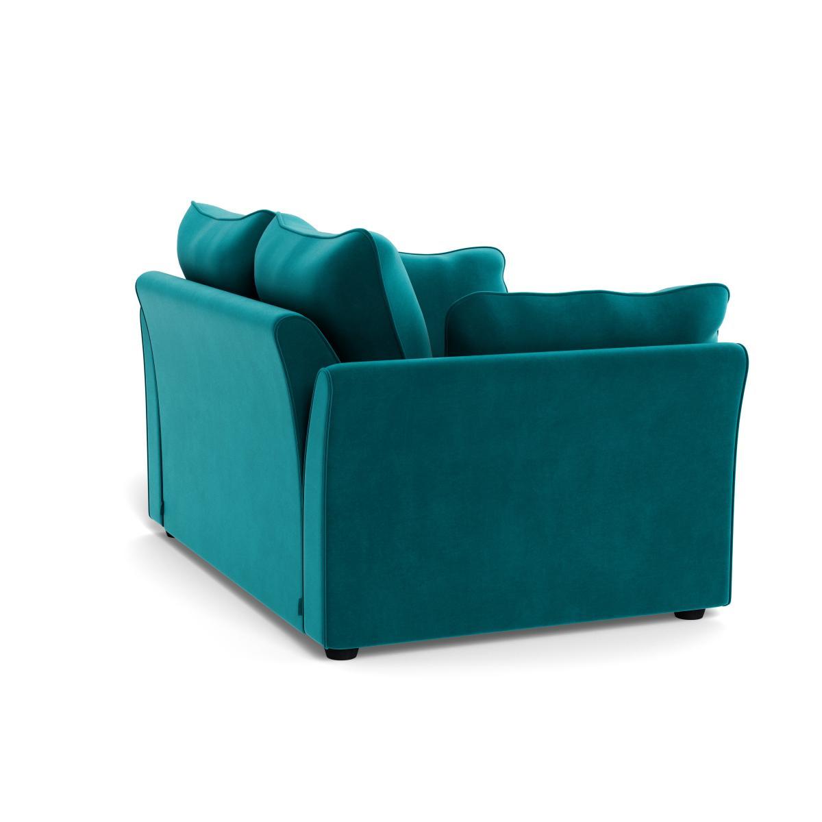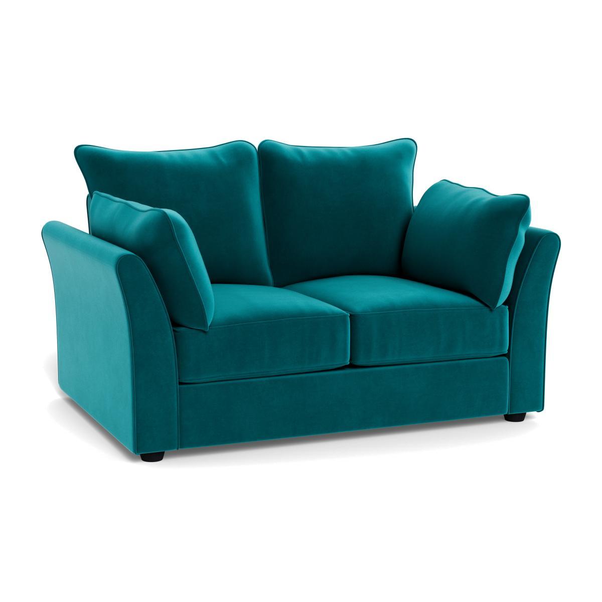 I love this sofa for its bold petrol velvet upholstery, which makes it a fantastic statement piece in both modern and eclectic interiors. Its compact, two-seater design is perfect for smaller living rooms or as a cosy addition to a guest room that doubles as a sofa bed. The black feet add a subtle contrast, grounding the vibrant colour. To style around it, consider layering neutral or patterned throws and cushions to soften the look or pairing with complementary colours like mustard or copper for an on-trend feel. Practical tips include placing it near a window to highlight the rich velvet texture or adding a sleek coffee table with minimal detailing to keep the space feeling fresh and uncluttered.