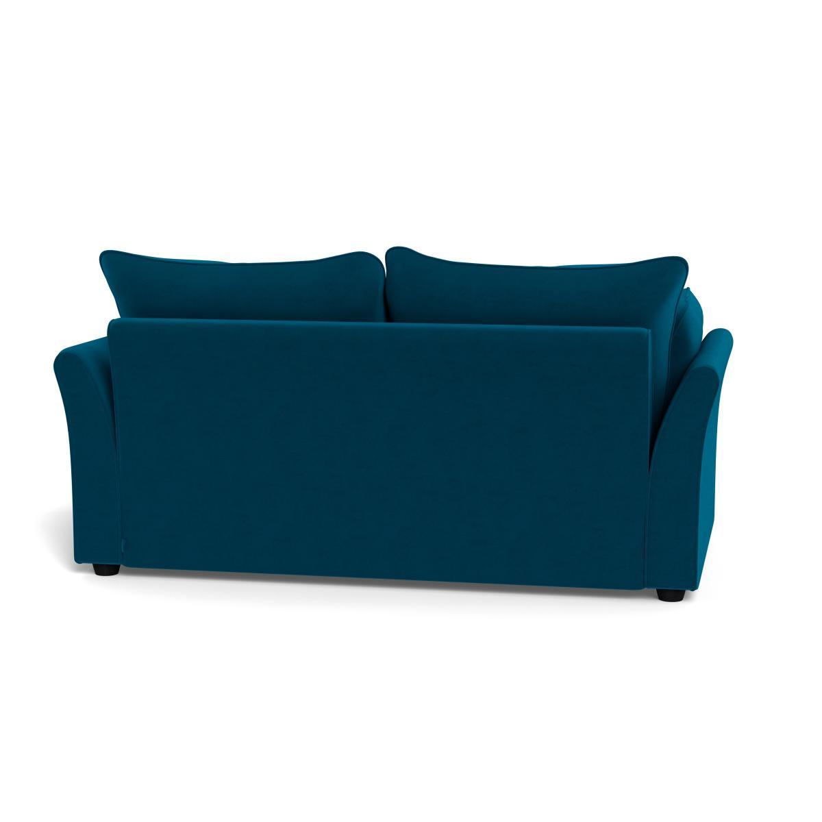 I love the bold teal velvet finish of this sofa, which offers a sophisticated pop of colour that works beautifully in both contemporary and eclectic interiors. Its deep hue pairs well with neutral tones like grey and beige, or can be paired with patterned cushions for added texture. The velvet adds a luxurious feel, making it a versatile choice that can elevate a formal lounge or a cosy, casual space. Practical styling tips include keeping accessories minimal to highlight the sofa’s rich colour or layering with contrasting cushions and throws for a relaxed look. Also, given that it's a sofa bed, it adds a clever multifunctional element to smaller spaces or guest rooms, making it a smart buy for both style and practicality.