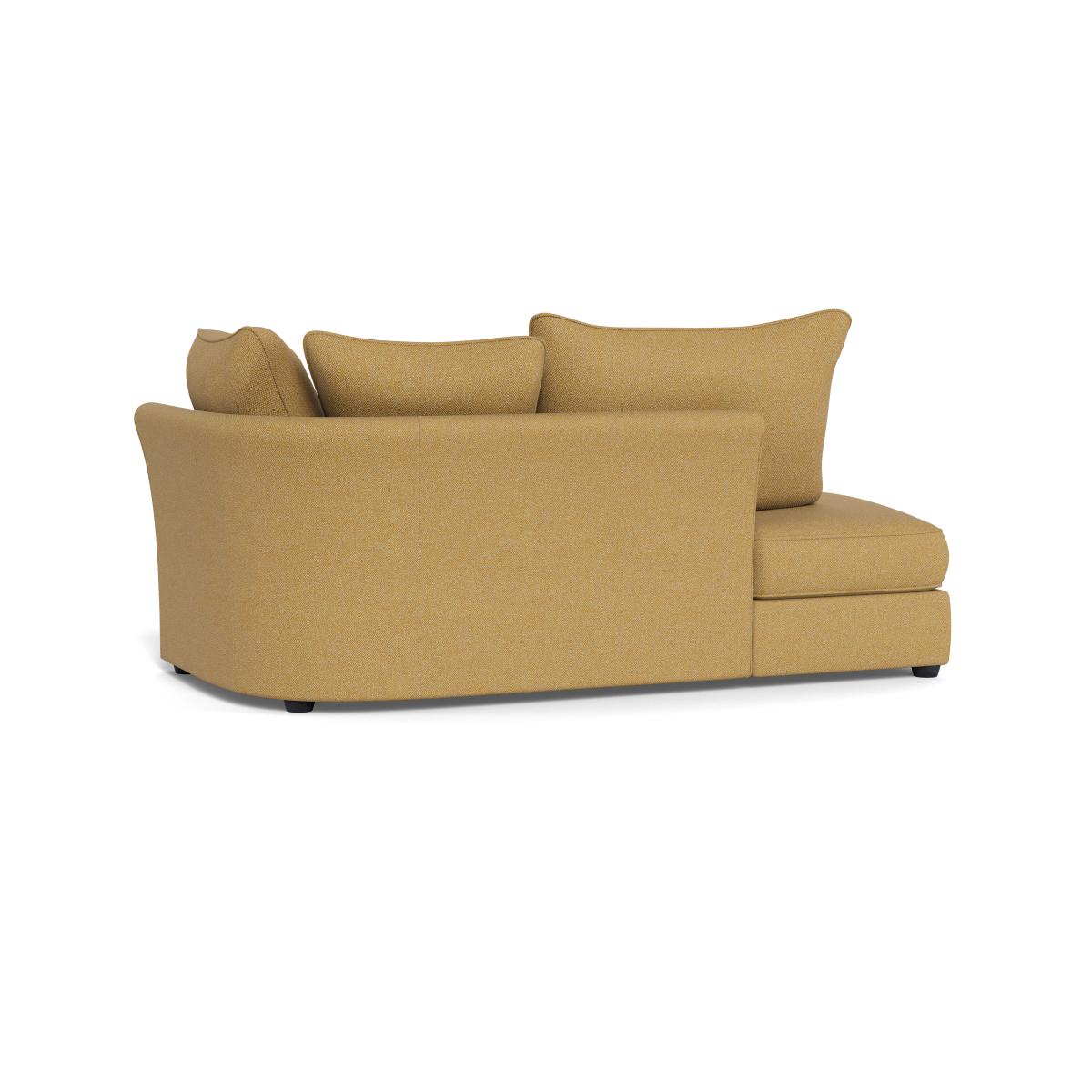 I love this little chaise for its versatile shape and neutral tone, making it a great addition to a variety of interiors. Its boucle tweed fabric adds texture and visual interest, while the citrine colour injects a subtle warmth and a contemporary edge. It works particularly well in modern or pared-back schemes, but can also soften a more eclectic or bohemian space when styled with contrasting cushions and throws. Practical styling tips include pairing it with a sleek coffee table or a statement rug, and using cushions to add pops of colour or pattern. Its left-hand facing design makes it ideal for creating cosy corners in open-plan living areas or beside larger sofas for extra lounging.