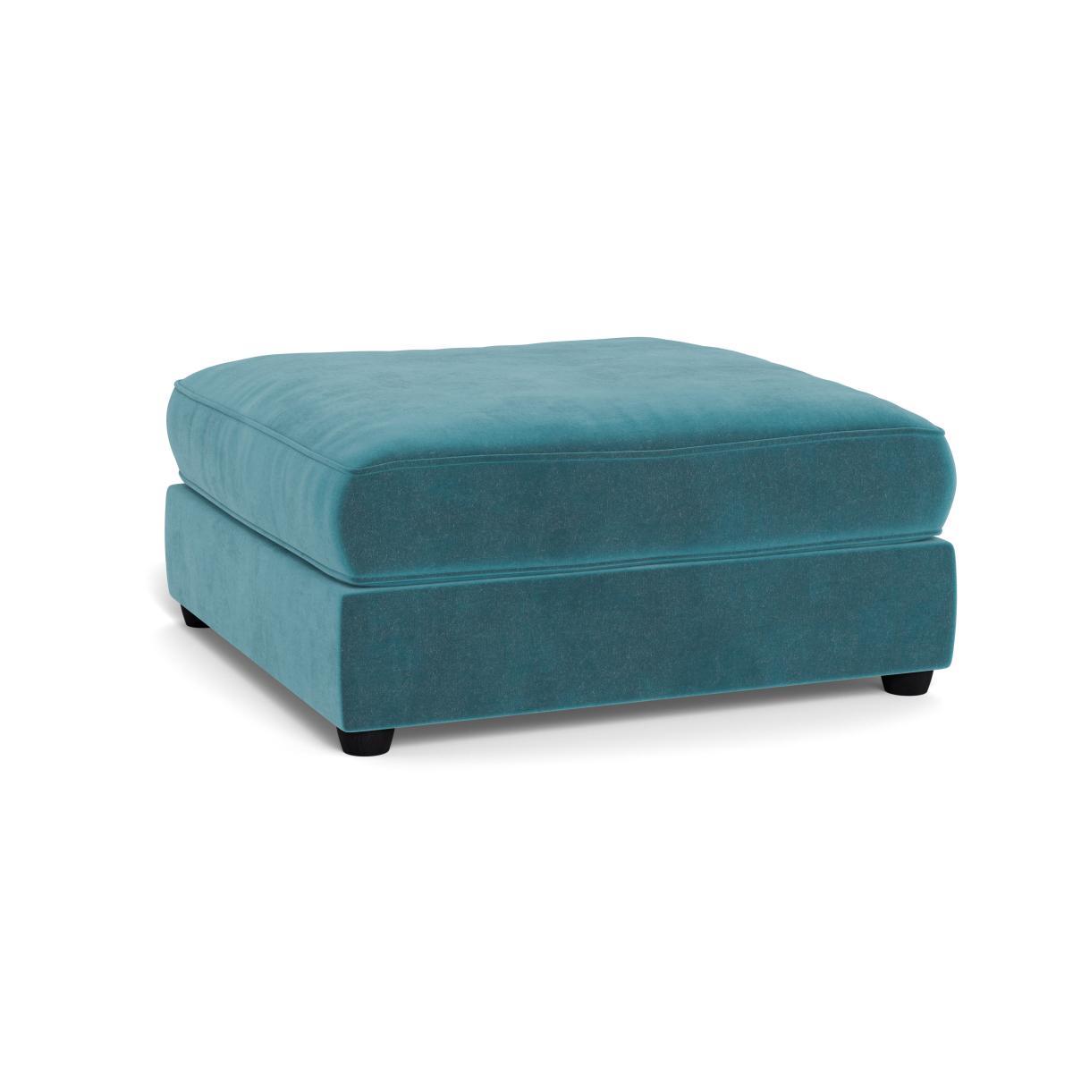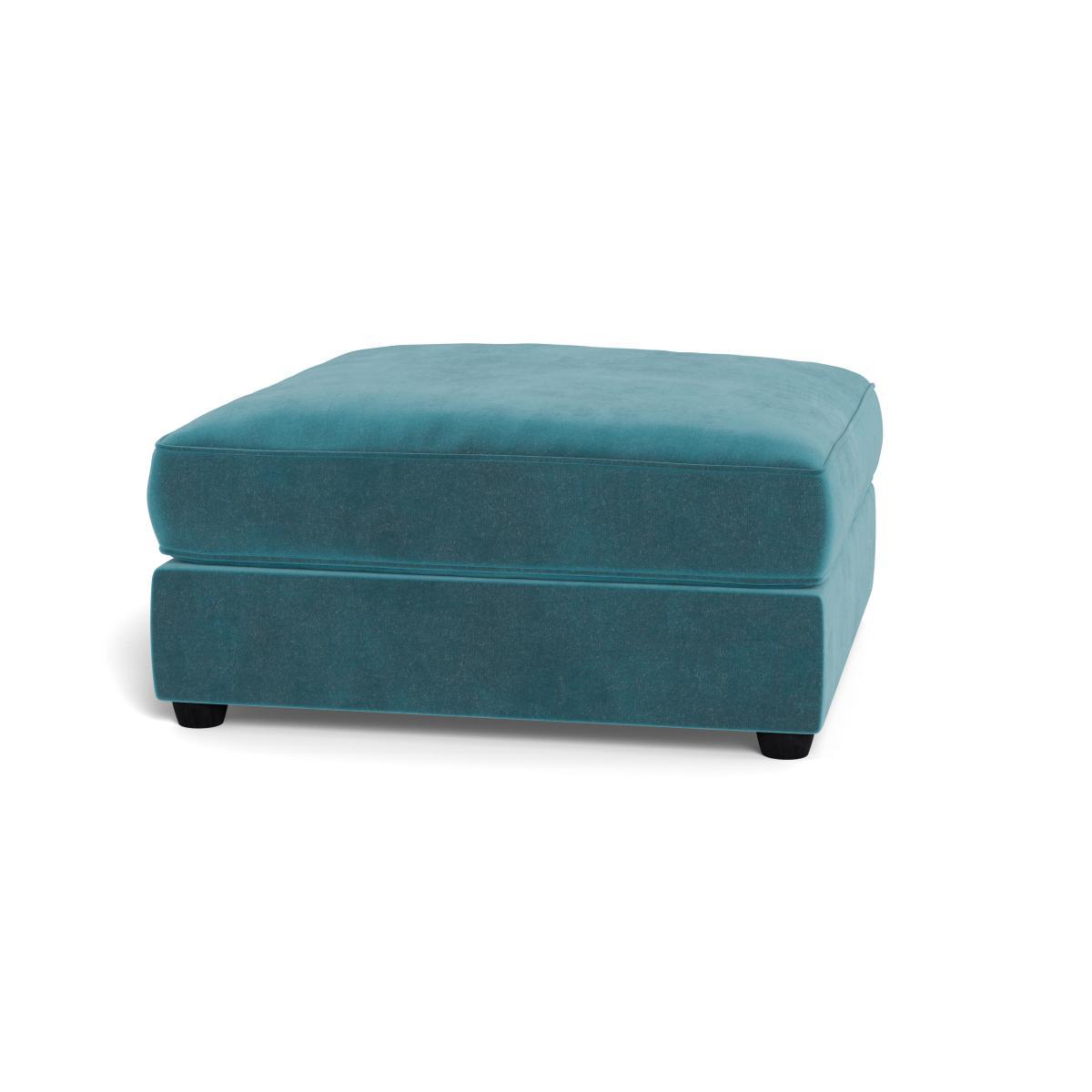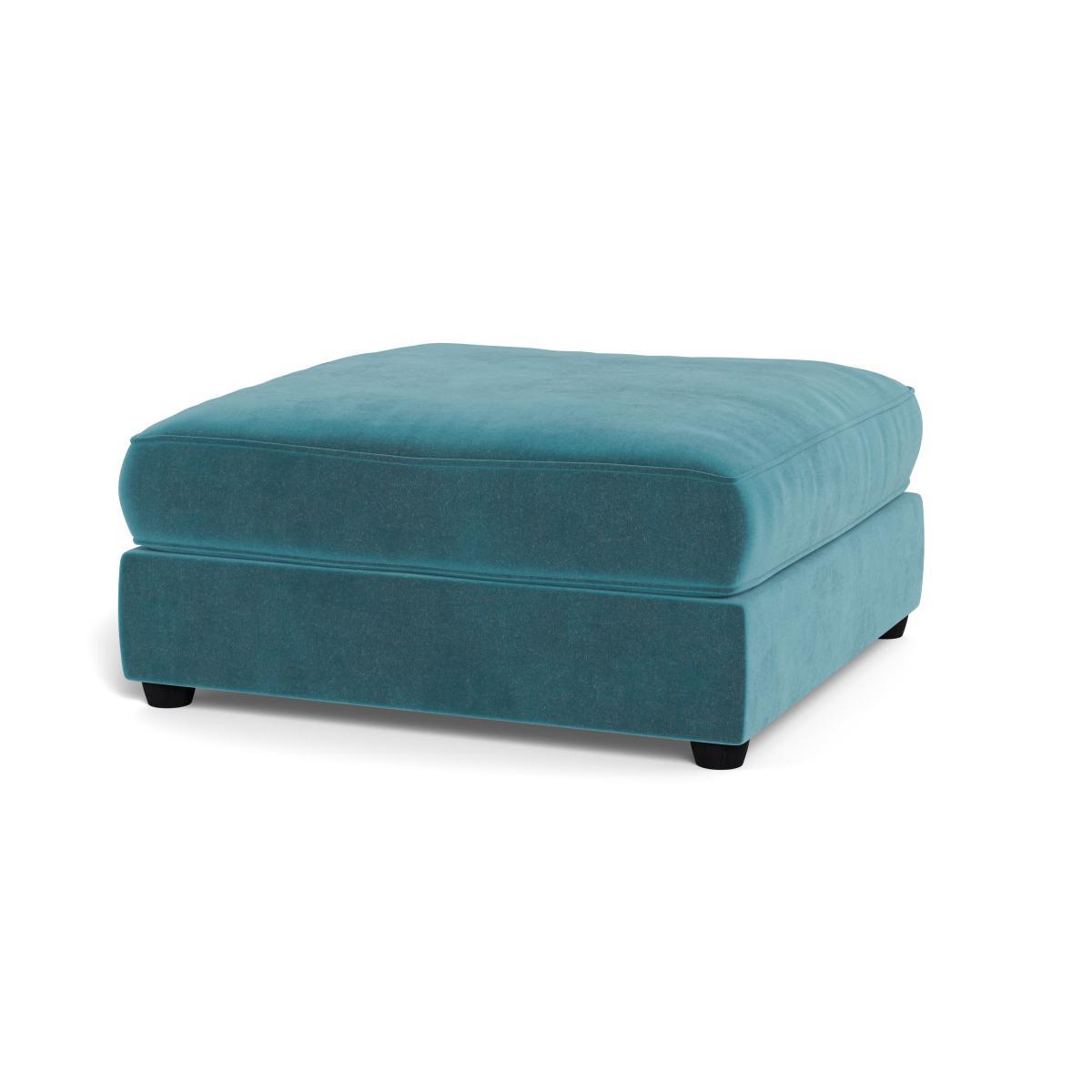 Heal's Tailor Footstool Smart Luxe Velvet Airforce Blue Black Feet - Heal's UK Furniture
