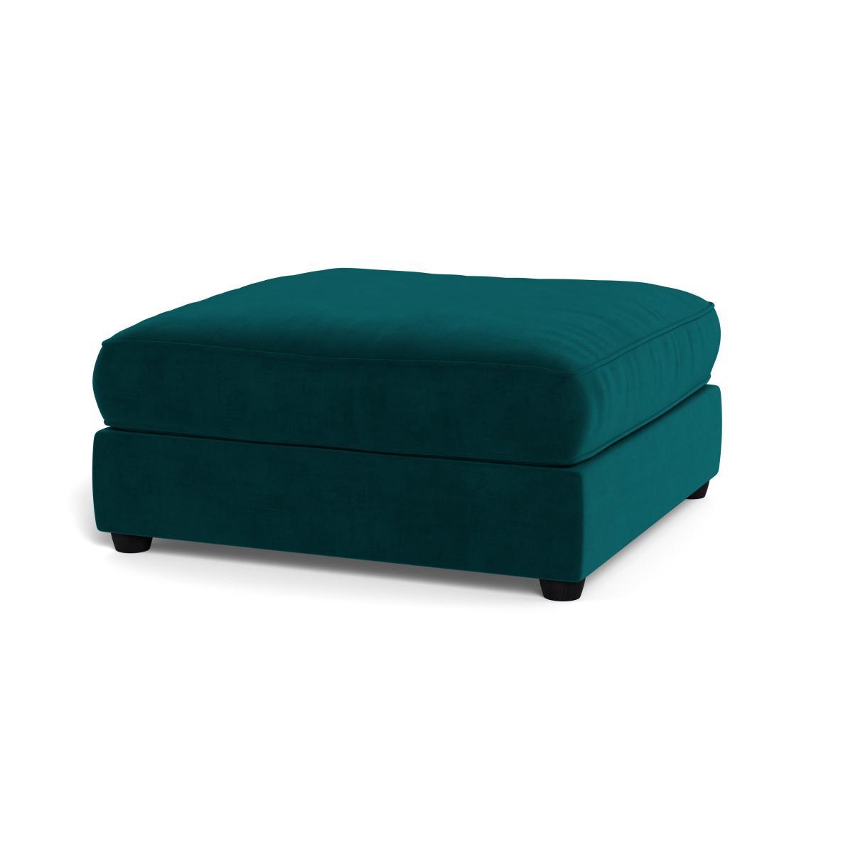 Heal's Tailor Footstool Smart Luxe Velvet Ocean Natural Beech Feet - Heal's UK Furniture