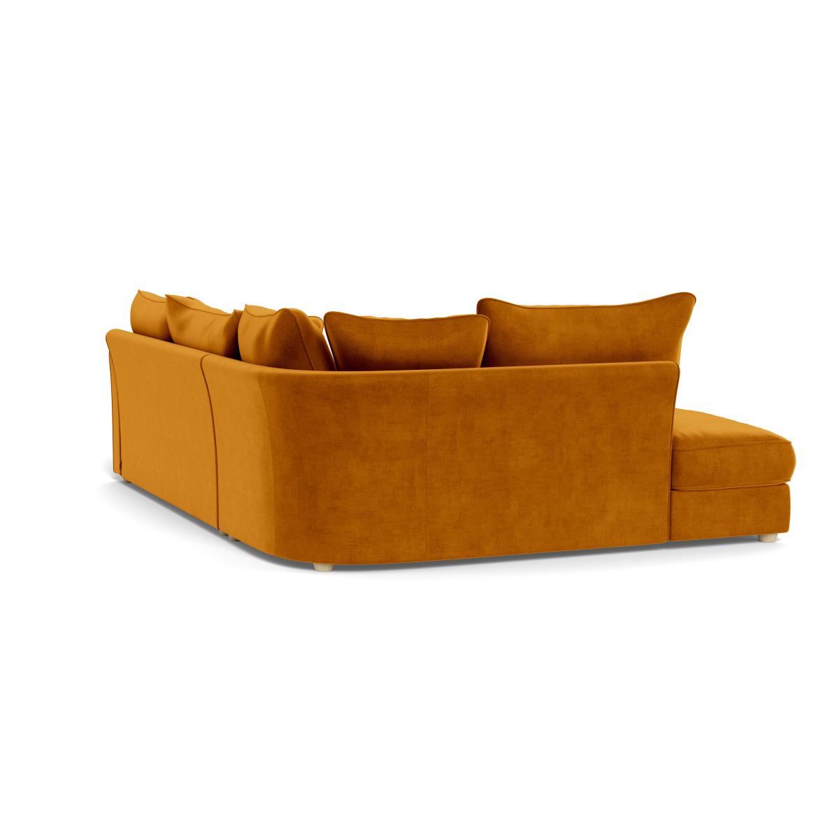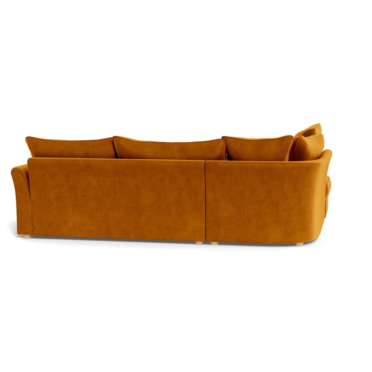 I love this piece for its lush Luxe velvet in a warm cognac tone, which adds instant richness and invites relaxation. The left-hand facing corner sofa works particularly well in open-plan living spaces or family rooms, providing a comfortable and sociable seating arrangement. It pairs beautifully with neutral or mid-tone colour schemes, but also lends itself to more eclectic interiors when styled with patterned cushions or throws. Practical styling tips include balancing its bold colour with contrasting accessories, such as black or metallic accents, and positioning it near plenty of natural light to enhance the velvet’s texture. The natural beech feet give a subtle touch of warmth, making it a versatile addition that can adapt to both contemporary and classic interiors.
