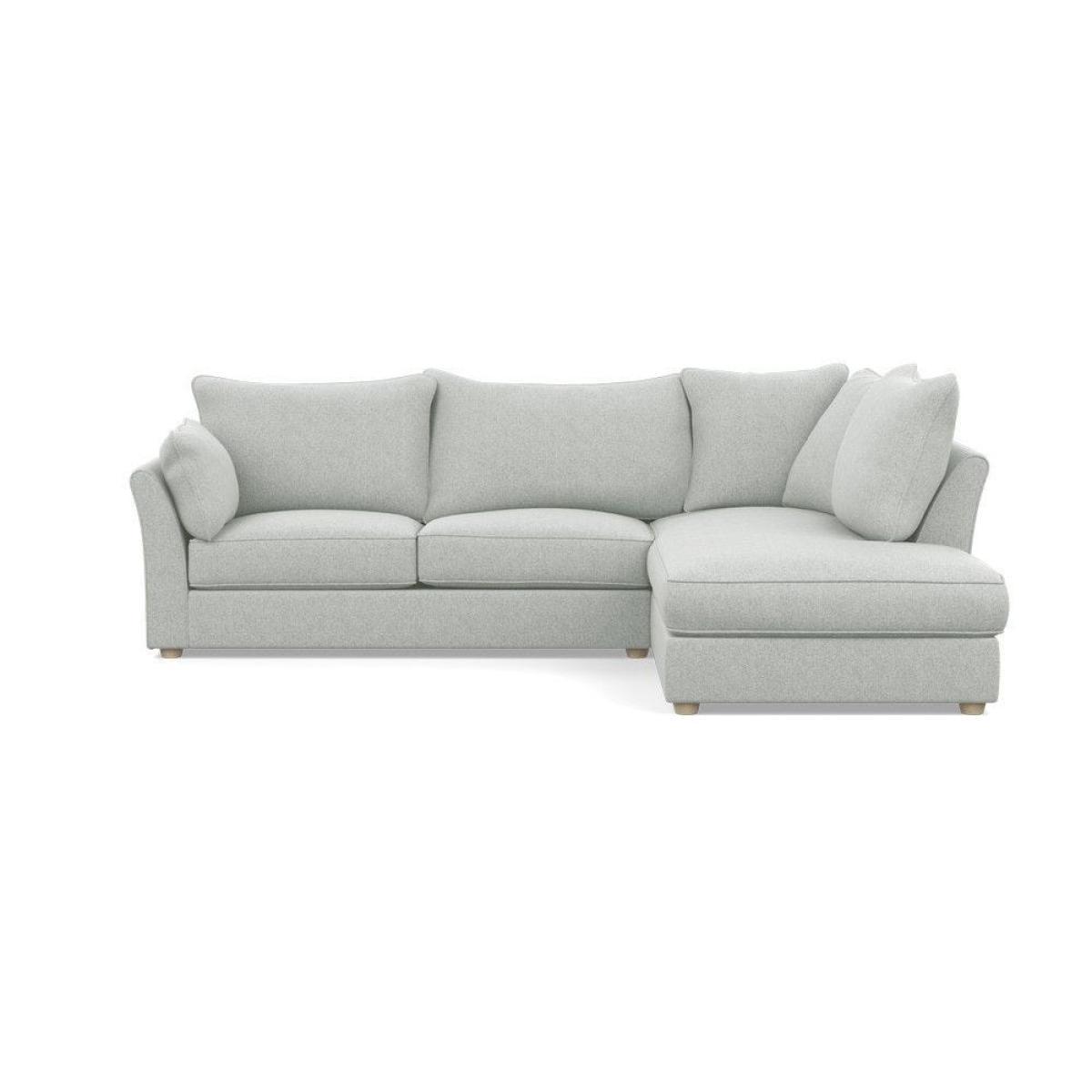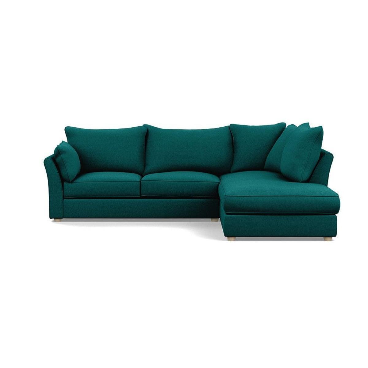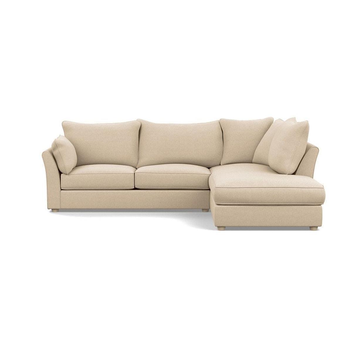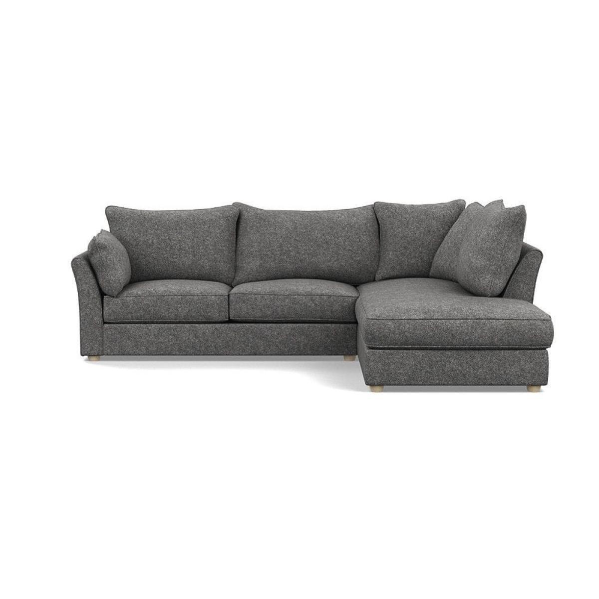 Melding classic British tailoring with modern form, the solid wood Tailor corner sofa contains a serpentine sprung base topped with feather filled back cushions and foam & fibre seat cushions. The long chaise is perfect to lounge and lie back on for that extra level of comfort, while the series of scatter cushions along the back rest allow for a personalised display. Alongside these practical features, such attention to detail is also demonstrated in the marvellous upholstery, with double-piping to the seat and back cushions as well as the front of each armrest.