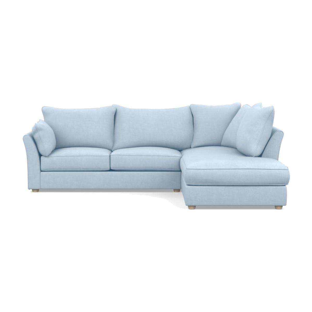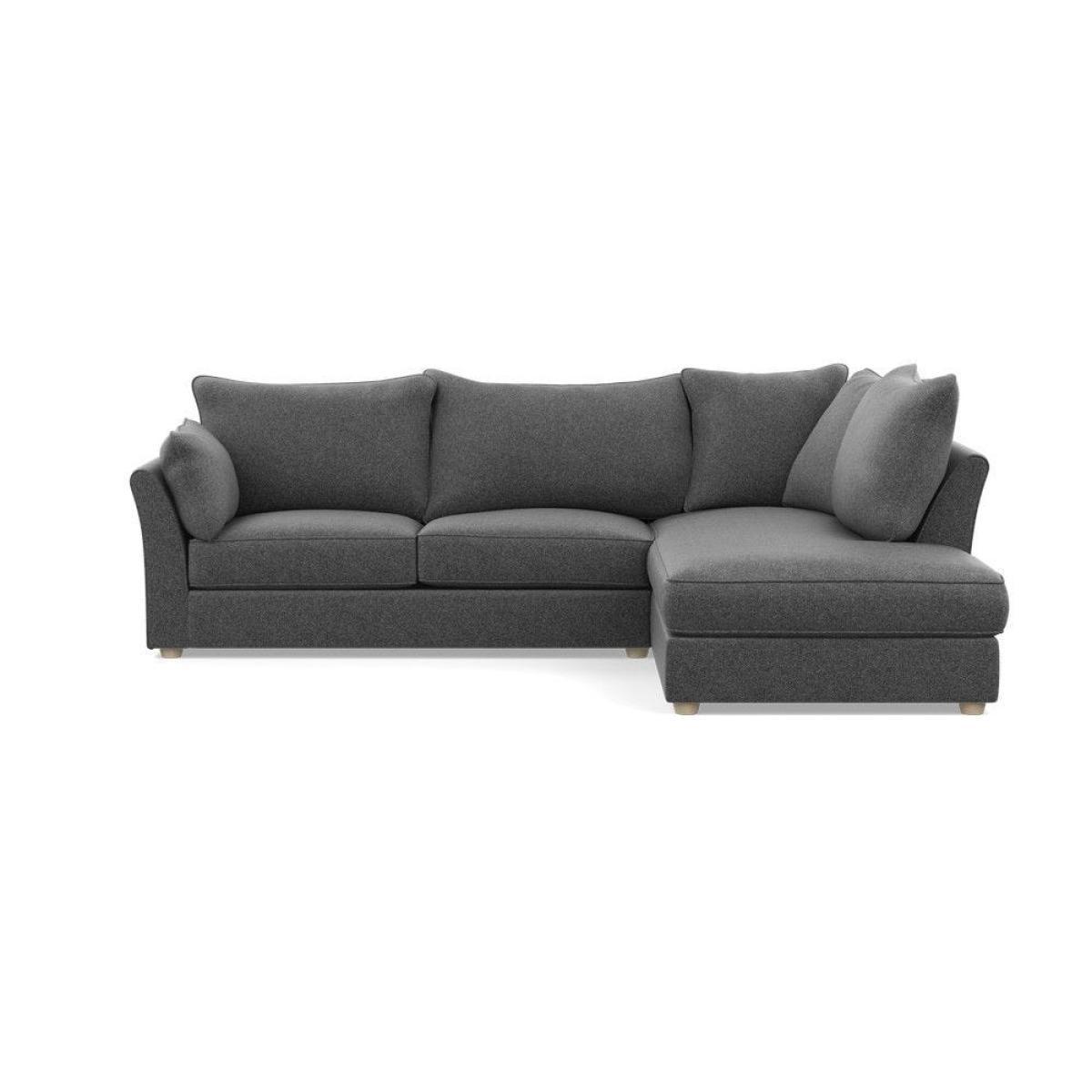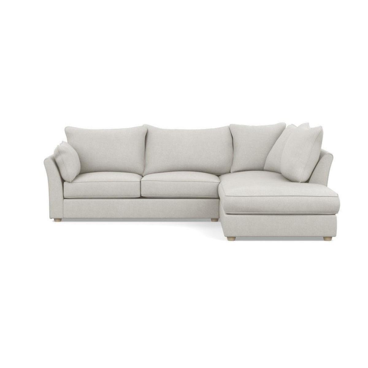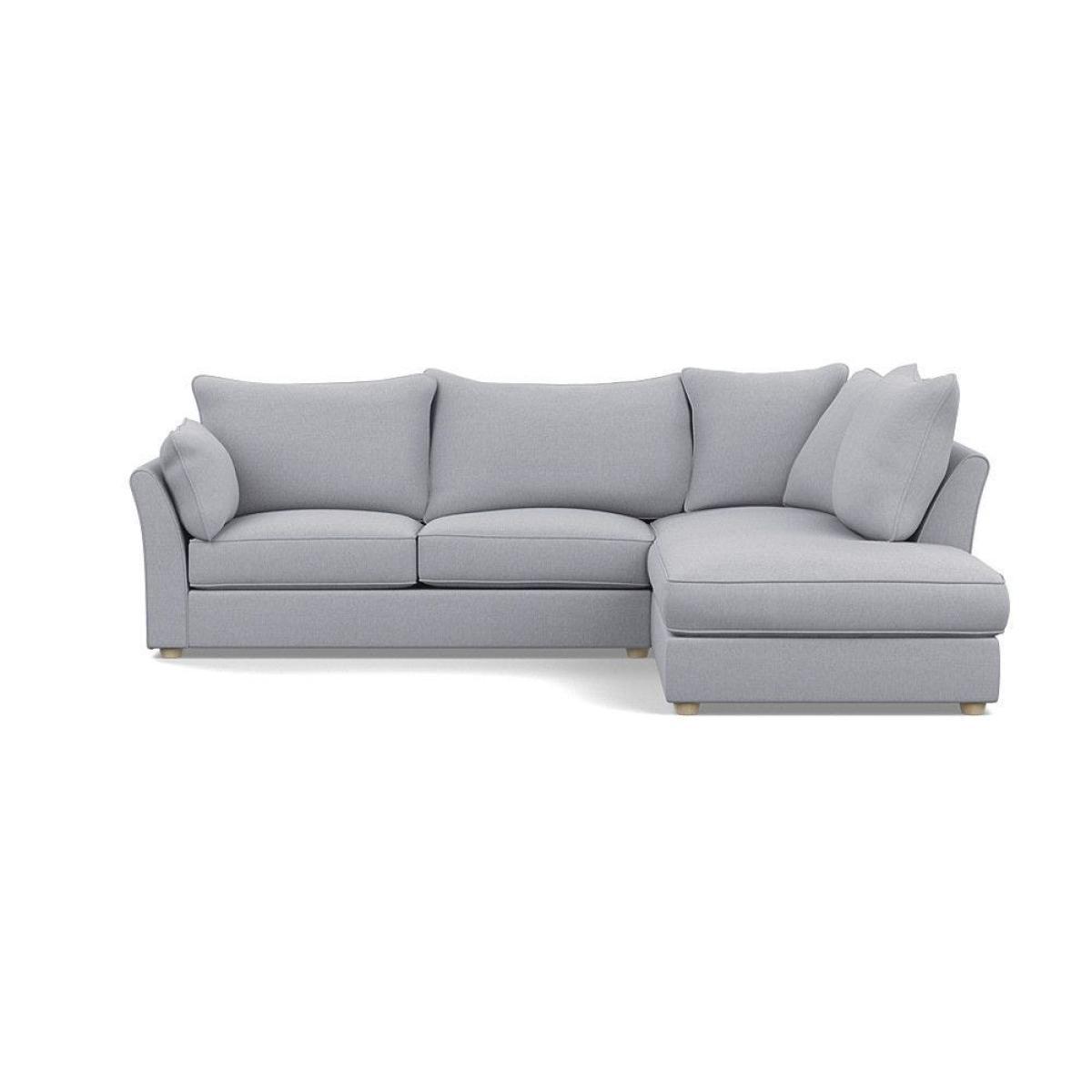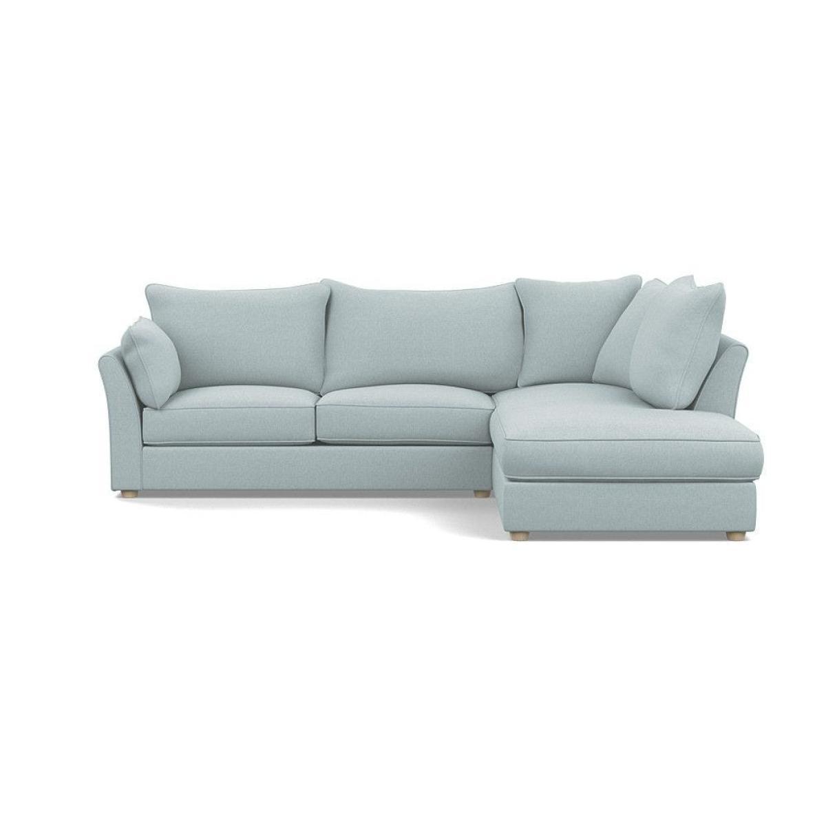 Melding classic British tailoring with modern form, the solid wood Tailor corner sofa contains a serpentine sprung base topped with feather filled back cushions and foam & fibre seat cushions. The long chaise is perfect to lounge and lie back on for that extra level of comfort, while the series of scatter cushions along the back rest allow for a personalised display. Alongside these practical features, such attention to detail is also demonstrated in the marvellous upholstery, with double-piping to the seat and back cushions as well as the front of each armrest.