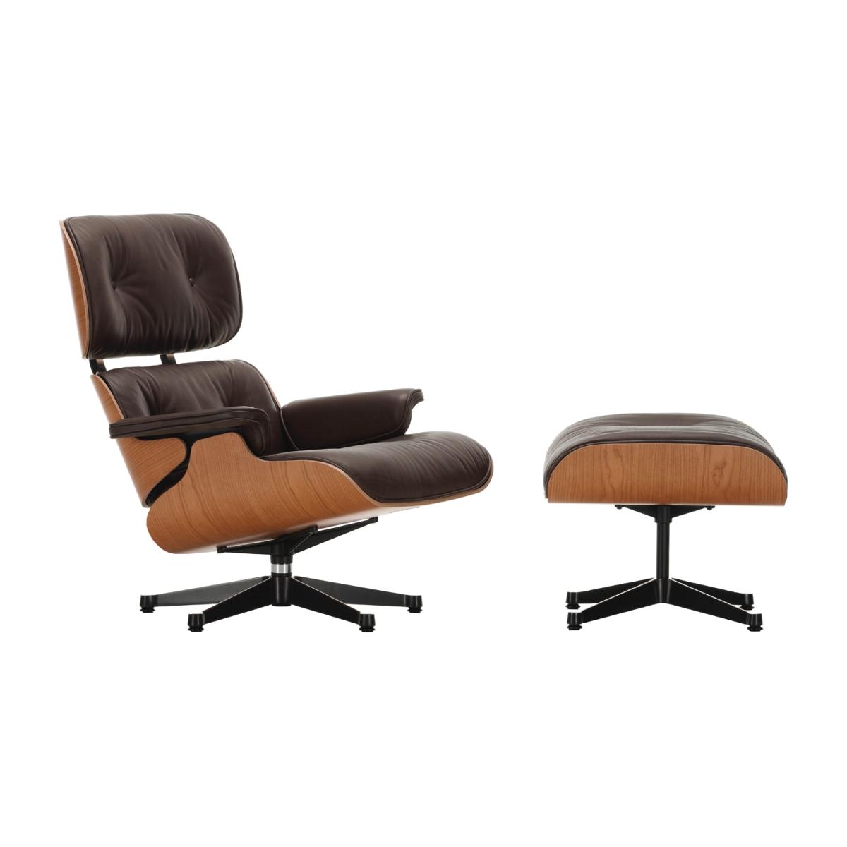 Heal's Tall Eames Lounge Chair & Ottoman in Cherry Wood & Chocolate Leather - Heal's UK Furniture