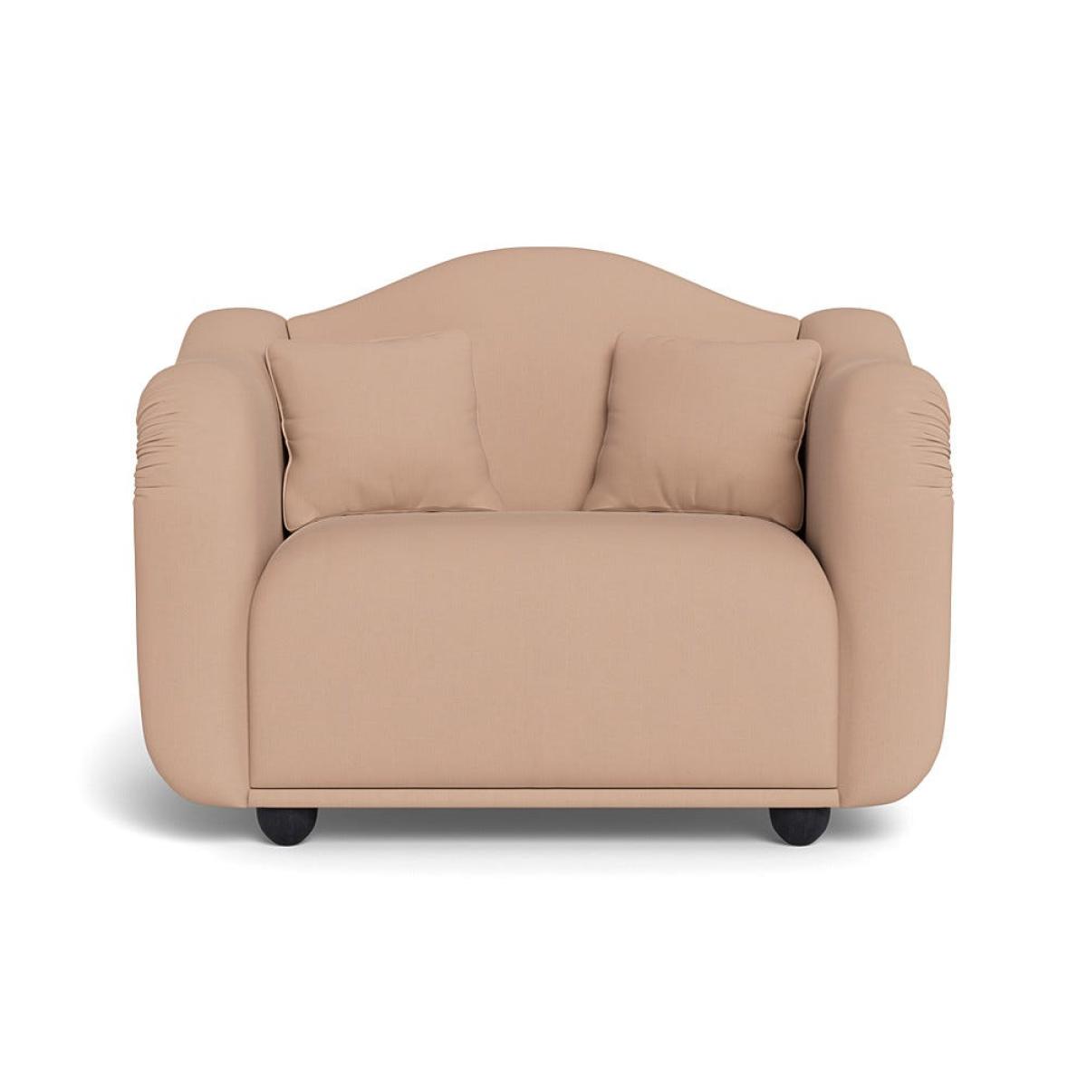 I love this little love seat for its versatile, modern look with a touch of softness. Its 100% linen-cotton blend offers a breathable, natural feel that adds warmth to a range of interiors. Perfect for cosy corners or compact living spaces, it works well in both contemporary and traditional settings - think minimal scandi or classic British country styles. For styling, consider pairing it with textured cushions or a soft throw to elevate its relaxed aesthetic. Its black feet create a subtle contrast, so it can be easily integrated into darker, richer colour palettes or kept light and airy with neutral tones. Practical tip: its size and build make it ideal for creating a laid-back seating area without overwhelming smaller rooms.