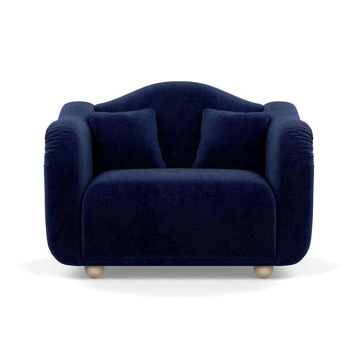 I love this loveseat for its plush luxe velvet finish and shaped silhouette, making it a statement piece while remaining versatile. Its rich midnight blue hue pairs beautifully with both contemporary and classic interiors, especially in schemes featuring muted tones or metallic accents. When styling, consider adding textured cushions in complementary colours or metallic geometric accessories to elevate its look. It works well in cozy corners, small living rooms, or as a stylish accessory within an open-plan space. Practical tips include pairing it with a low coffee table to create an inviting, conversational nook, and keeping the surrounding decor minimal to let the deep colour and sumptuous fabric take centre stage.