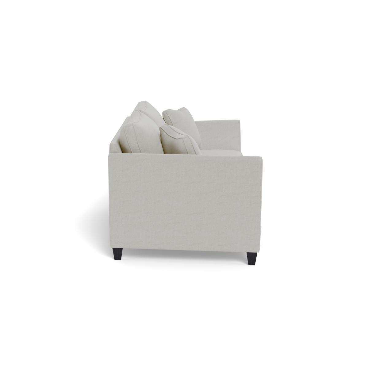 I love this sofa for its versatile and elegant design, making it a perfect anchor in both contemporary and classic interiors. The linen-cotton blend in sea salt gives it a relaxed, natural look that works well with neutral palettes or layered with colourful accessories for added visual interest. Its clean lines and comfortable seating make it ideal for both everyday family use and more formal settings. Practical styling tips include adding textured cushions or a cosy throw in contrasting colours or patterns to create a welcoming look. Pairing it with light wood or metal accents can enhance its understated sophistication, while the black feet add a subtle modern touch that grounds the piece nicely. Overall, this sofa offers a great balance of style and comfort for a range of interior styles.
