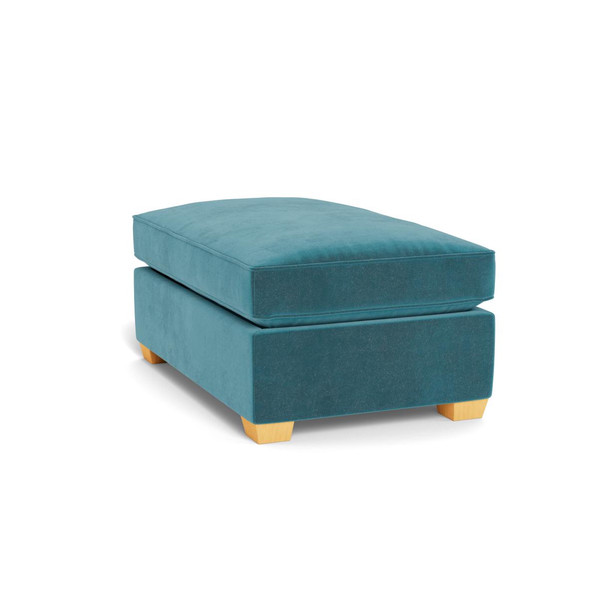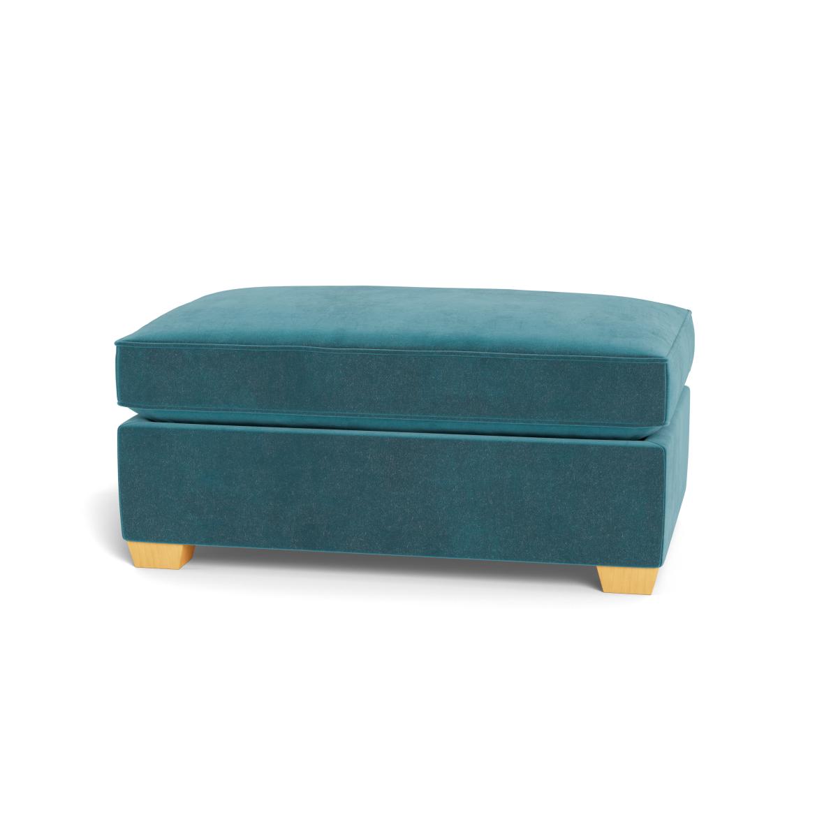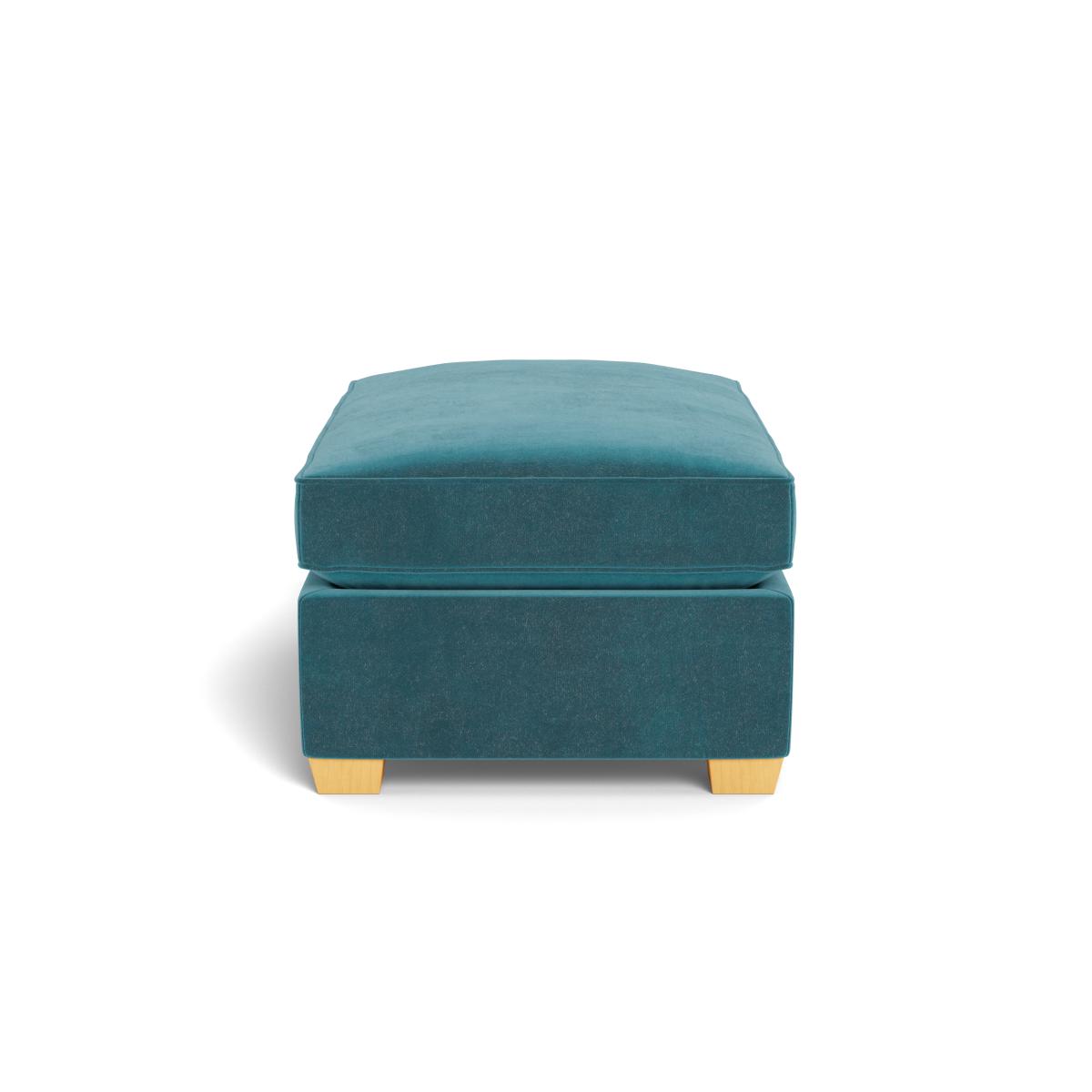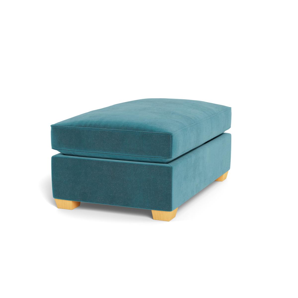 Heal's Torino Footstool Smart Luxe Velvet Airforce Blue Natural Ash Feet - Heal's UK Furniture