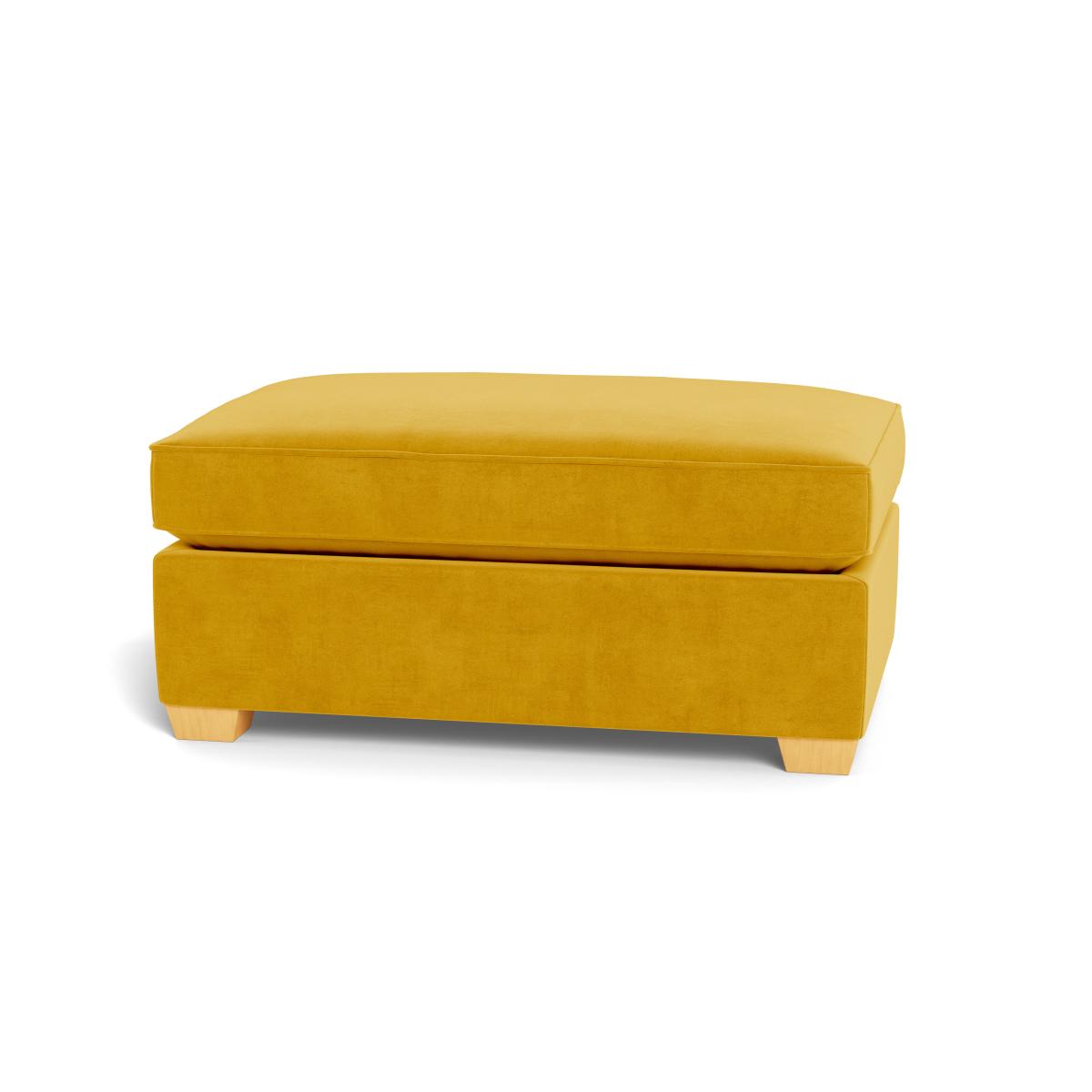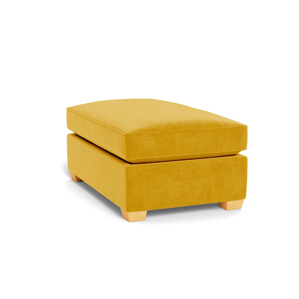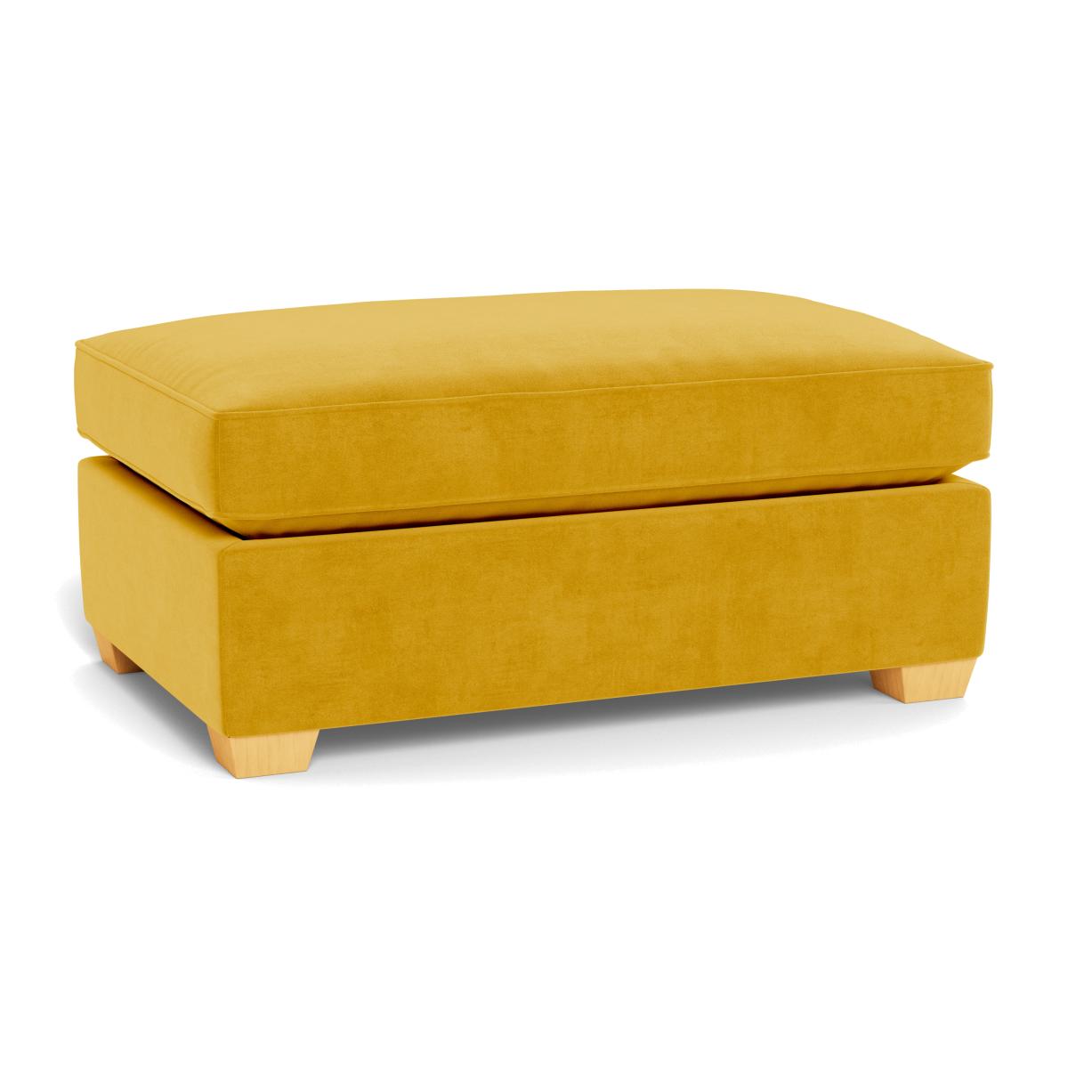 Heal's Torino Footstool Smart Luxe Velvet Canary Natural Ash Feet - Heal's UK Furniture