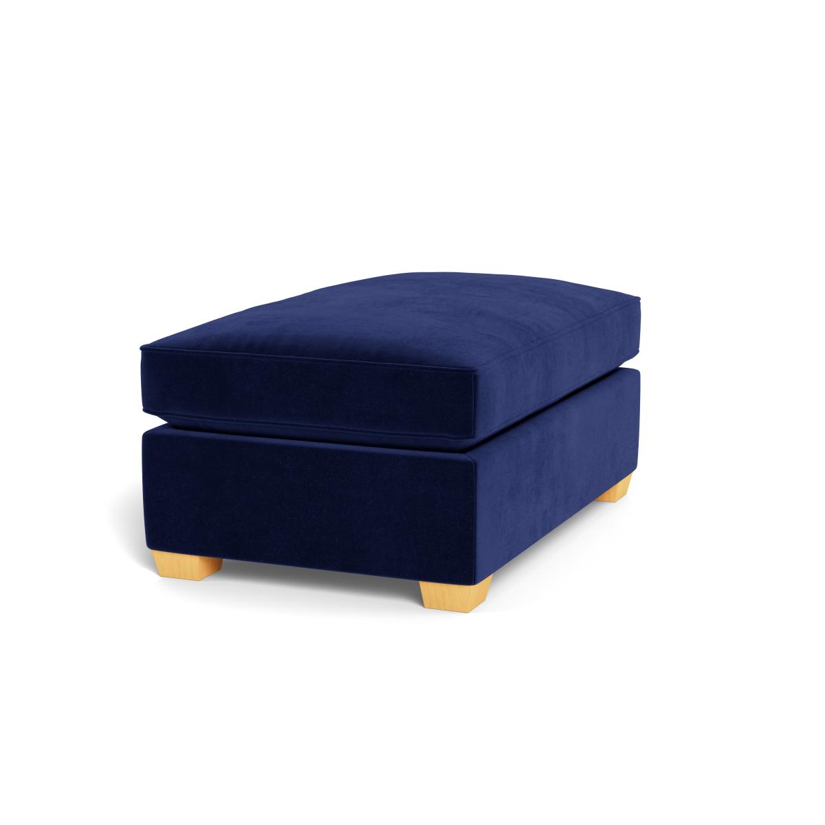 Heal's Torino Footstool Smart Luxe Velvet Midnight Natural Ash Feet - Heal's UK Furniture