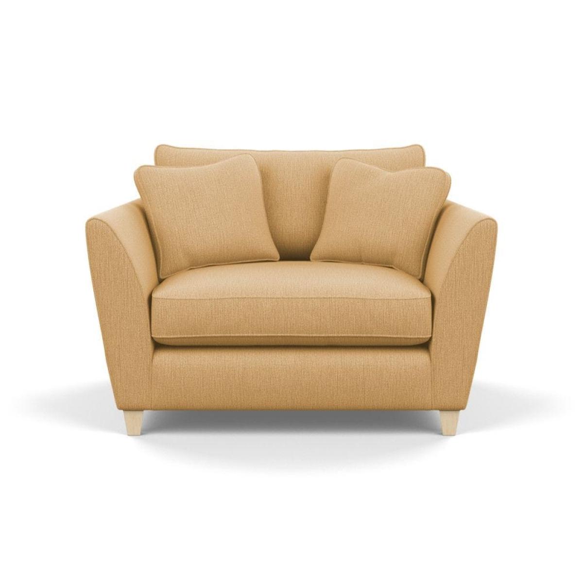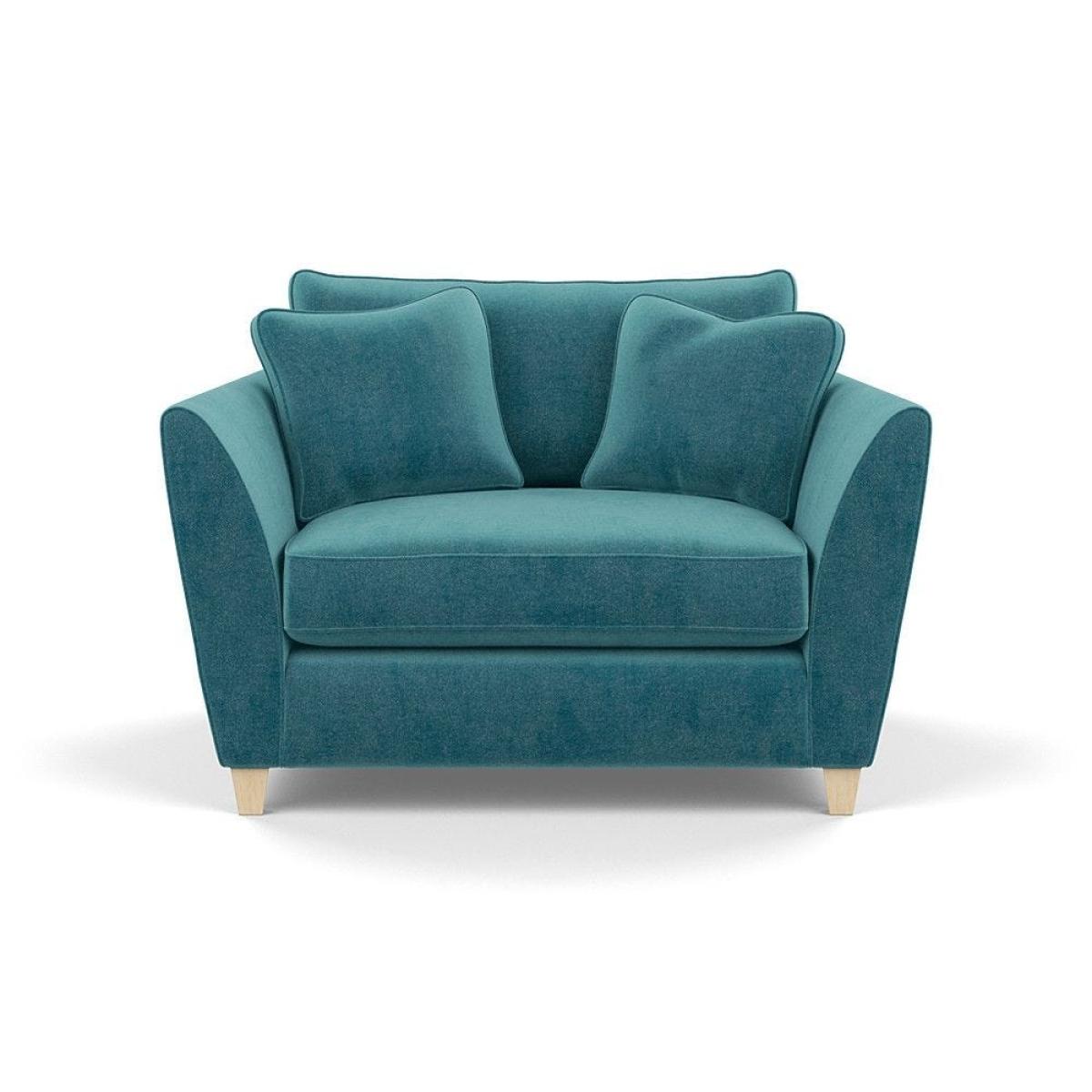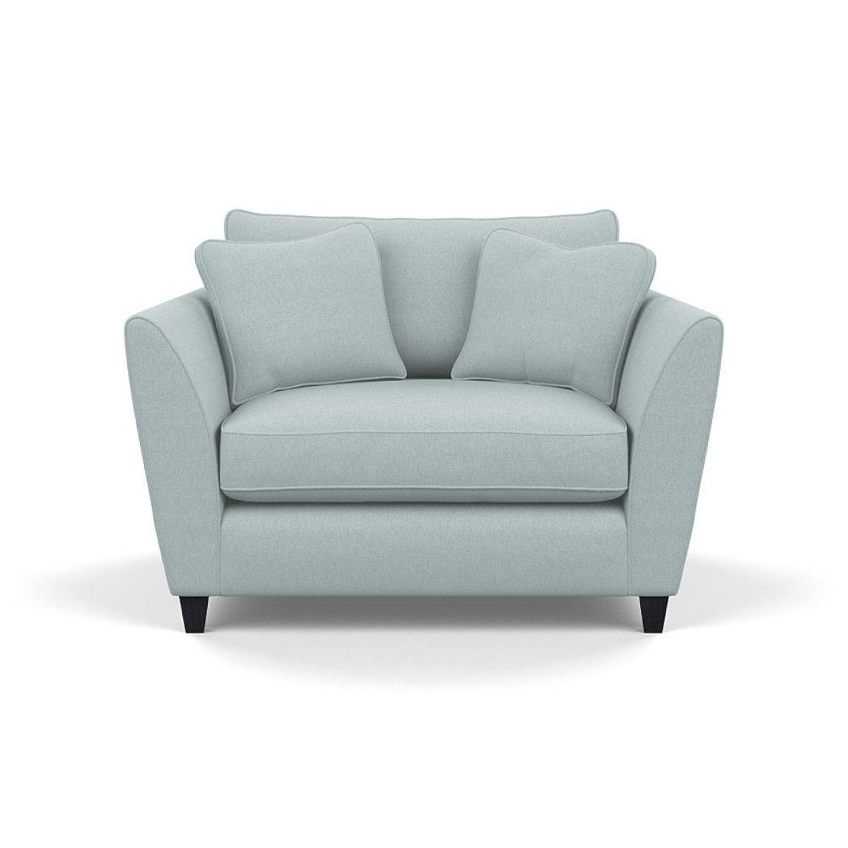 A plump and shapely design made here in the UK, the Torino exhibits the sort of masterful tailoring you'd expect from classic British craft. Featuring flared arms, a tall frame and tapered feet this timeless loveseat sets a solid contemporary frame against soft enveloping cushions to create a relaxing design for family homes.