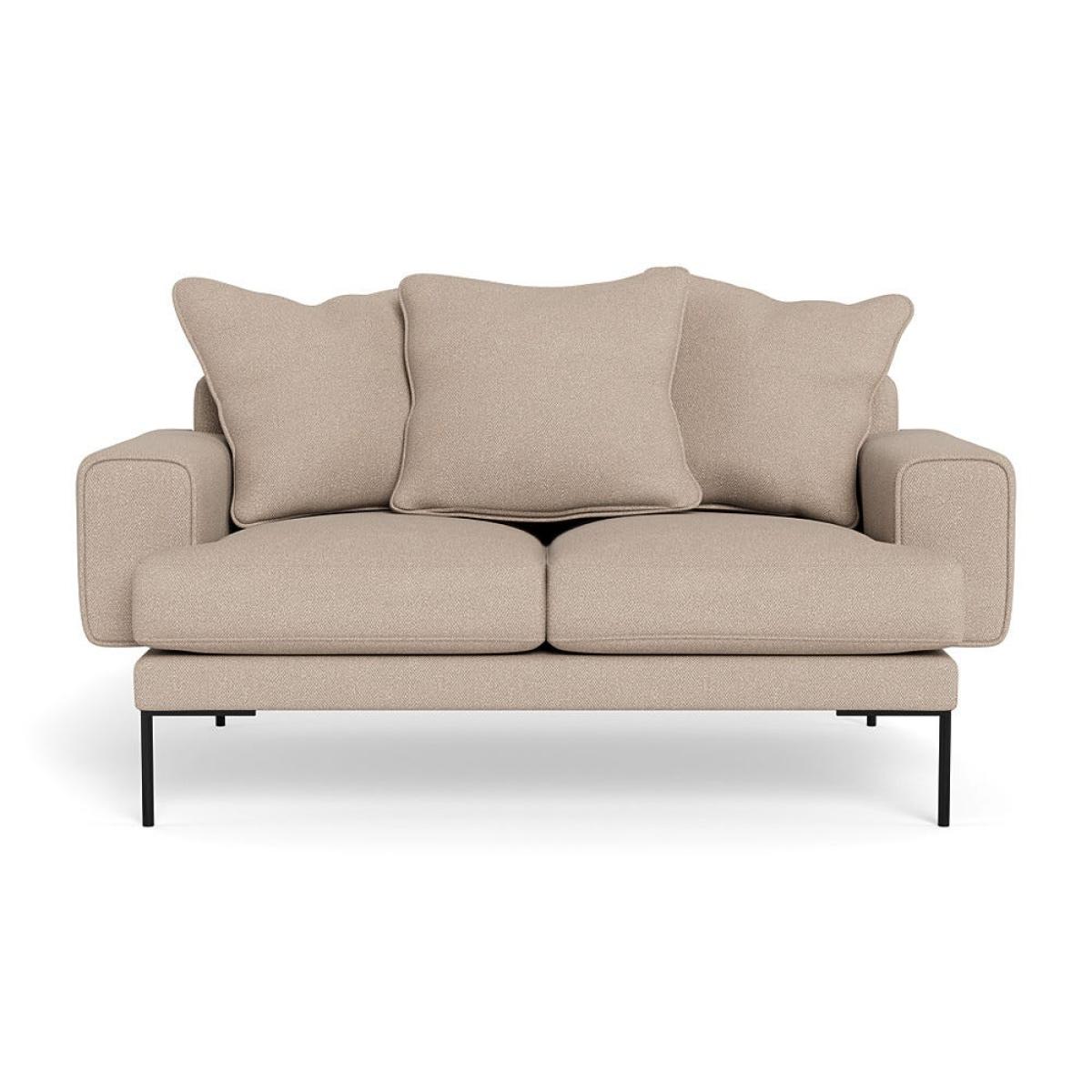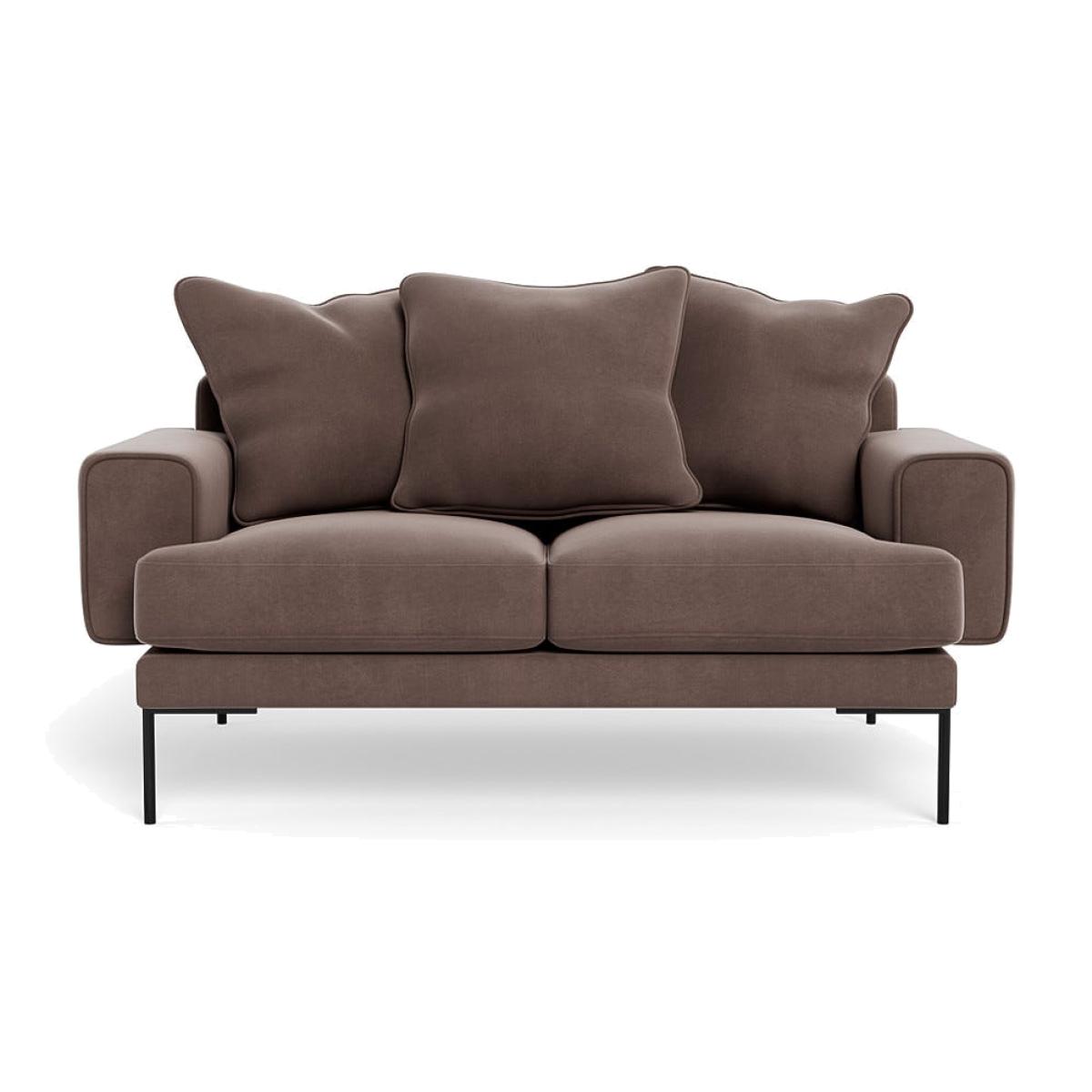 I’d simply call it the Torrington two-seater - its smart velvet in Mouse is a versatile neutral that brings subtle warmth without dominating the room. The slim black metal feet lift the design and make it ideal for modern, Scandinavian-inspired or even industrial-leaning interiors. For styling, pair it with a couple of textured cushions in a muted accent (think olive or terracotta) and drape a chunky knit throw over one arm. Anchor the setting with a mid-tone wool rug and a minimalist coffee table; a low vase of foliage or a few sculptural accessories will complement the sofa’s clean lines without cluttering the space.