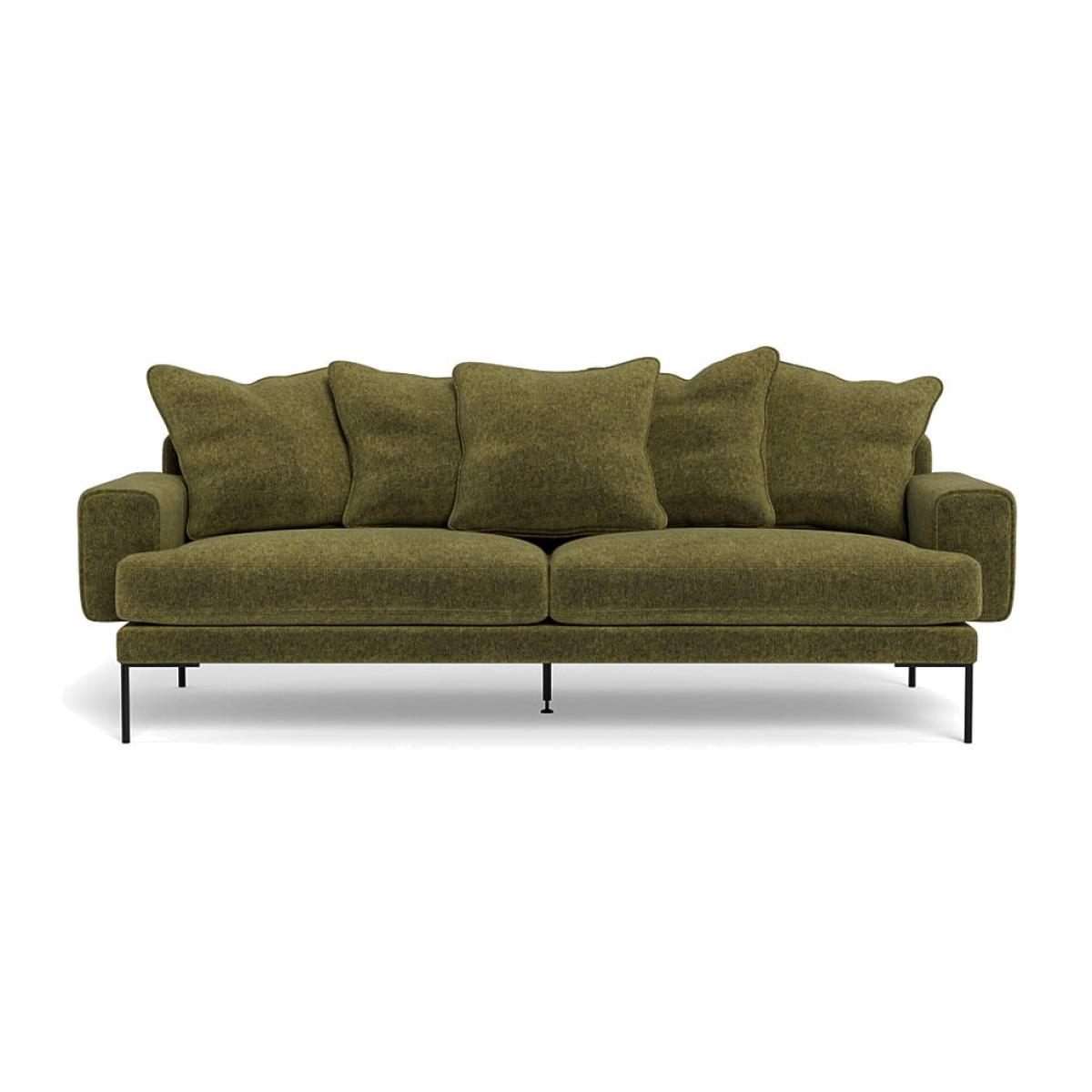 I’d call this simply the Torrington sofa - its bouclé velvet upholstery feels both tactile and refined, while the slim black legs keep the look light. I love how its generously deep seats and loose back cushions invite relaxed seating without appearing bulky. It suits modern Scandi schemes as well as pared-back contemporary or mid-century schemes, especially when paired with a natural-fibre rug and minimalist coffee table. For practical styling, add a mix of textured cushions in muted tones or soft greys, introduce a slim floor lamp to balance height, and layer in metallic or wooden accents - this helps anchor the sofa without overwhelming its clean lines.