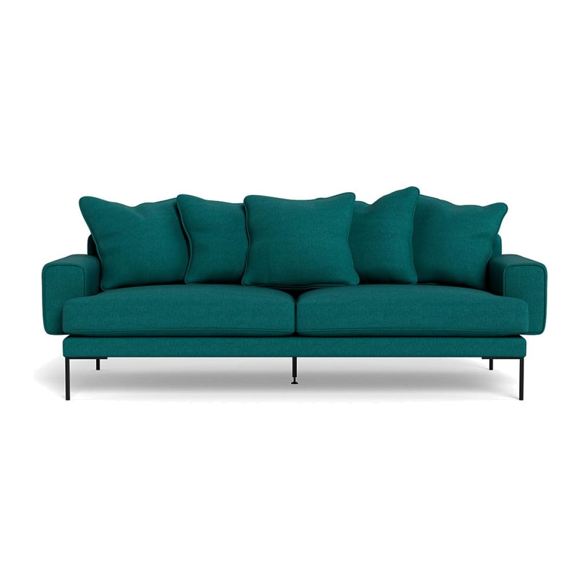 I’m a fan of the Torrington four-seater for its clean, streamlined profile and sturdy pine frame upholstered in hard-wearing brushed cotton. The slim black legs lift the sofa visually, making it ideal for both minimalist and mid-century schemes, while its generous depth and removable cushions ensure lasting comfort. Pair it with a natural-fibre rug and a low, solid-wood coffee table to balance the industrial edge of the legs. Keep the palette simple - soft greys or ivory throws and cushions in muted terracotta or petrol blue add interest without overwhelming the design. A floor lamp with a slim black base will tie the look together and keep your living area feeling open yet inviting.