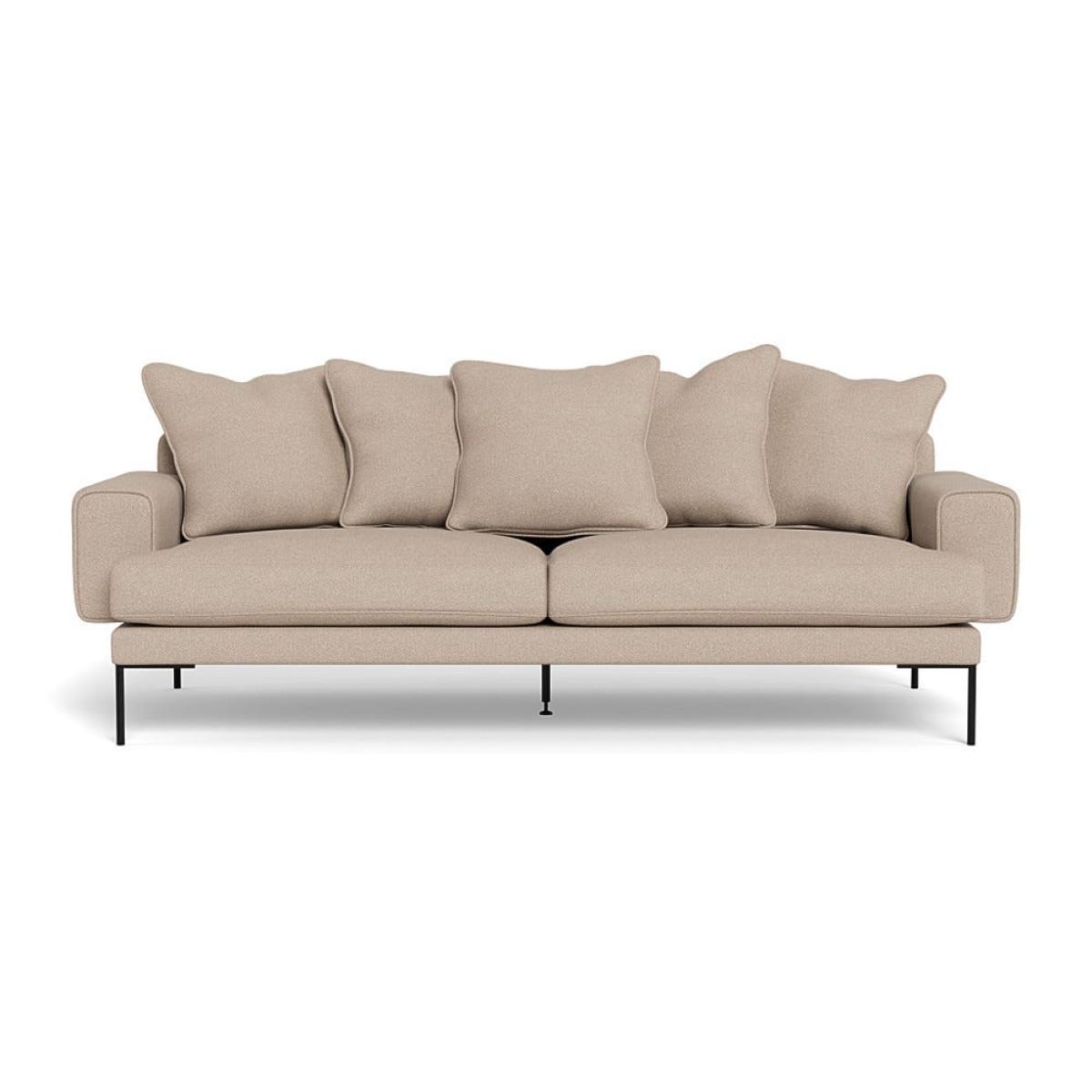 With its clean lines, the Torrington sofa designed by Heal’s, is an elegant piece that is both classic and contemporary yet offers plenty of comfort. Sat on sleek black metal legs, Torrington’s slimline frame offers ergonomic comfort with a lightweight feel. The generous seat cushions are made with foam topped with 100% duck feathers. Both featuring stylish piping detail, the wide cushioned arms and generous feather filled scatter cushions offers the perfect spot to lounge in. Beautifully crafted the UK and available in the full range of Heal’s fabrics.