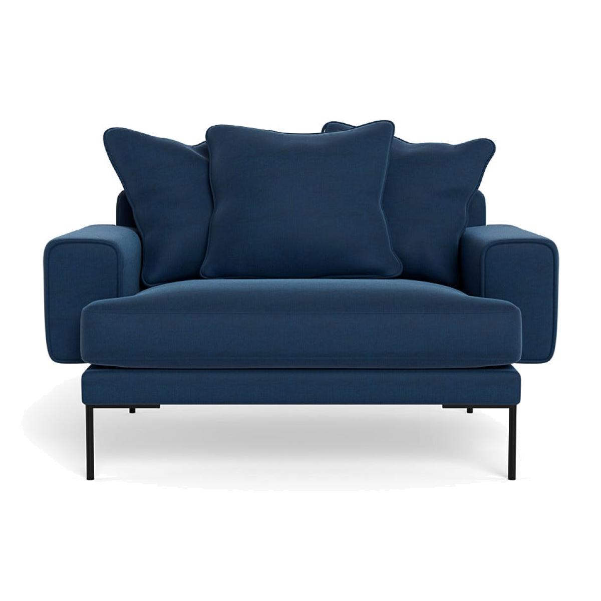 I love this loveseat for its sleek, contemporary look combined with a good dose of comfort. The linen-cotton mix fabric in inkspot black makes it versatile enough to complement both modern and classic interiors, particularly in schemes that favour neutral tones with a touch of colour. It works well in cosy living rooms, lounge areas, or even in a stylish home office where a relaxed yet sophisticated vibe is desired. Practical styling tips include adding textured cushions in contrasting fabrics or colours to soften its sharp lines, or pairing it with statement side tables and a bold rug to anchor the space. The black feet keep it grounded and modern, making it a smart choice for those wanting a chic, adaptable piece that withstands everyday use.