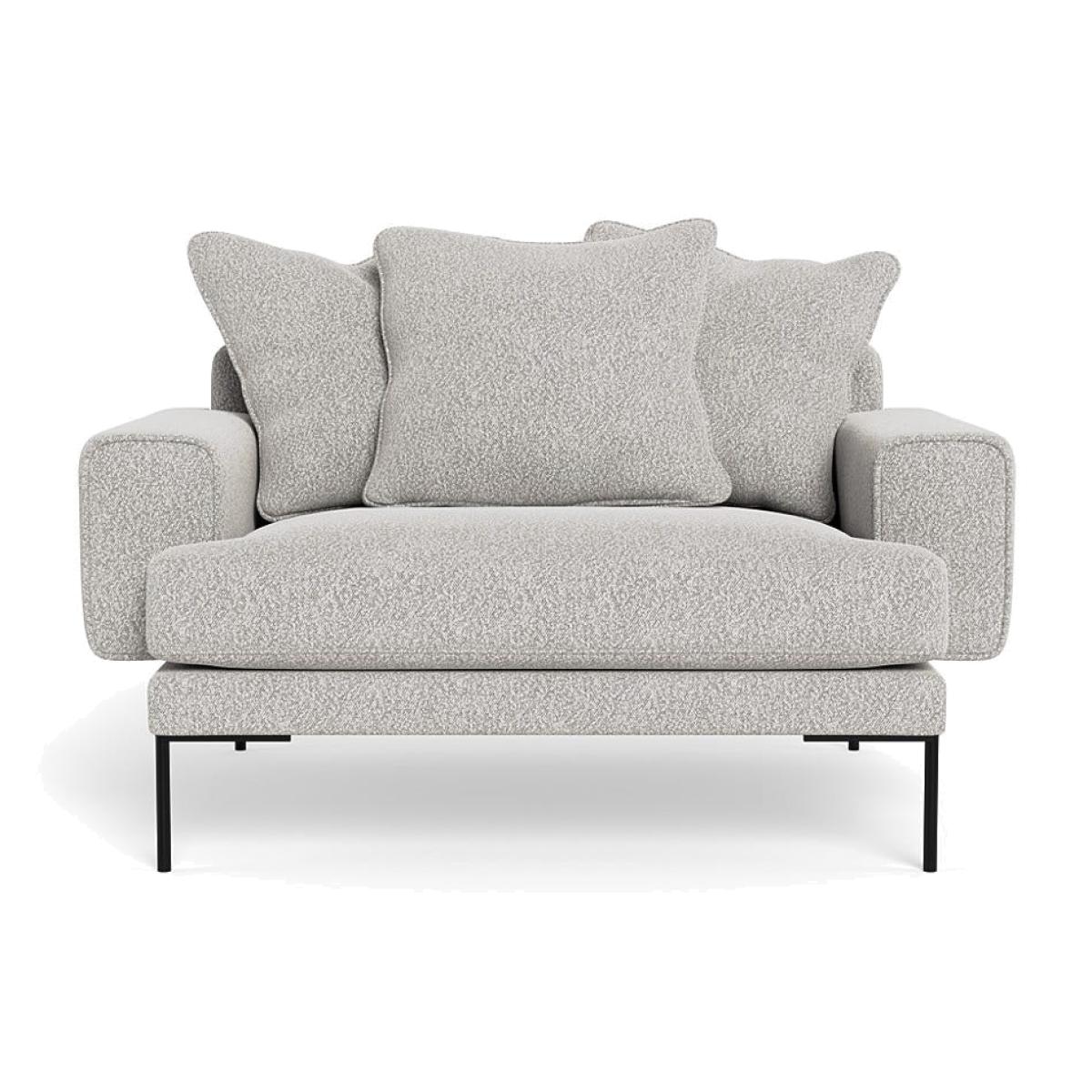 I love this chunky boucle loveseat for its cosy, inviting texture and versatile neutral tone, making it a great anchor piece in both modern and classic interiors. It works particularly well in pared-back, contemporary spaces, adding warmth without overwhelming the surroundings. To style it effectively, consider pairing with tactile cushions and layered throws in contrasting textures or colours to create visual interest. Its sleek black feet lend a subtle Scandinavian feel, so it can be easily integrated into minimalist or mid-century schemes. Practical styling tips include using a neutral or pastel palette for accessories to keep the look fresh and light, and placing it near a window or under good lighting to showcase the textured boucle fabric to its full advantage.