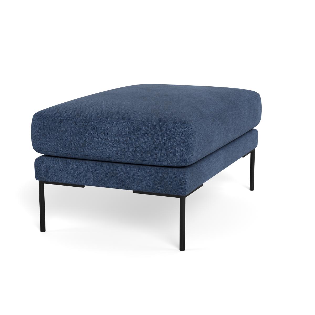 I love this footstool for its sleek, modern silhouette and versatile design. The broad weave lagoon fabric adds a pop of colour without overwhelming a space, making it perfect for contemporary or minimalist interiors. Its black feet give it a grounded, understated look that can complement both monochrome schemes and more vibrant palettes. Practical styling tips include pairing it with a neutral sofa to add colour, or using it as a statement piece in a relaxed lounge or bedroom. It also works well as extra seating in a game room or corner of a living space, and its clean lines make it easy to style with throws or trays for a cosy yet polished look.