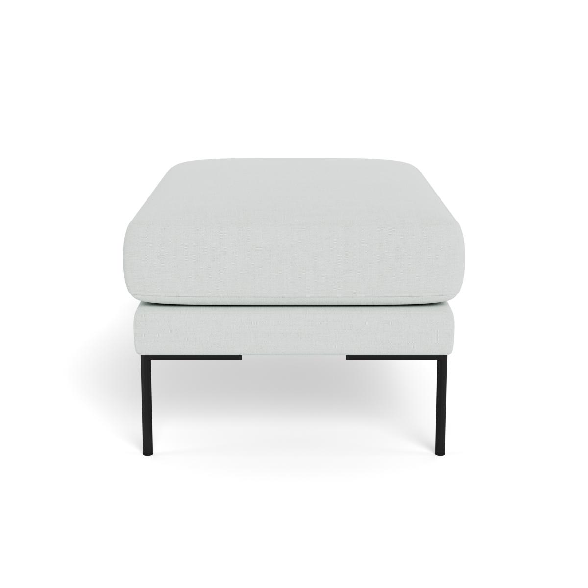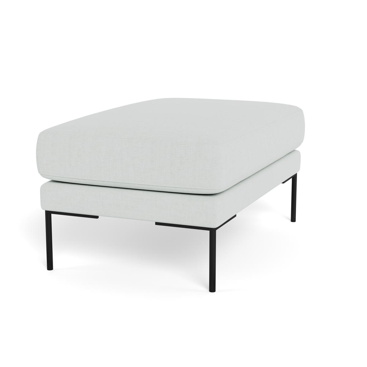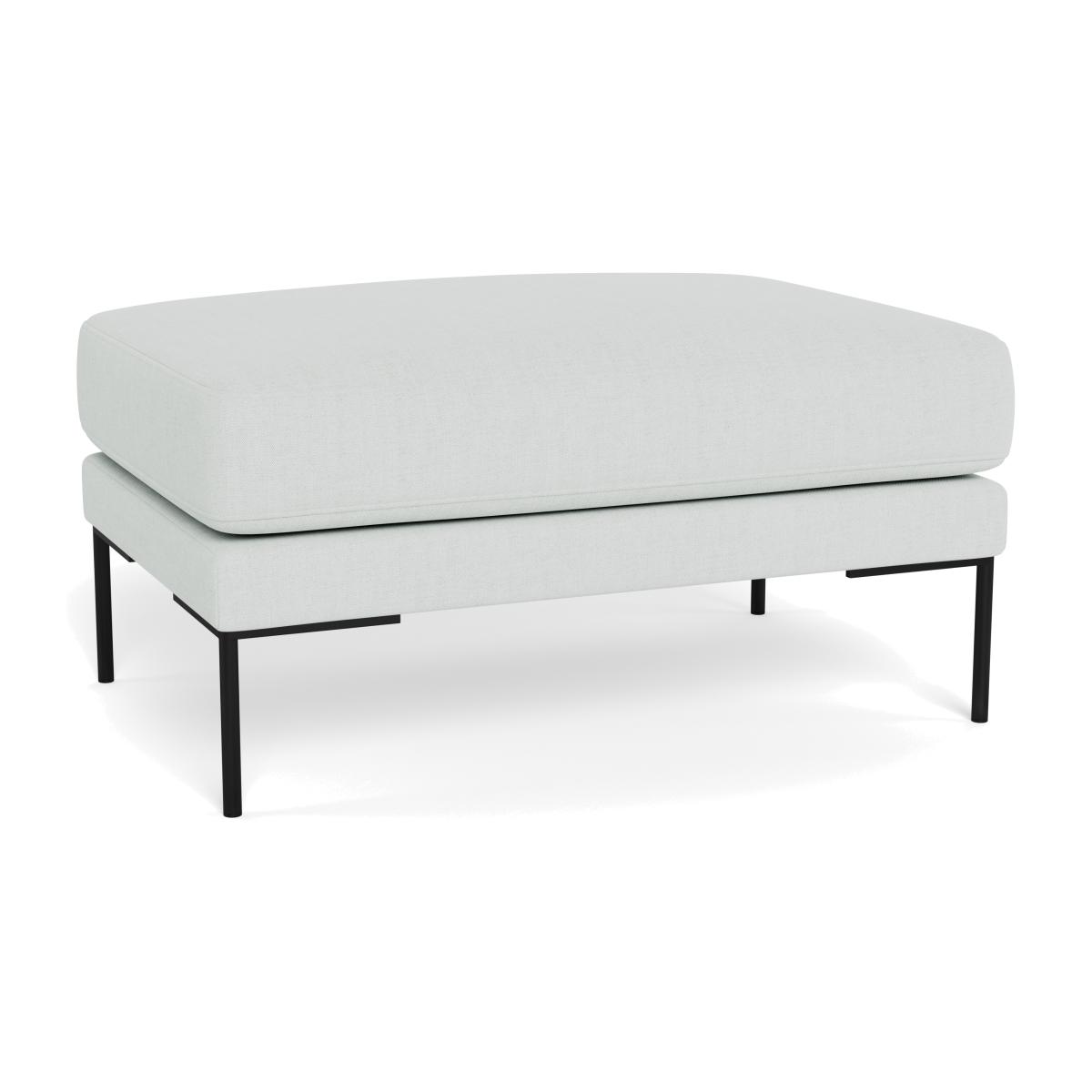 I love this ottoman for its clean, modern look combined with a subtle touch of texture from the broad weave fabric. It’s versatile enough to fit into contemporary, Scandinavian, or even more transitional interiors, especially when paired with minimalistic furniture or statement pieces. The black metal feet add a sleek contrast, making it a practical choice for both living rooms and bedrooms. Styling tips include placing it in front of a sofa as extra seating or using it as a footrest to add comfort and visual interest. Layering with a textured or patterned tray on top can also make it work effectively as a handy surface for coffee table accessories or a display area.