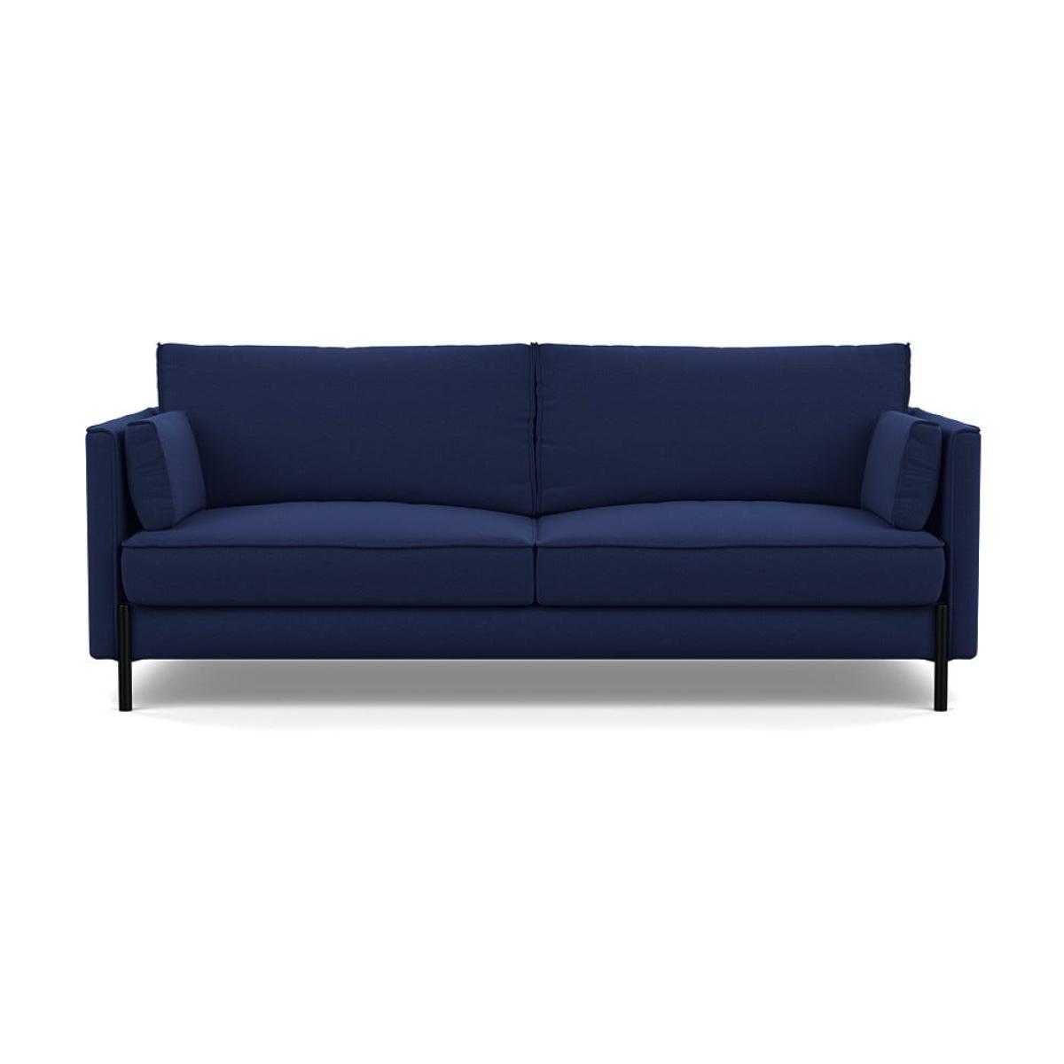 I love this sofa for its versatile, timeless appeal and the rich navy hue that adds colour without overwhelming a space. It's ideal for contemporary or minimalist interiors, but can also work well in more eclectic or classic settings, offering a sophisticated yet approachable feel. When styling around it, consider adding textured cushions or throws in complementary colours to soften the look and create visual interest. Since it's a neutral shade of blue, pairing it with warm woods or metallic accents can help balance the cool tone. Practical tips include keeping the surrounding decor simple to let the sofa be a statement piece, while sparing some space for cosy accessories like a plush rug or a side table to keep the look functional yet inviting.