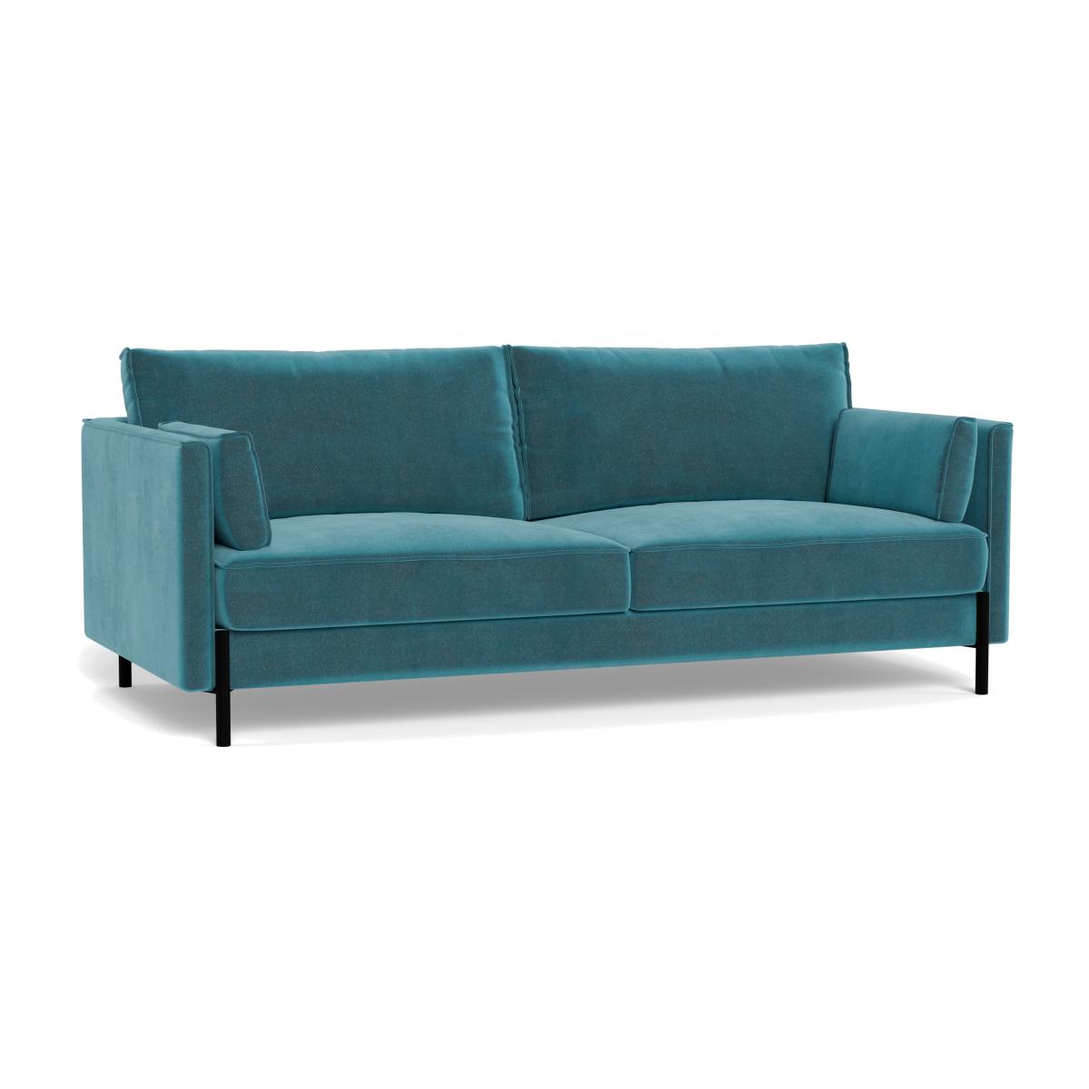 I love this sofa for its striking Airforce Blue hue, which adds a modern and sophisticated touch to any living space. The velvet finish gives it a luxe feel, making it perfect for contemporary or eclectic interiors that embrace bold colour. It's versatile enough to work well in both minimalist spaces when styled with neutral accessories, or in more vibrant rooms with layered textures and metallic accents. Practical styling tips include pairing it with neutral or patterned cushions to tone down or enhance the statement colour, and placing it against a contrasting wall for added impact. Its sleek silhouette also lends itself well to a variety of room sizes, making it a flexible choice for both large open-plan spaces and smaller, cosy rooms.