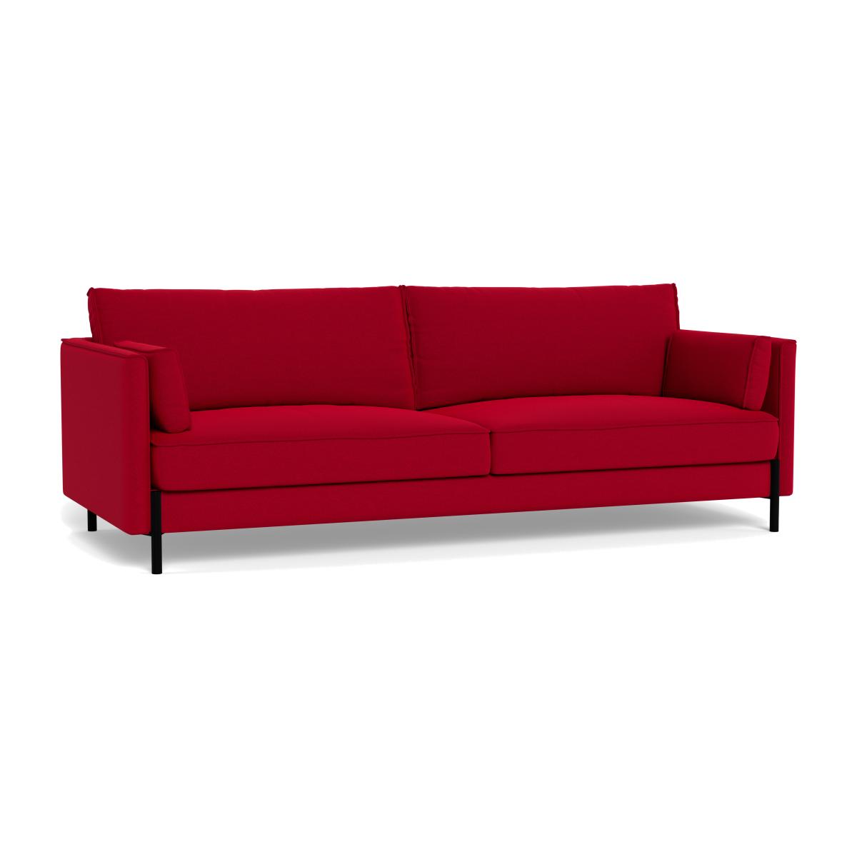 I really like this sofa because the vibrant Oxide red Melton wool instantly adds warmth and personality to a space. It's versatile enough to work well in both contemporary and classic interiors, especially those with muted palettes where it can serve as a bold focal point. When styling around it, consider pairing with neutral or textured accessories like linen throws or wooden accents to balance the colour. Practical tips include adding cushions in contrasting shades or patterns for extra comfort and visual interest, making it ideal for a family lounge or a stylish sitting room in need of a statement piece. Its clean lines and slightly structured silhouette also lend well to both formal and relaxed settings.