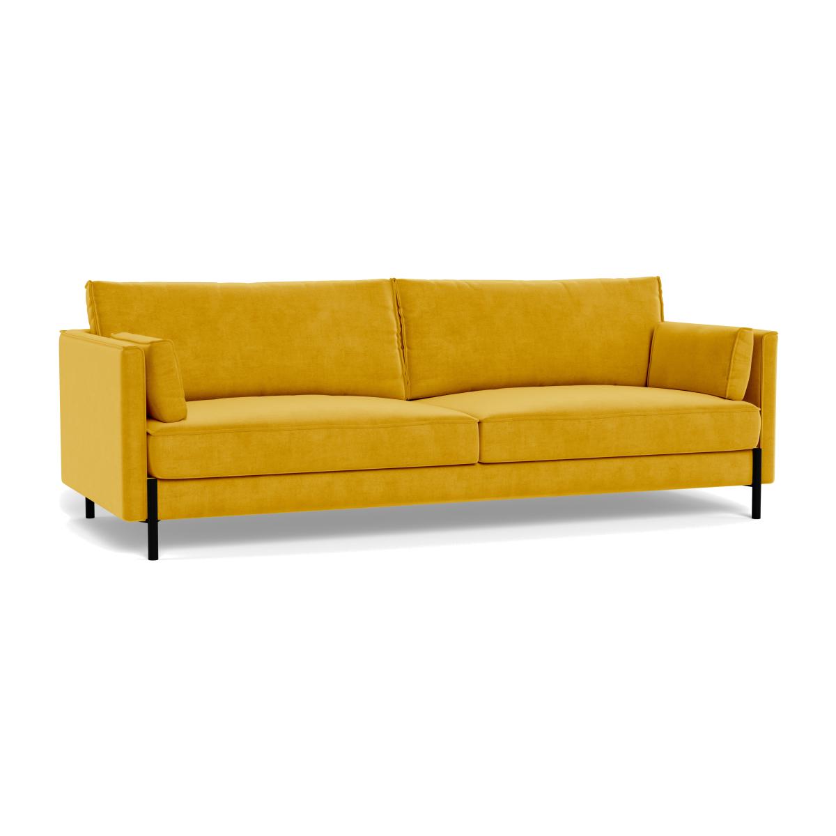 I love the Tortona 4-seater in the Canary velvet for its bold colour and sleek silhouette, making it a statement piece in any living space. It works particularly well in modern or eclectic interiors, where its vibrant hue can serve as a focal point. To style it effectively, consider pairing with neutral accessories and textured textiles-think soft throws or patterned cushions-to create a balanced look. Its slim, black metal legs add a contemporary touch, so it pairs nicely with metallic accents or minimalistic furniture. This sofa is not only stylish but also versatile enough to elevate a variety of interiors, from sophisticated city apartments to colourful open-plan spaces.