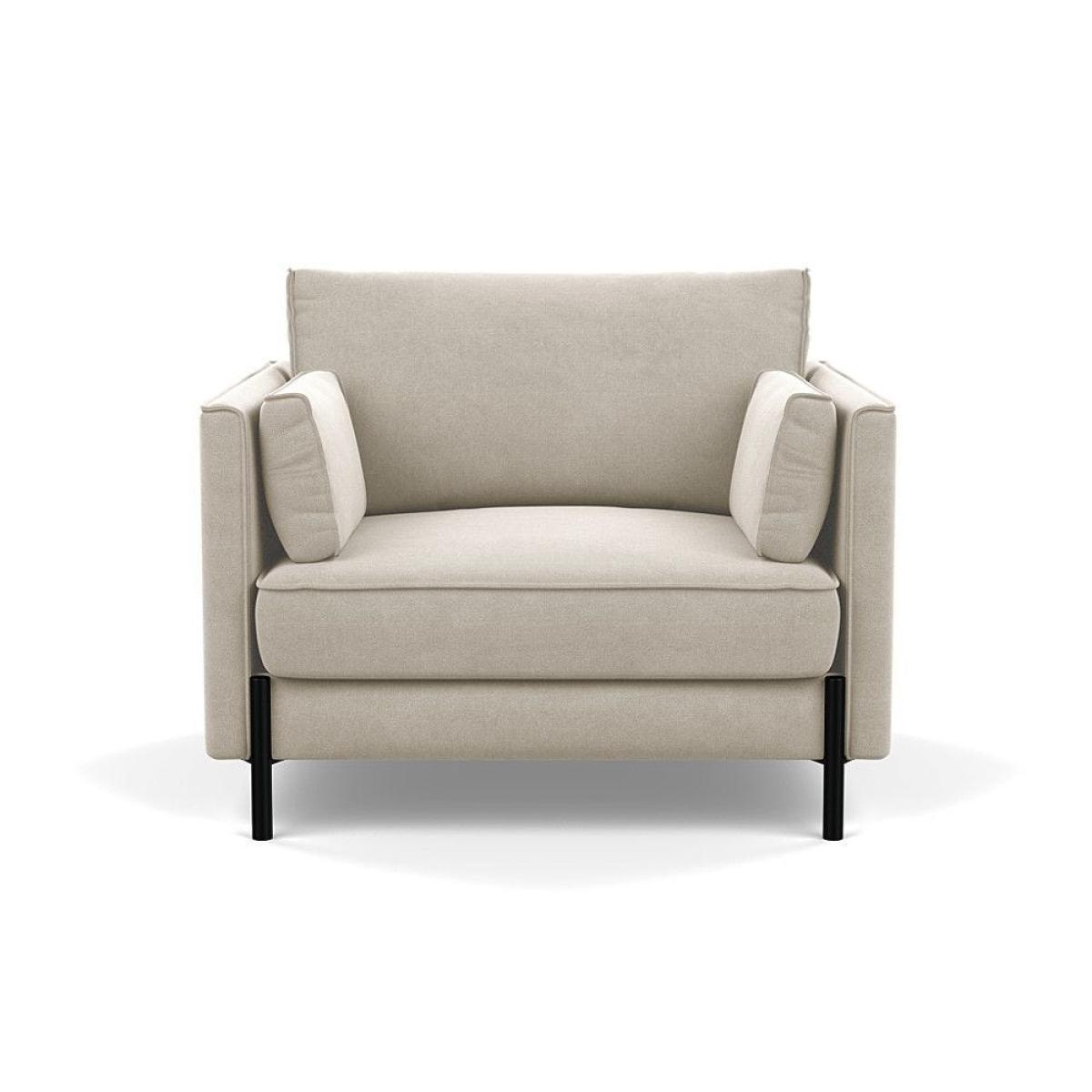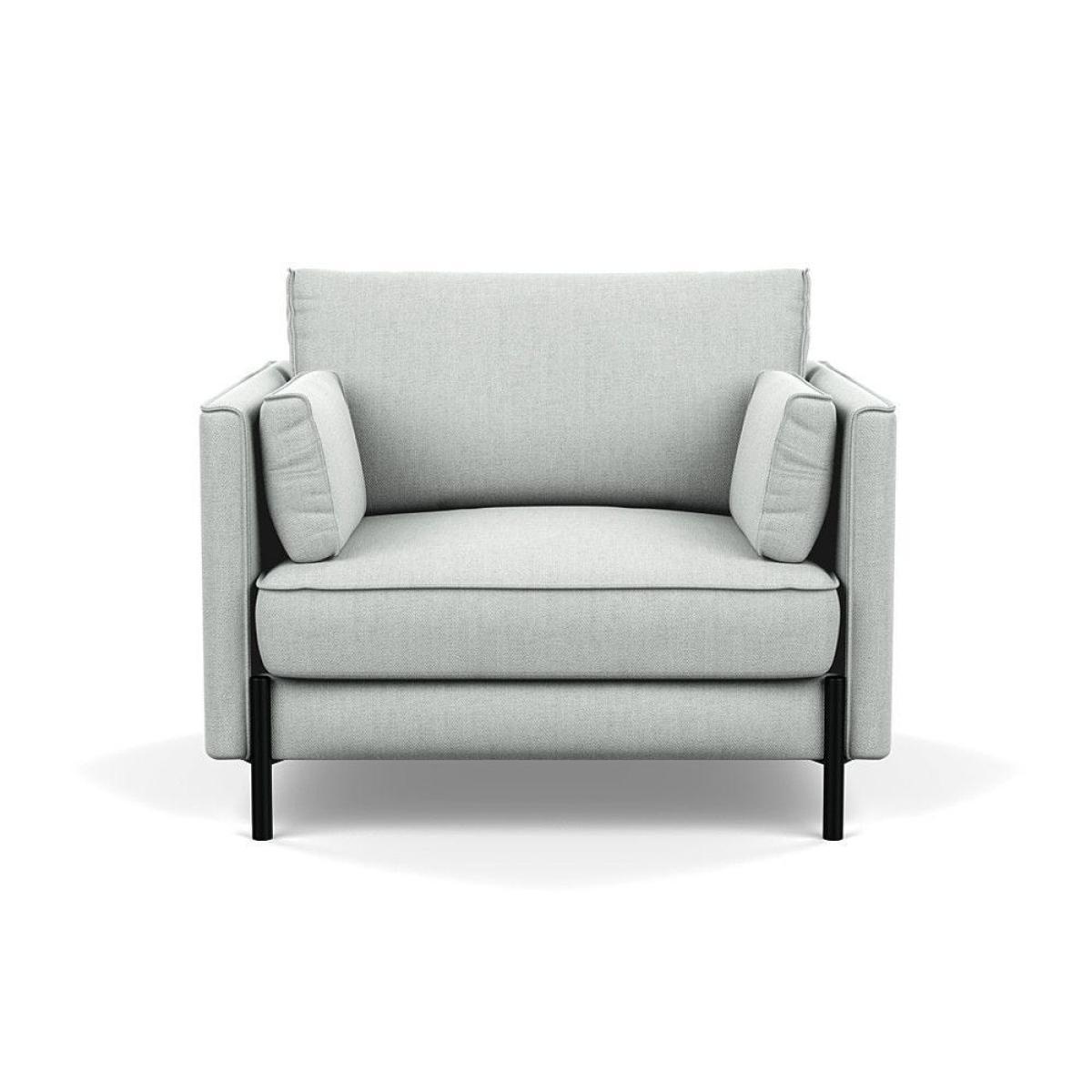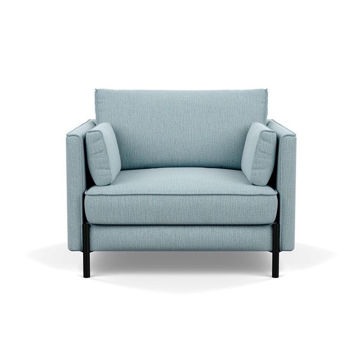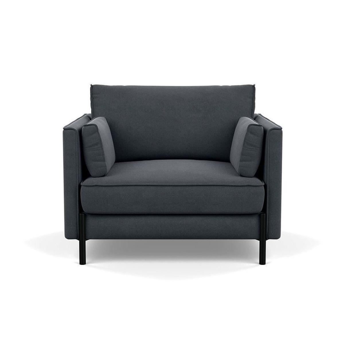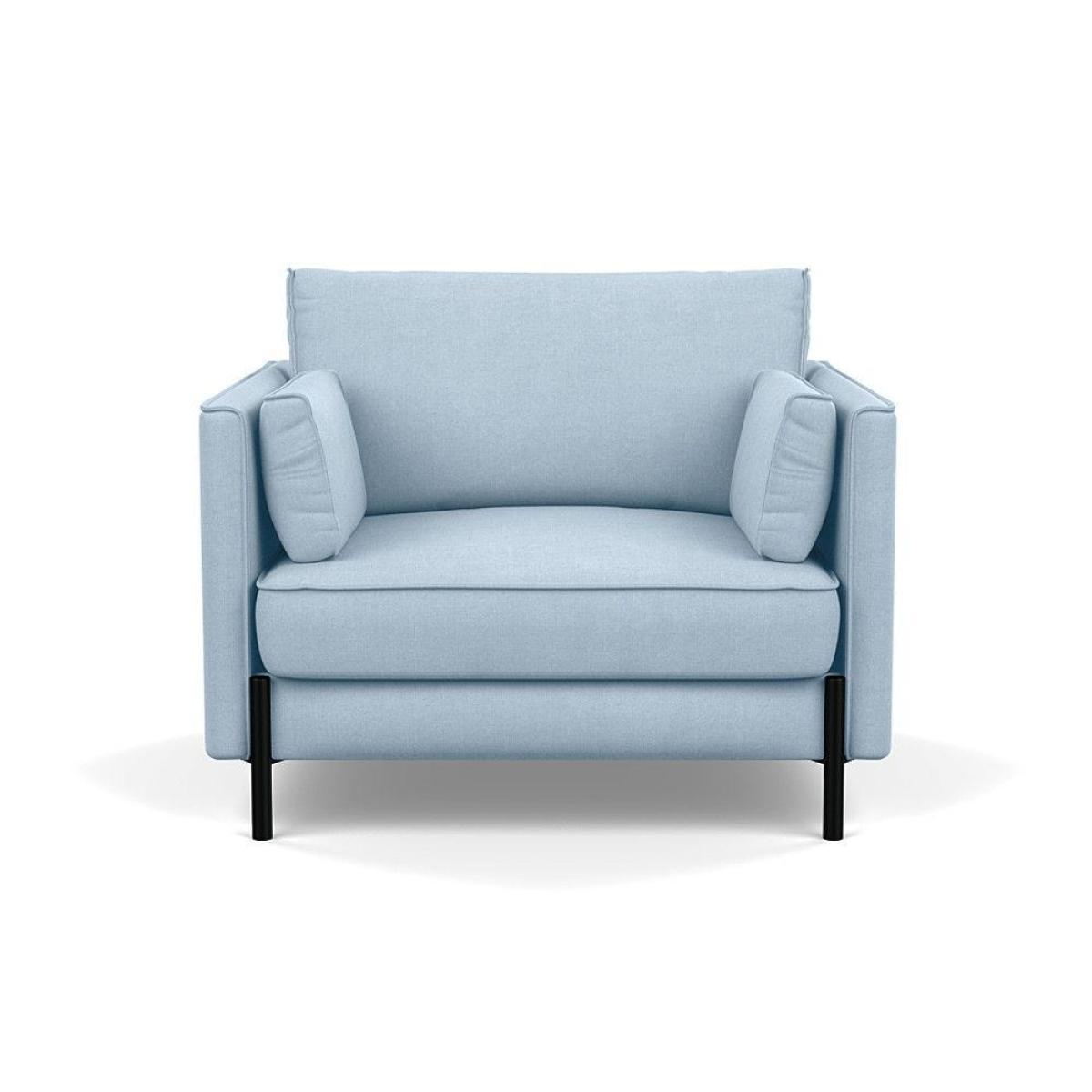 Designed by Danish duo Says Who exclusively for Heal's, the Tortona Armchair is a pared back yet intricately designed piece. The armchair features deep foam seat cushions wrapped in duck feather jackets for a soft-to-medium feel. Slim arms add to the elegant design and create a generous space for seating and extra scatter cushions. Also featuring thin, elegant powder-coated steel legs and French seam detailing creating a neat profile which will sit well in any modern home.