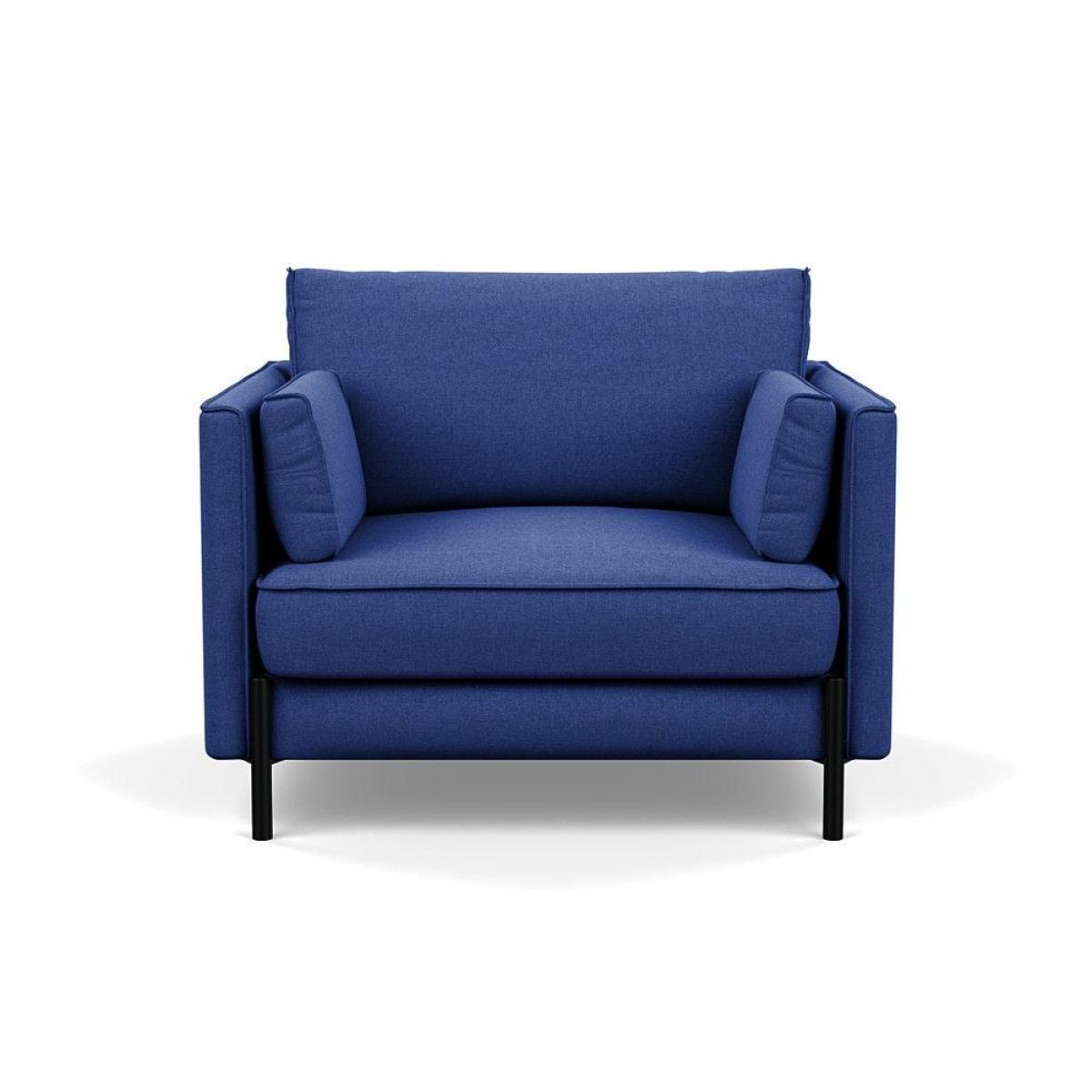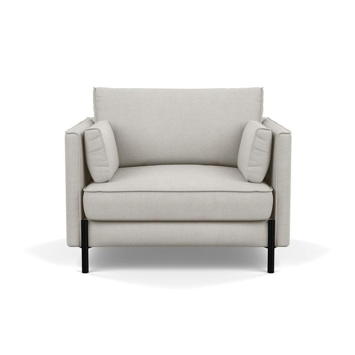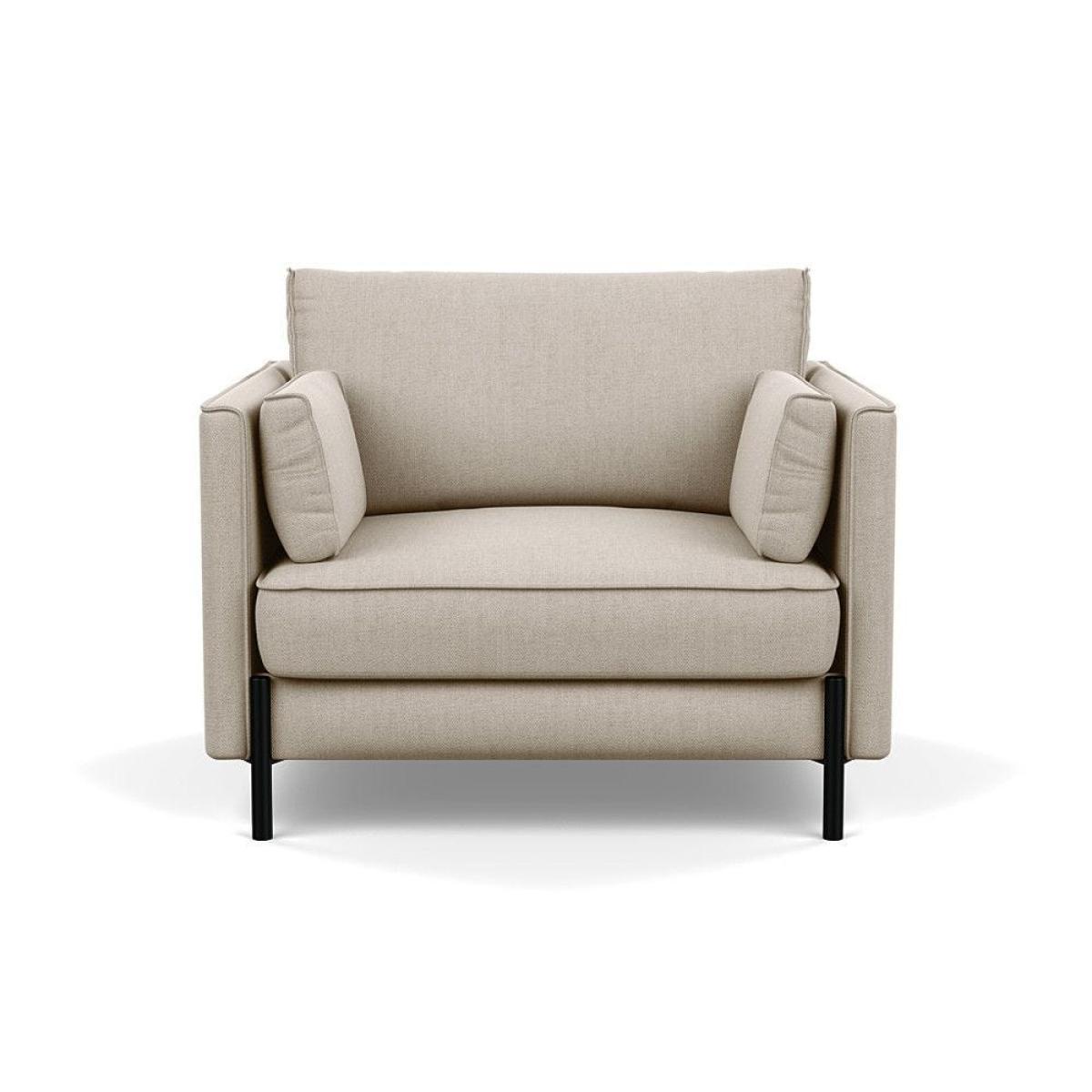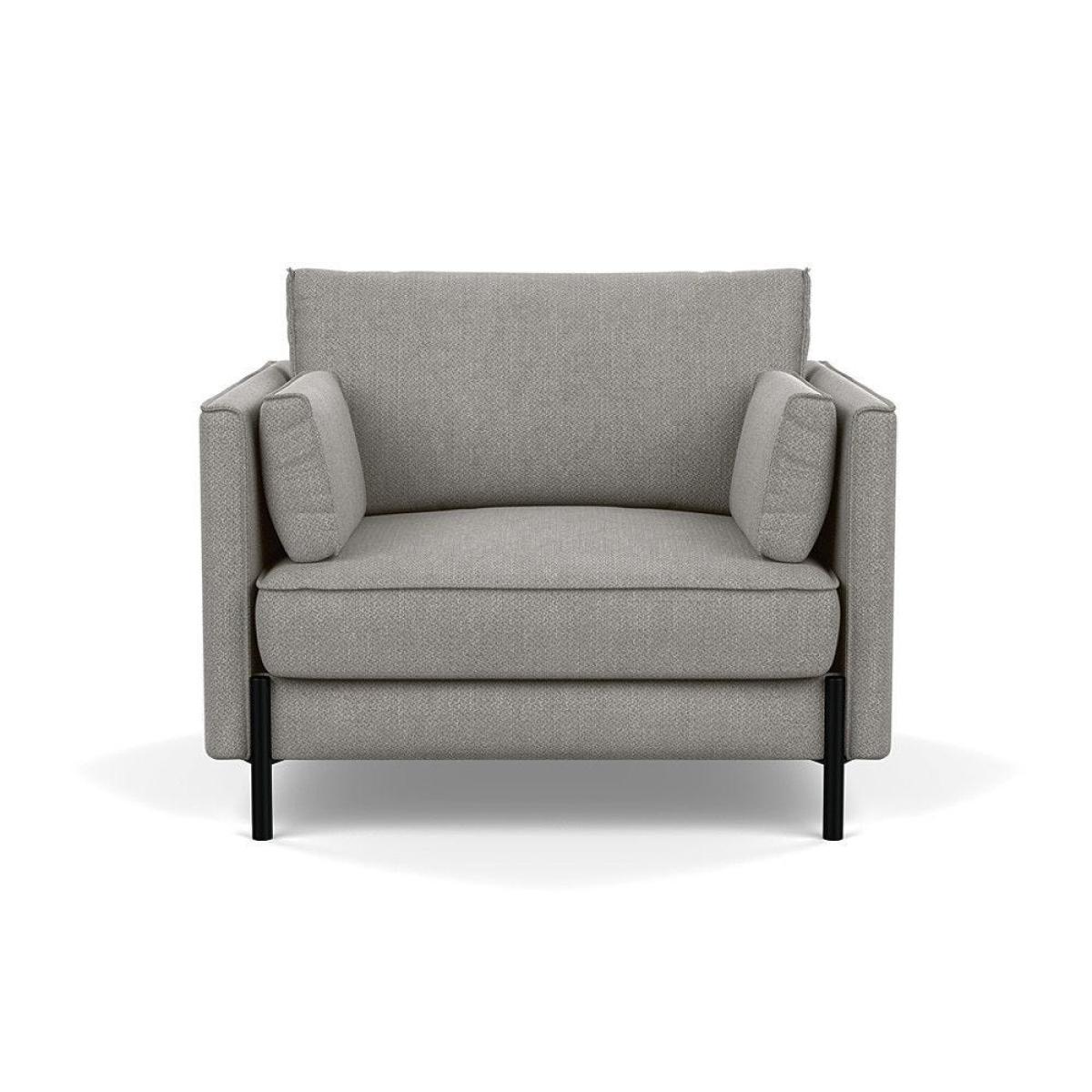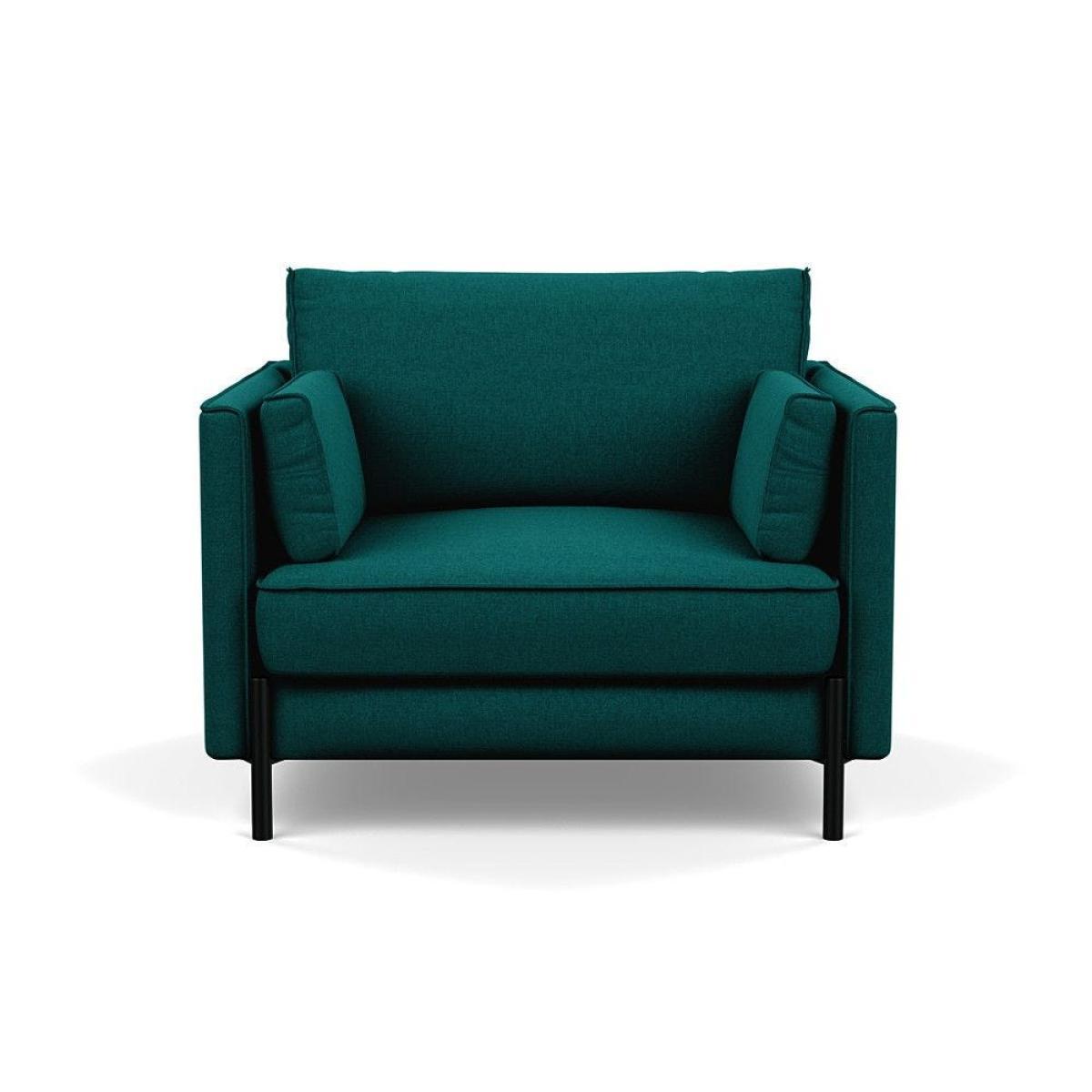 Designed by Danish duo Says Who exclusively for Heal's, the Tortona Armchair is a pared back yet intricately designed piece. The armchair features deep foam seat cushions wrapped in duck feather jackets for a soft-to-medium feel. Slim arms add to the elegant design and create a generous space for seating and extra scatter cushions. Also featuring thin, elegant powder-coated steel legs and French seam detailing creating a neat profile which will sit well in any modern home.