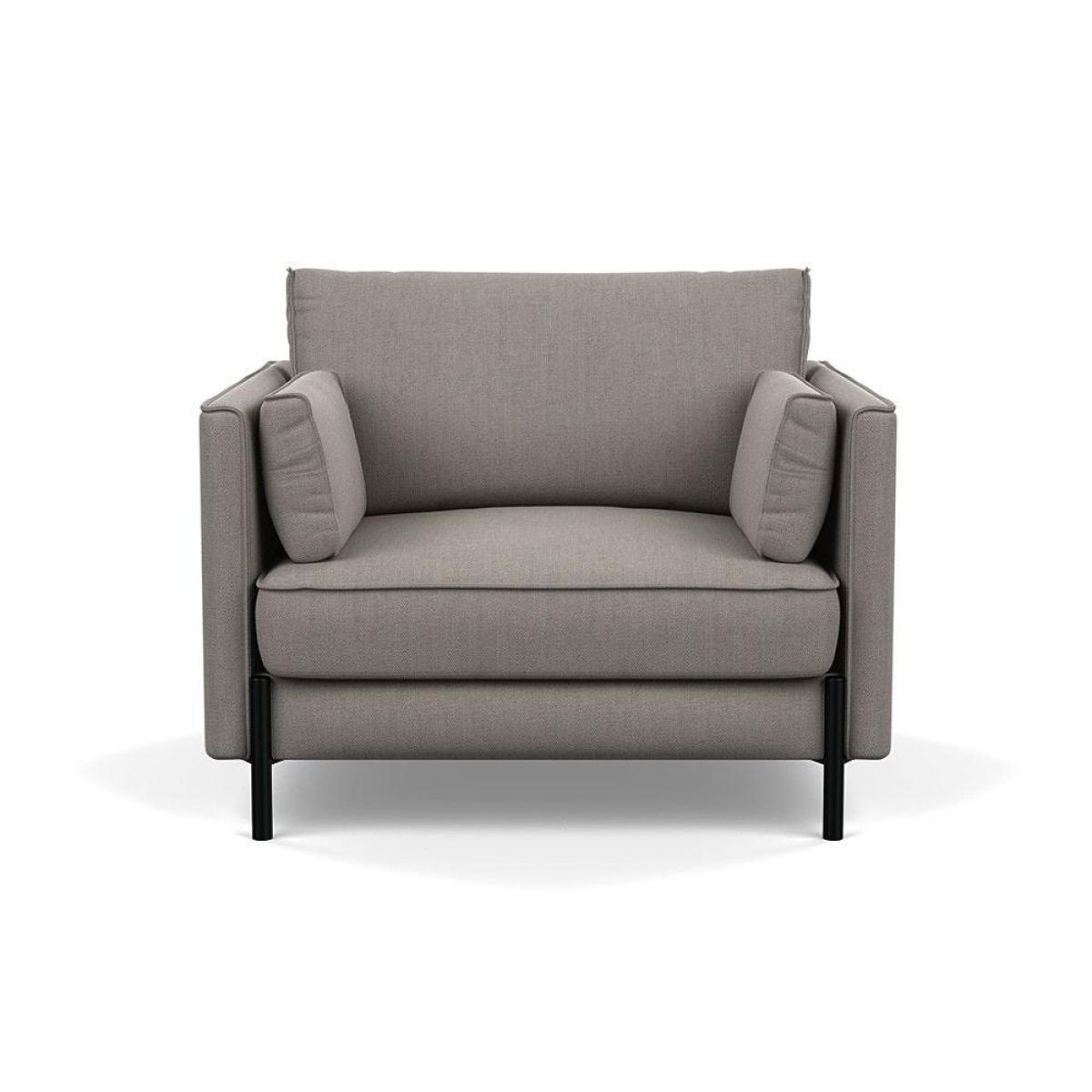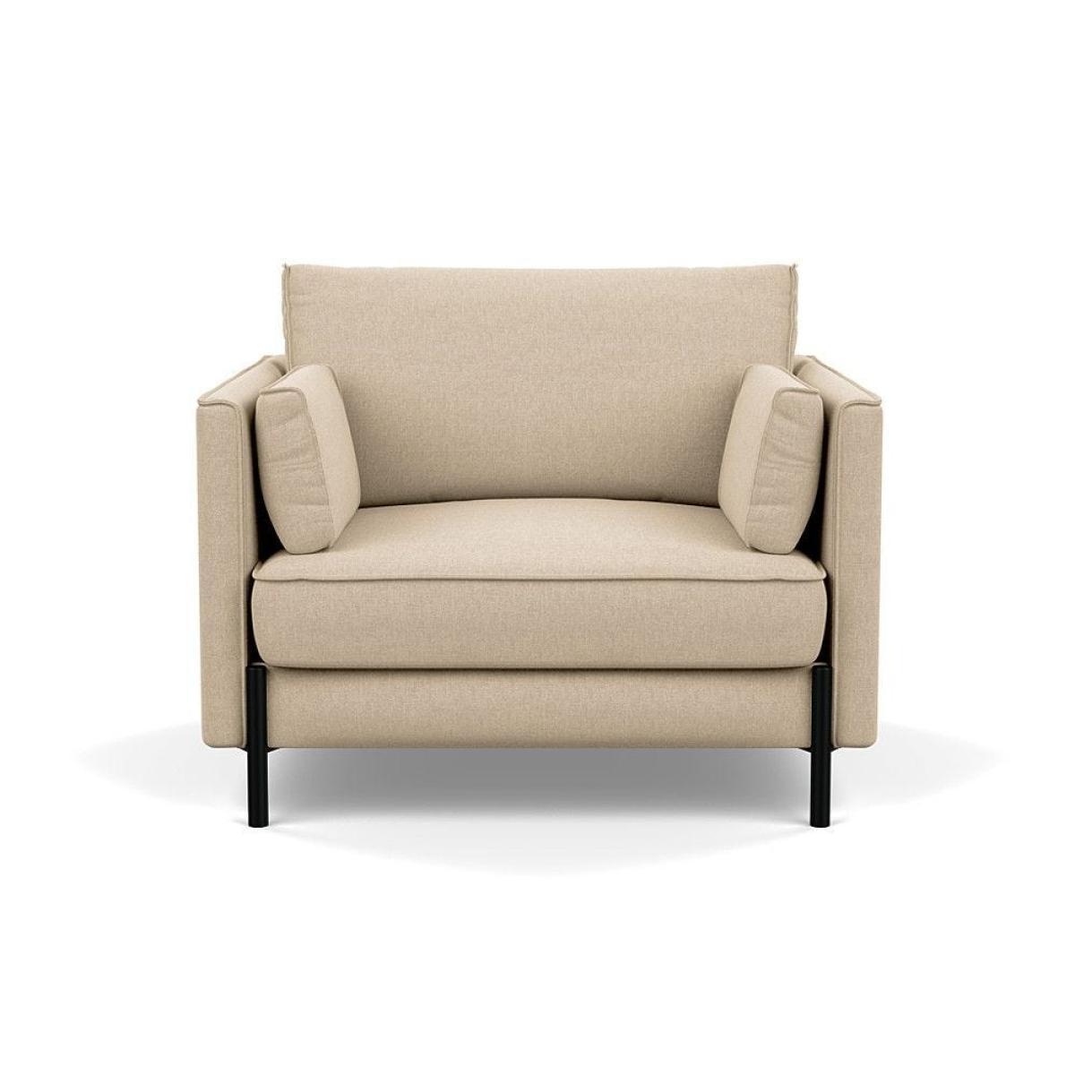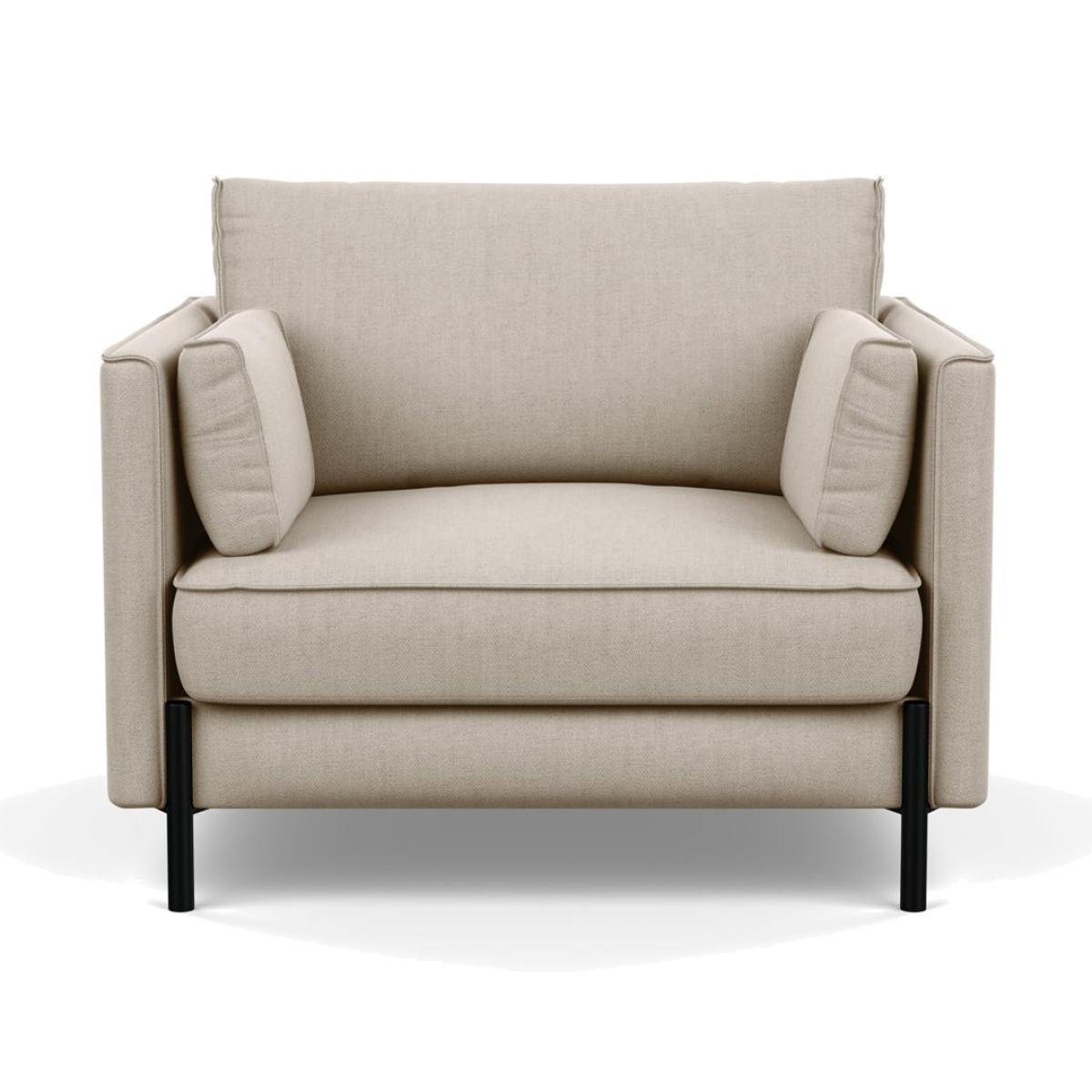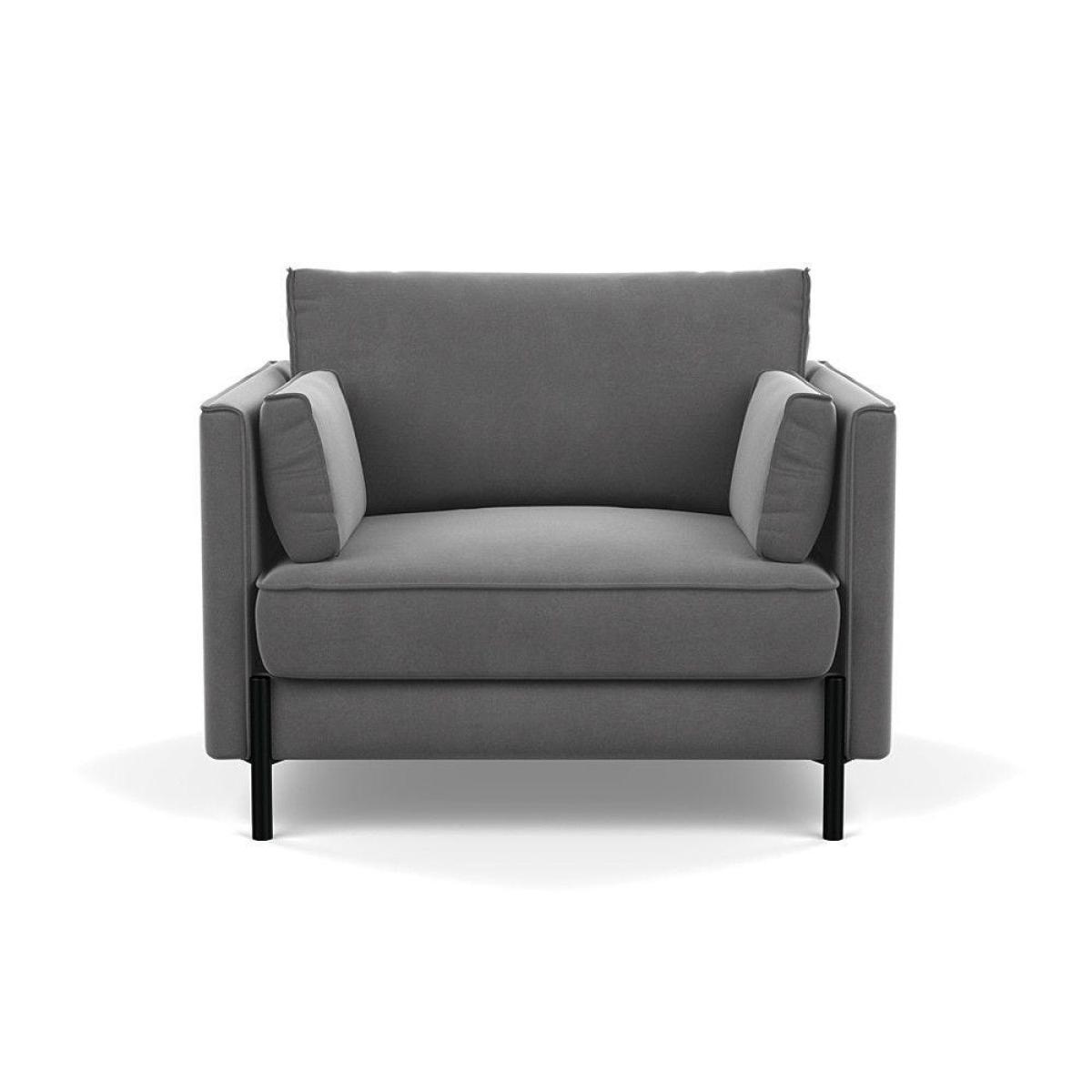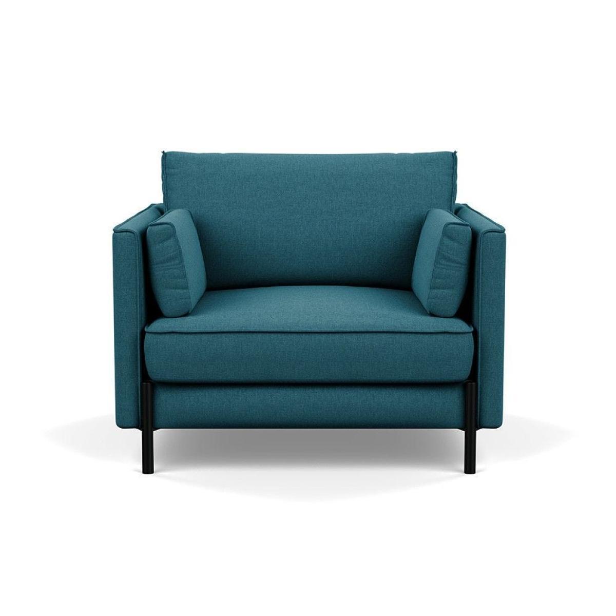 Designed by Danish duo Says Who exclusively for Heal's, the Tortona Armchair is a pared back yet intricately designed piece. The armchair features deep foam seat cushions wrapped in duck feather jackets for a soft-to-medium feel. Slim arms add to the elegant design and create a generous space for seating and extra scatter cushions. Also featuring thin, elegant powder-coated steel legs and French seam detailing creating a neat profile which will sit well in any modern home.