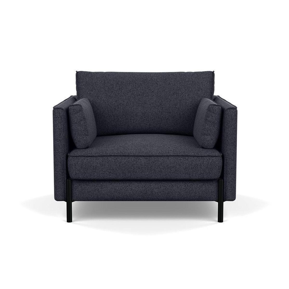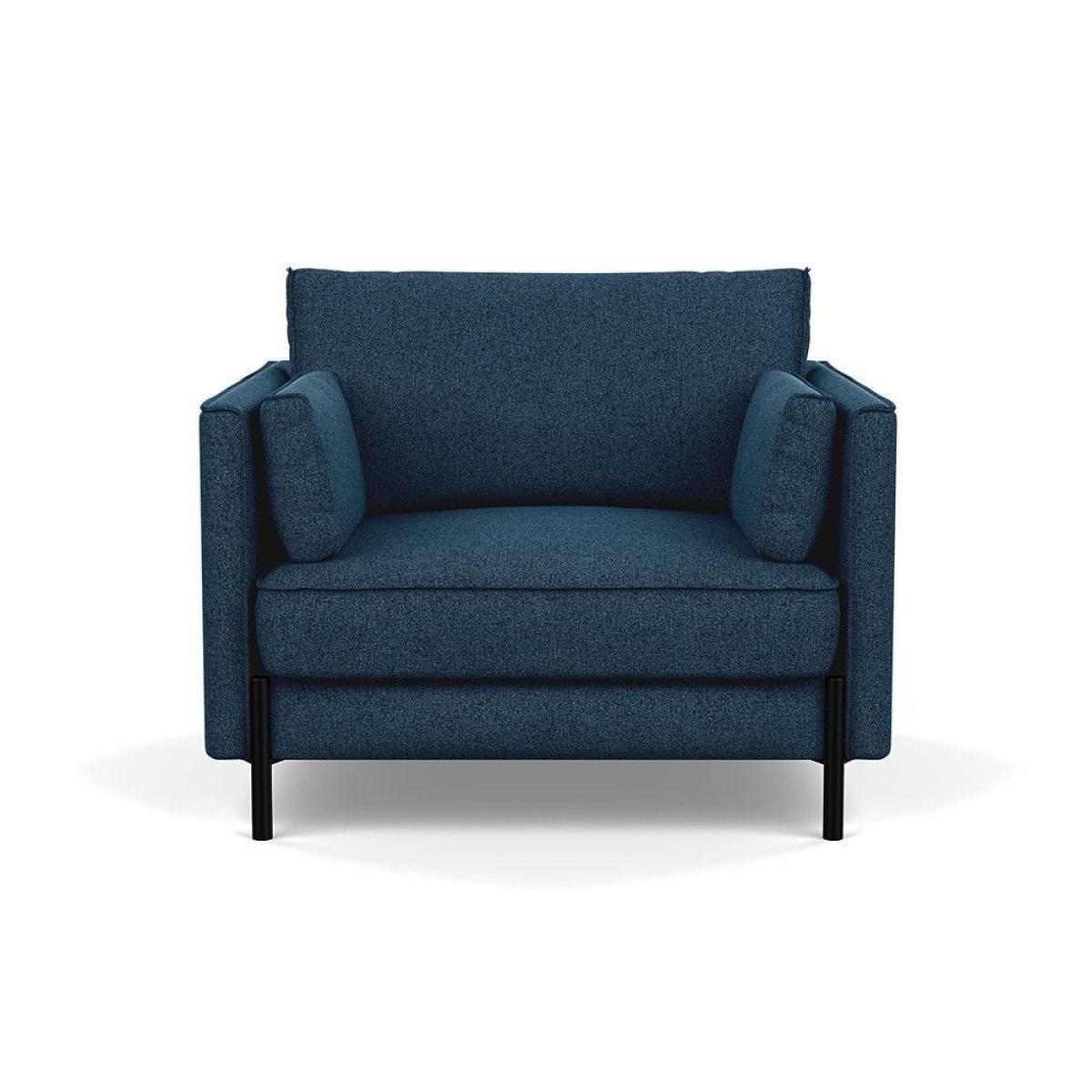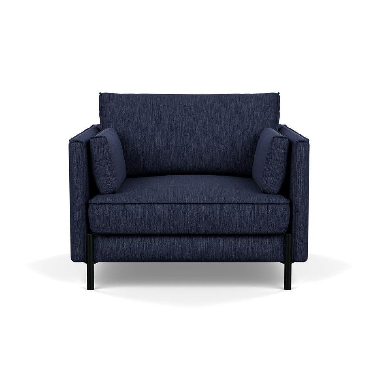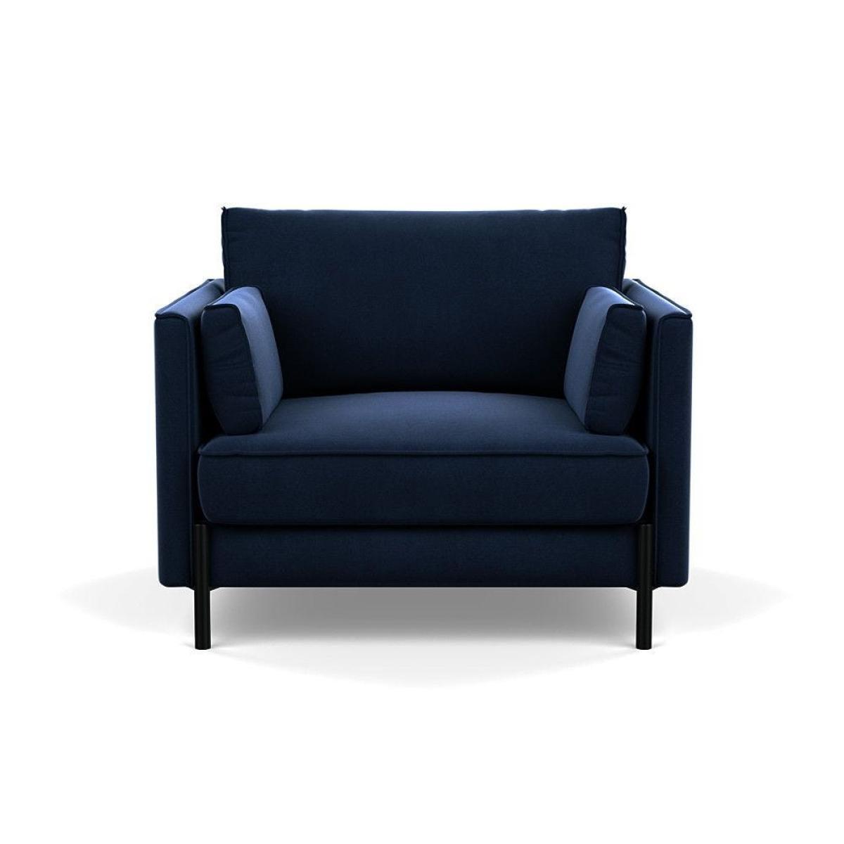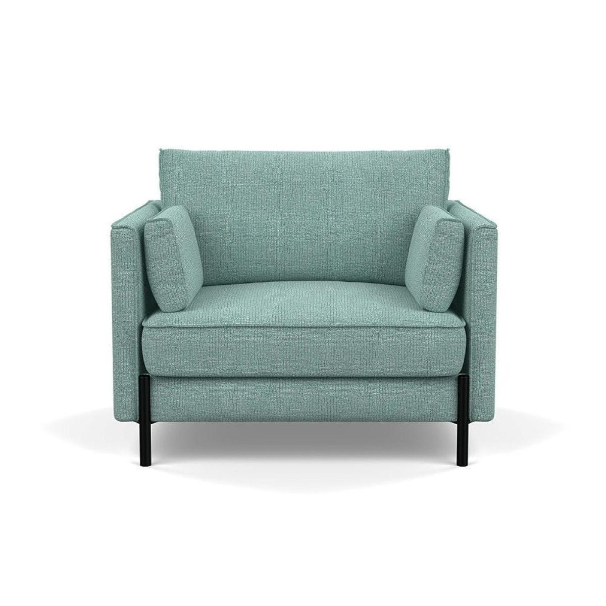 Designed by Danish duo Says Who exclusively for Heal's, the Tortona Armchair is a pared back yet intricately designed piece. The armchair features deep foam seat cushions wrapped in duck feather jackets for a soft-to-medium feel. Slim arms add to the elegant design and create a generous space for seating and extra scatter cushions. Also featuring thin, elegant powder-coated steel legs and French seam detailing creating a neat profile which will sit well in any modern home.