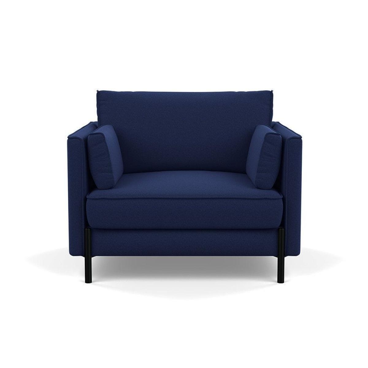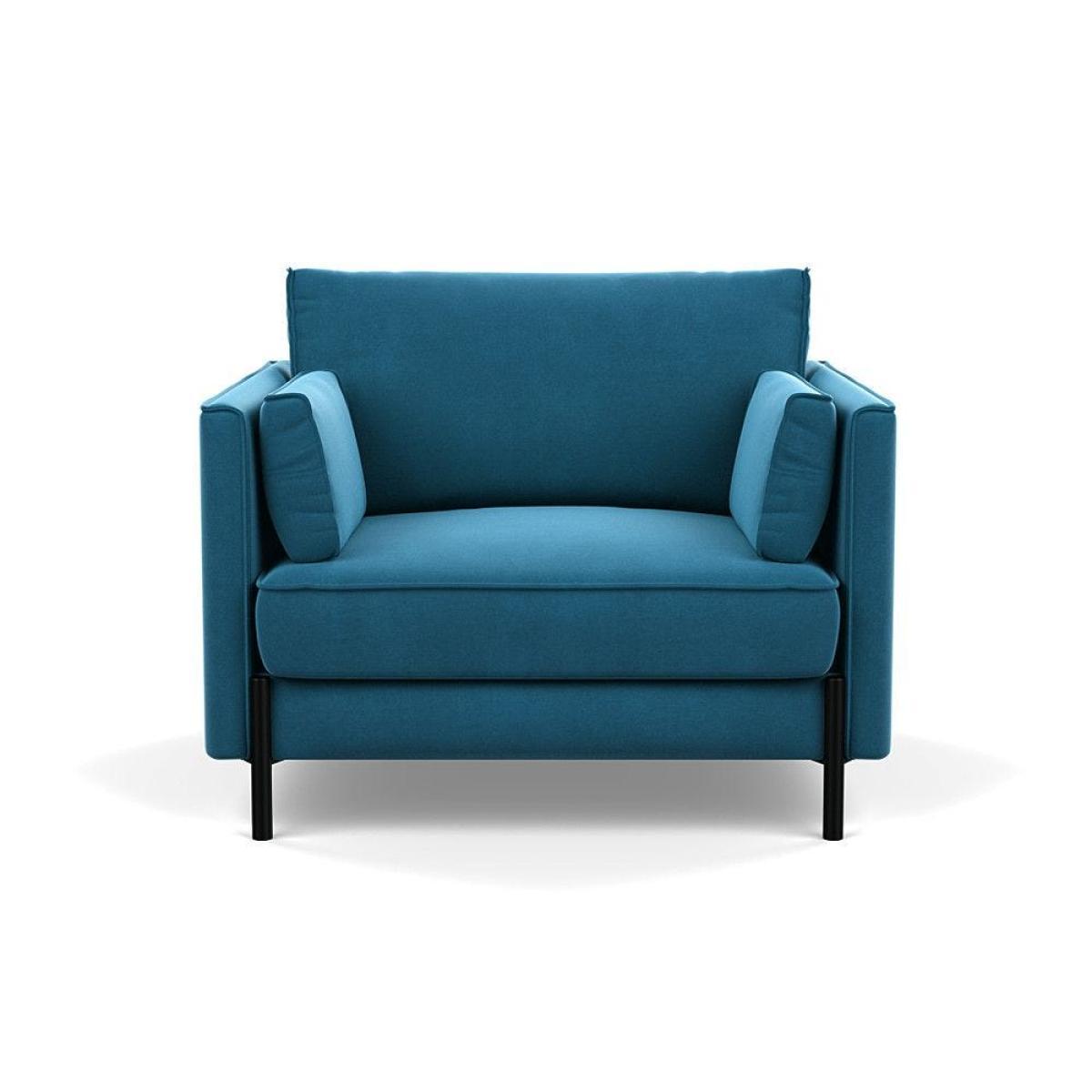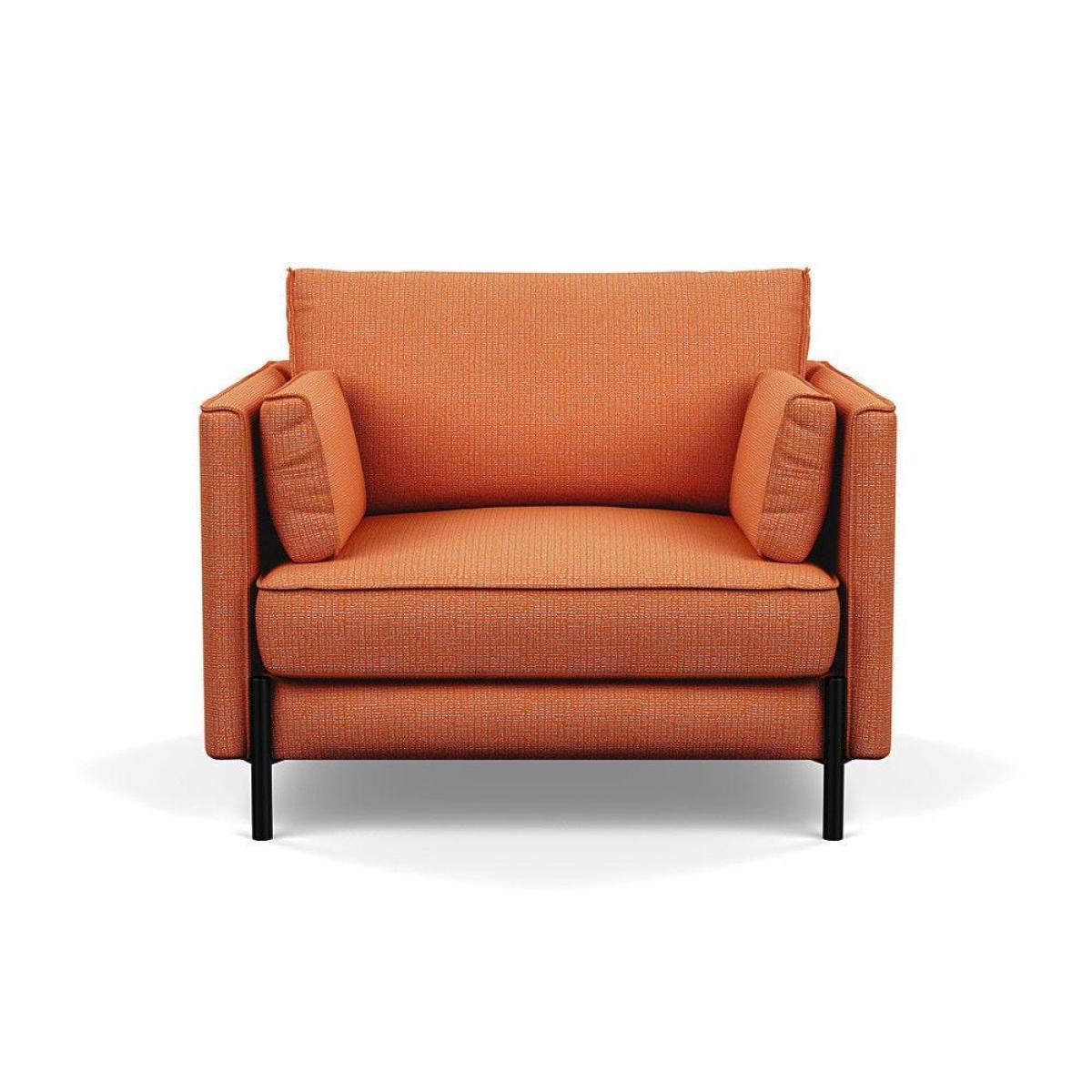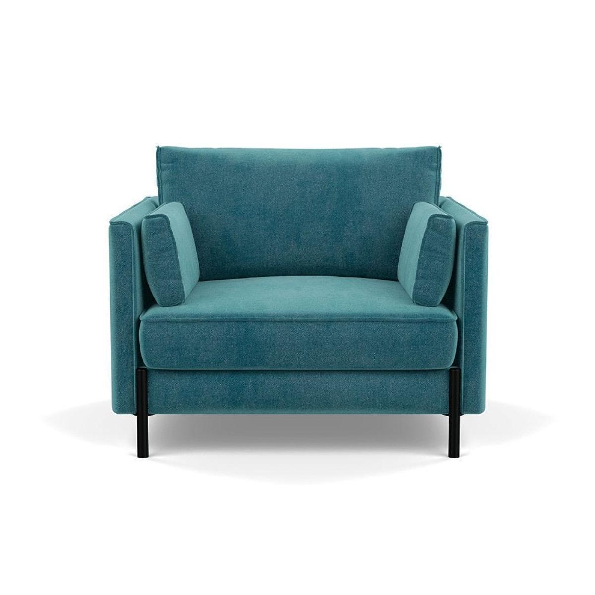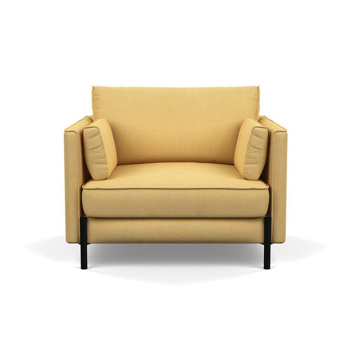 Designed by Danish duo Says Who exclusively for Heal's, the Tortona Armchair is a pared back yet intricately designed piece. The armchair features deep foam seat cushions wrapped in duck feather jackets for a soft-to-medium feel. Slim arms add to the elegant design and create a generous space for seating and extra scatter cushions. Also featuring thin, elegant powder-coated steel legs and French seam detailing creating a neat profile which will sit well in any modern home.